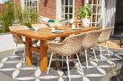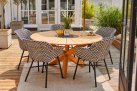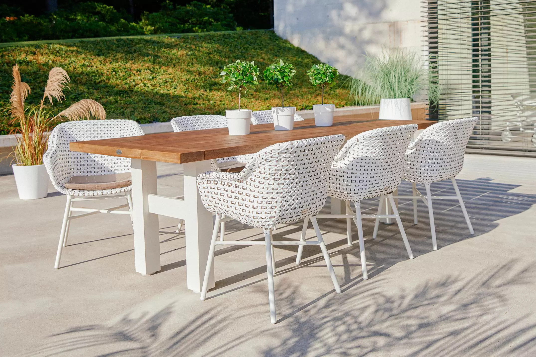Przetarcie powierzchni technorattanu czy użycie myjki ciśnieniowej sprawia, że krzesło jest czyste i schnie w mgnieniu oka. Aluminiowa podstawa sprawia, że krzesło jest lekkie i łatwe w utrzymaniu. Krzesło można pozostawić na zewnątrz przez cały rok.