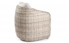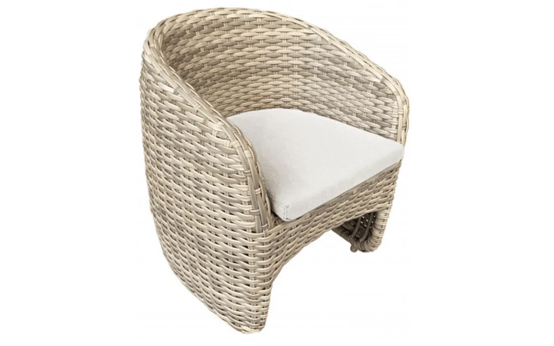 Krzesło stołowe Wakkanda pasujące do kolekcji WAKKANDA. Posiada konstrukcję się z solidnej aluminiowej ramy oraz jest oplecione bardzo grubym technorattanem o szerokości 20 mm. W komplecie poduszka na każdą pogodę Swiss Fabric Olefin w kolorze ecru.