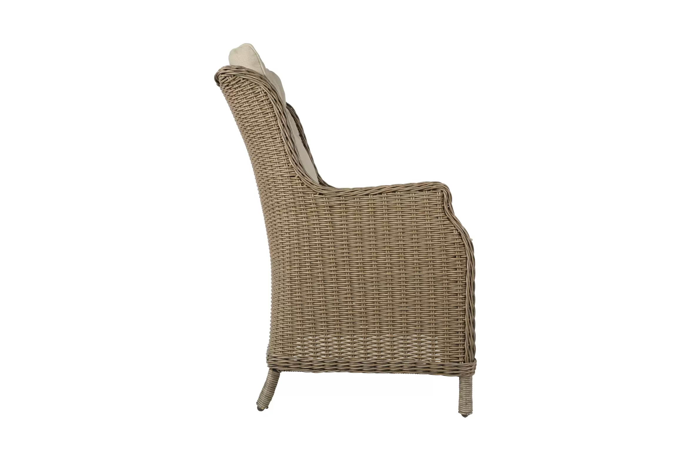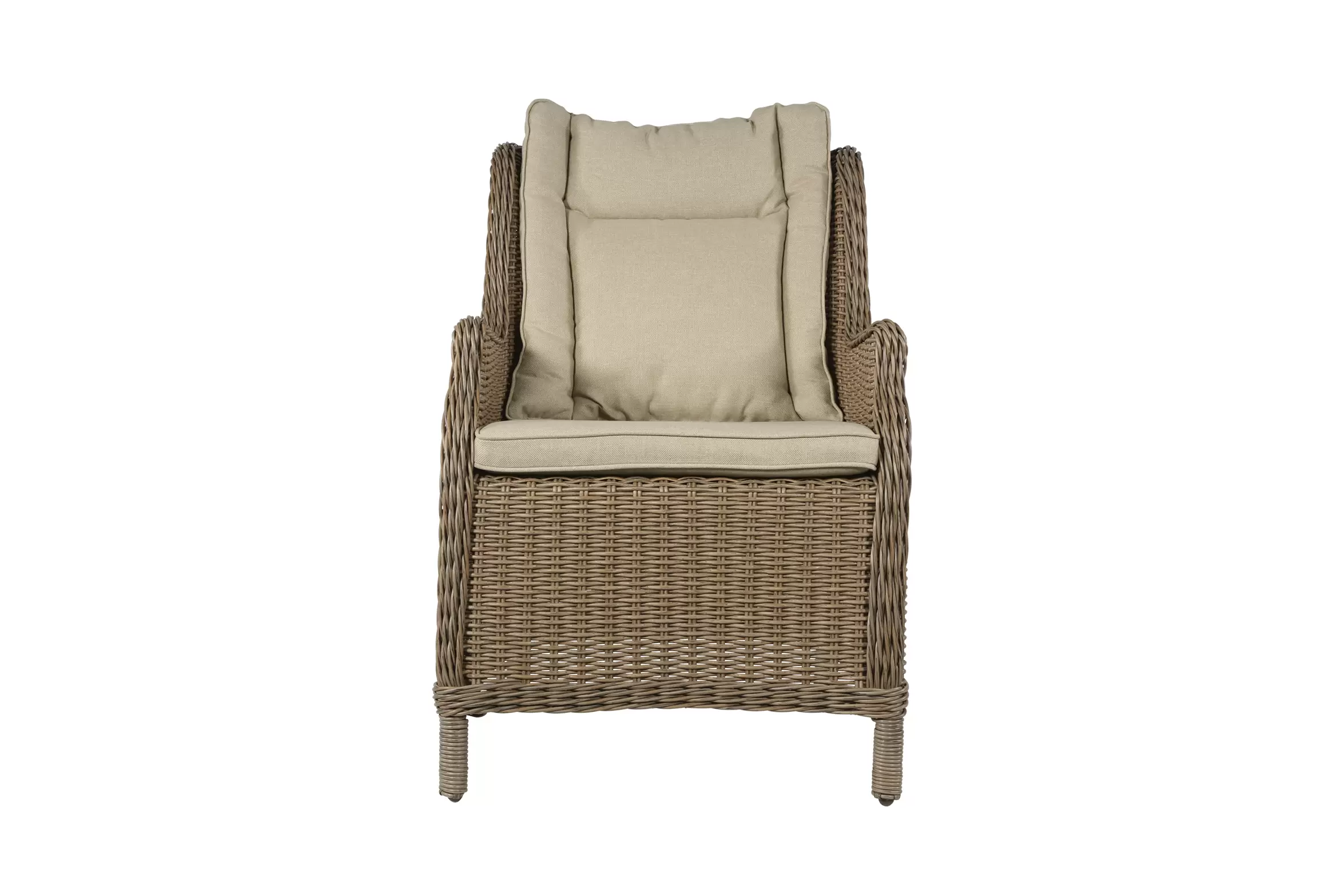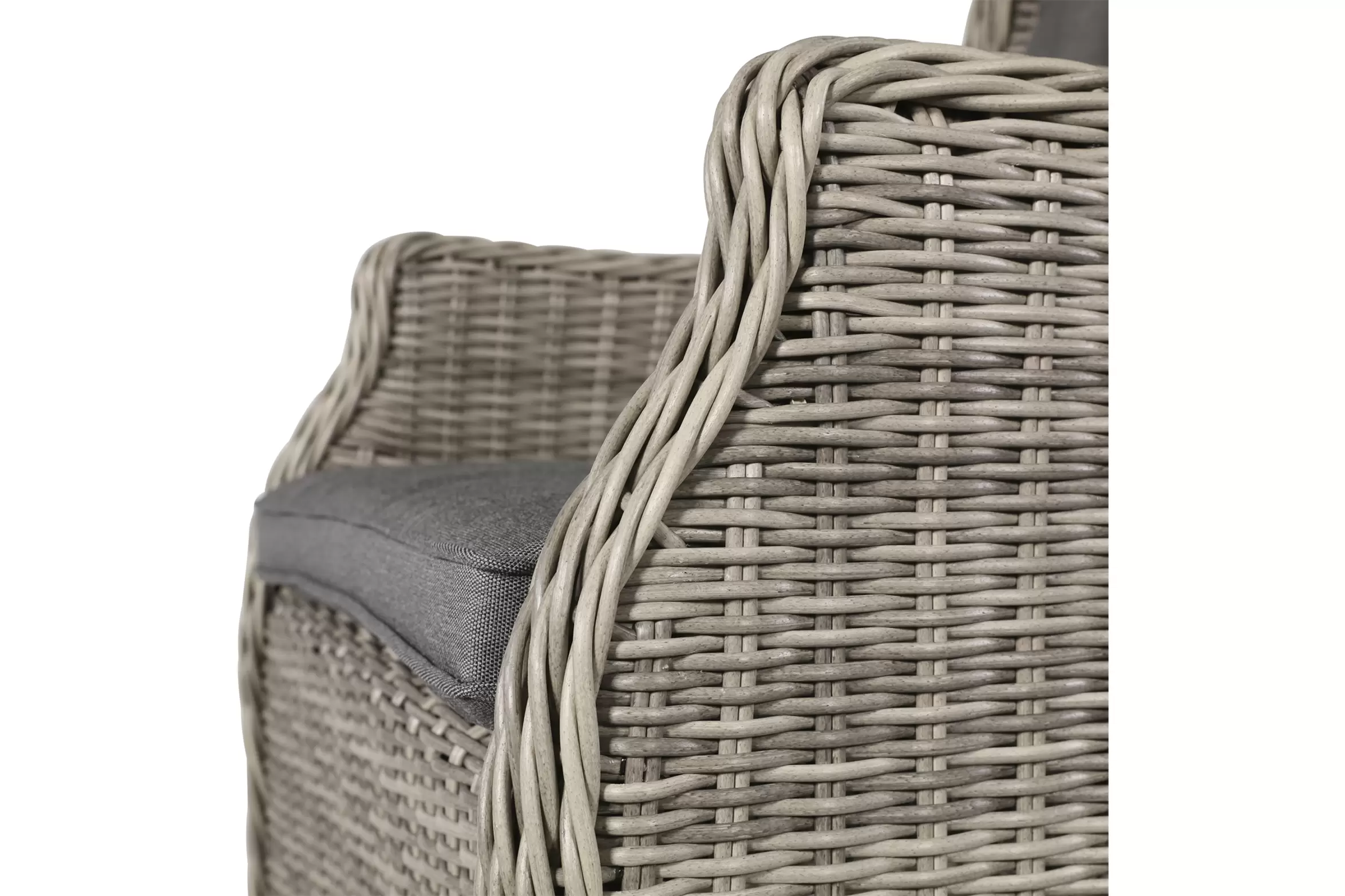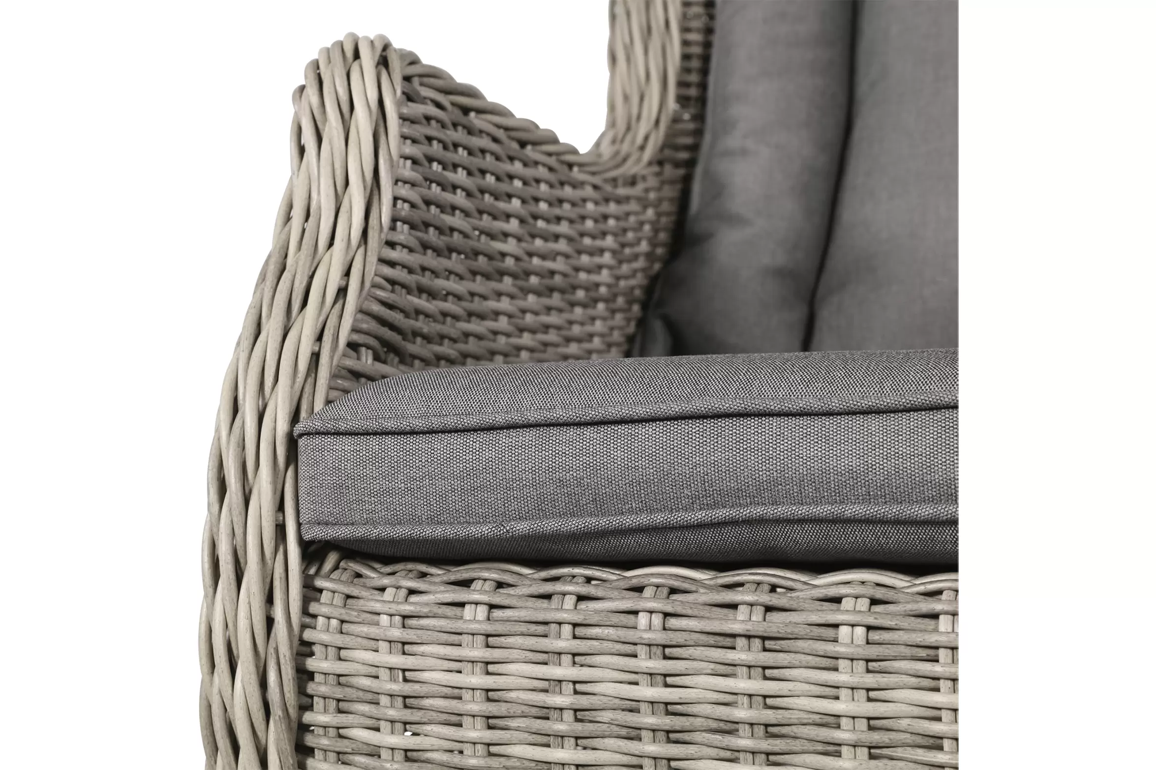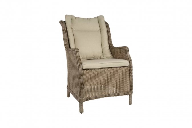 Fotel stołowy na taras z technorattanu z poduszką na siedzisku i oparciu.