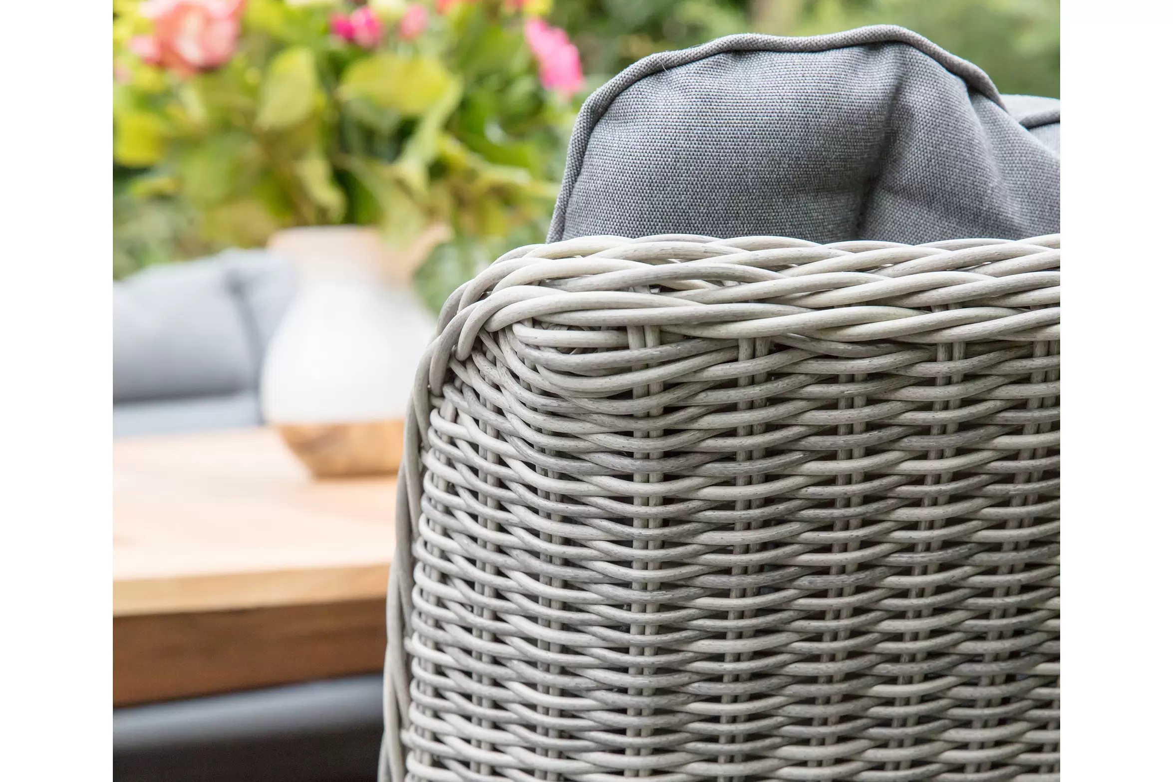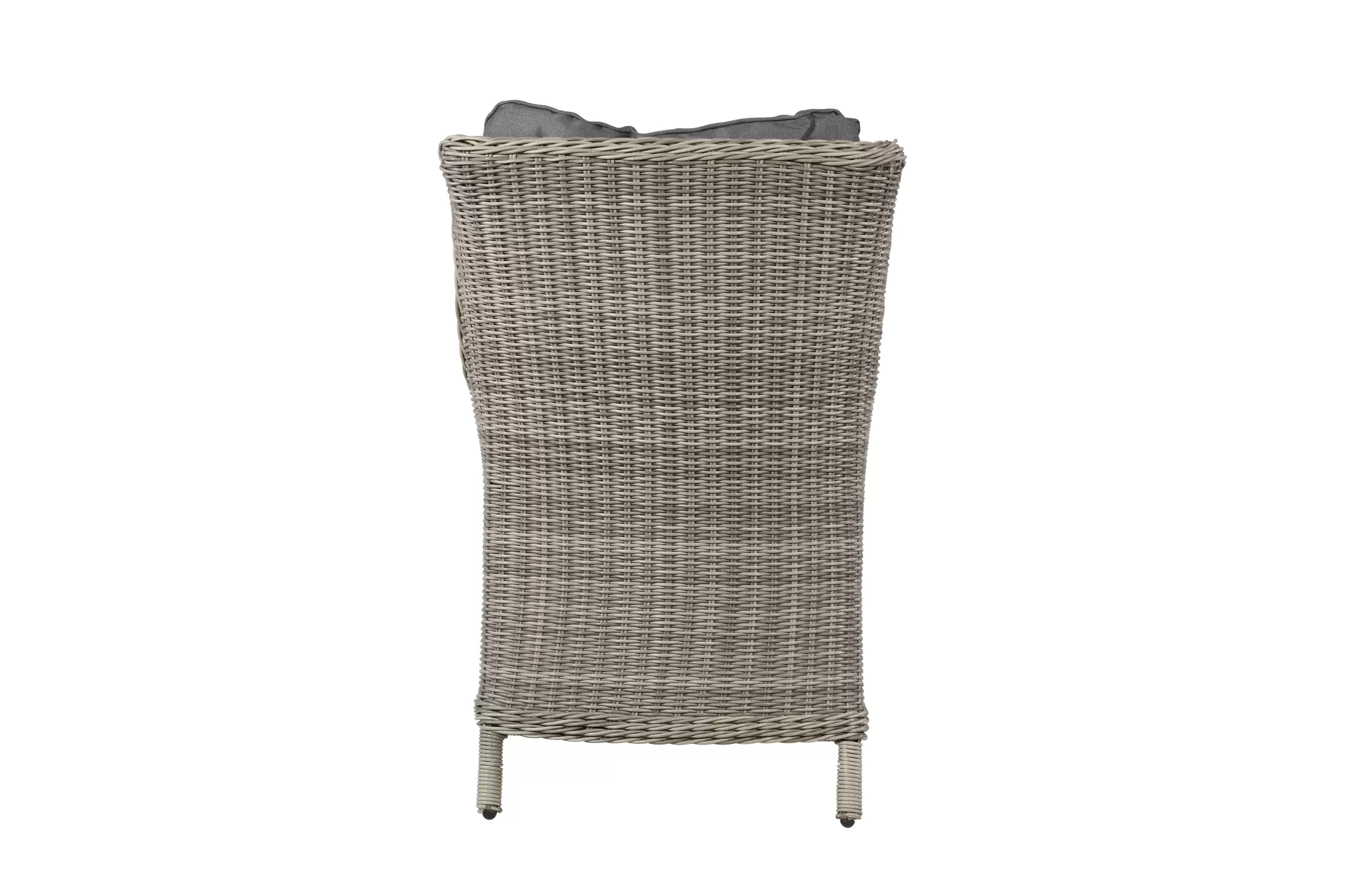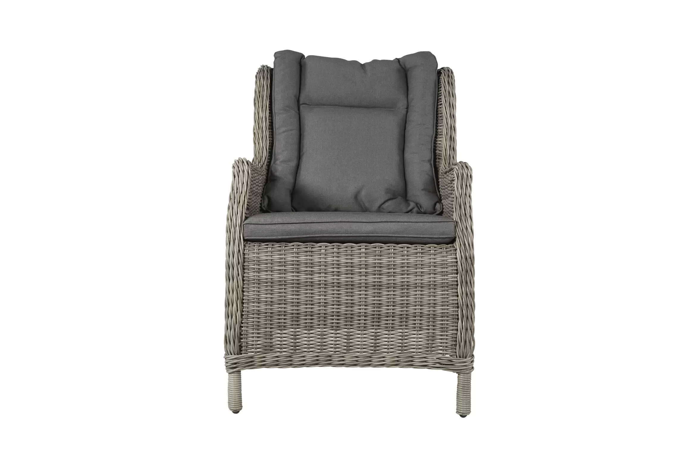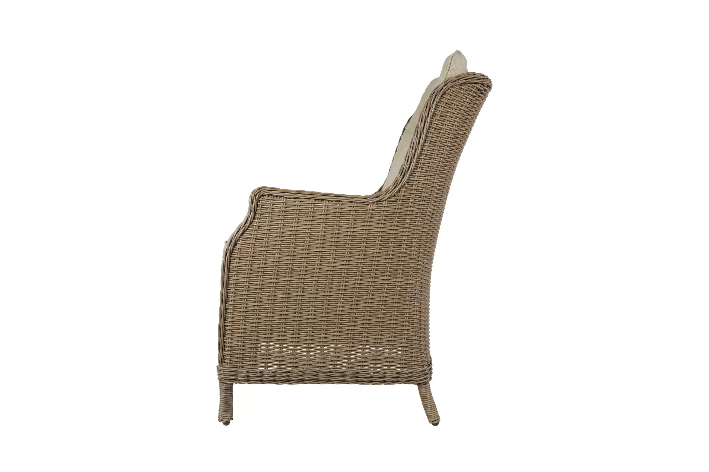 Fotel stołowy na taras z technorattanu z poduszką na siedzisku i oparciu.