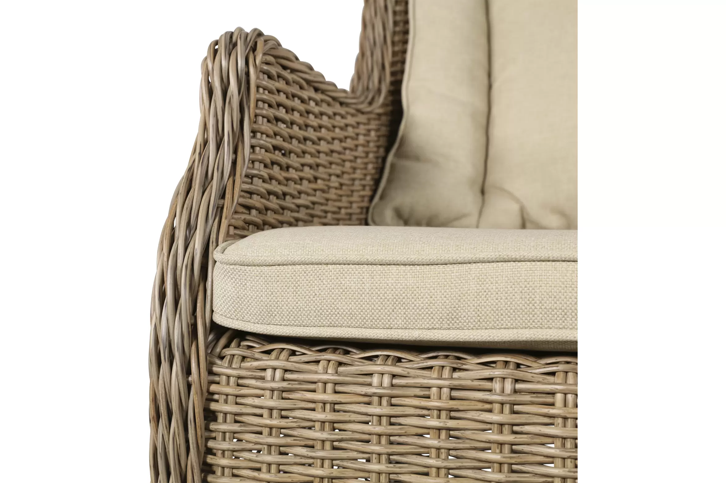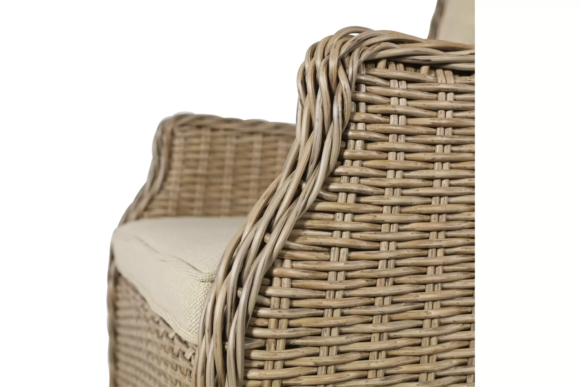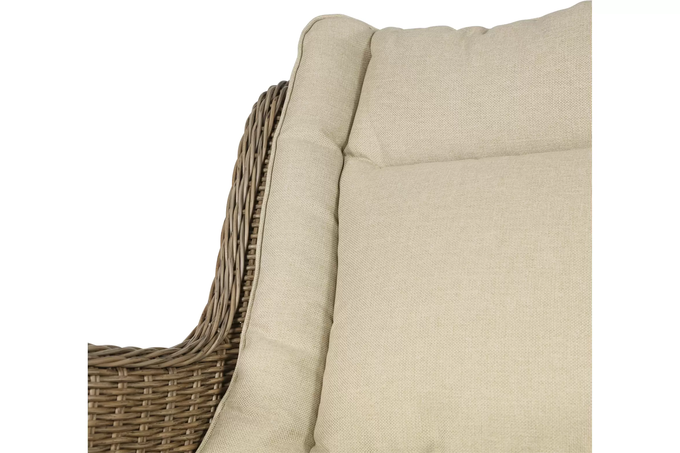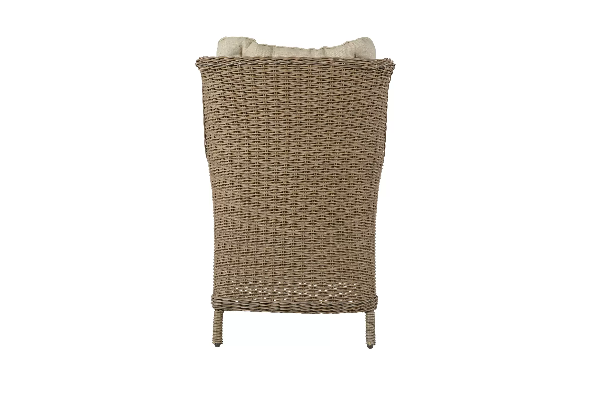 Fotel stołowy na taras z technorattanu z poduszką na siedzisku i oparciu.