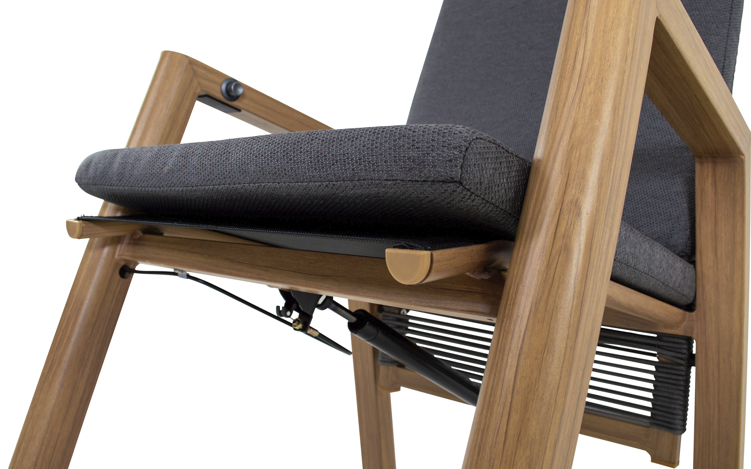 2x ACARI Krzesło ogrodowe z wysokim odchylanym oparciem woodlook olefin