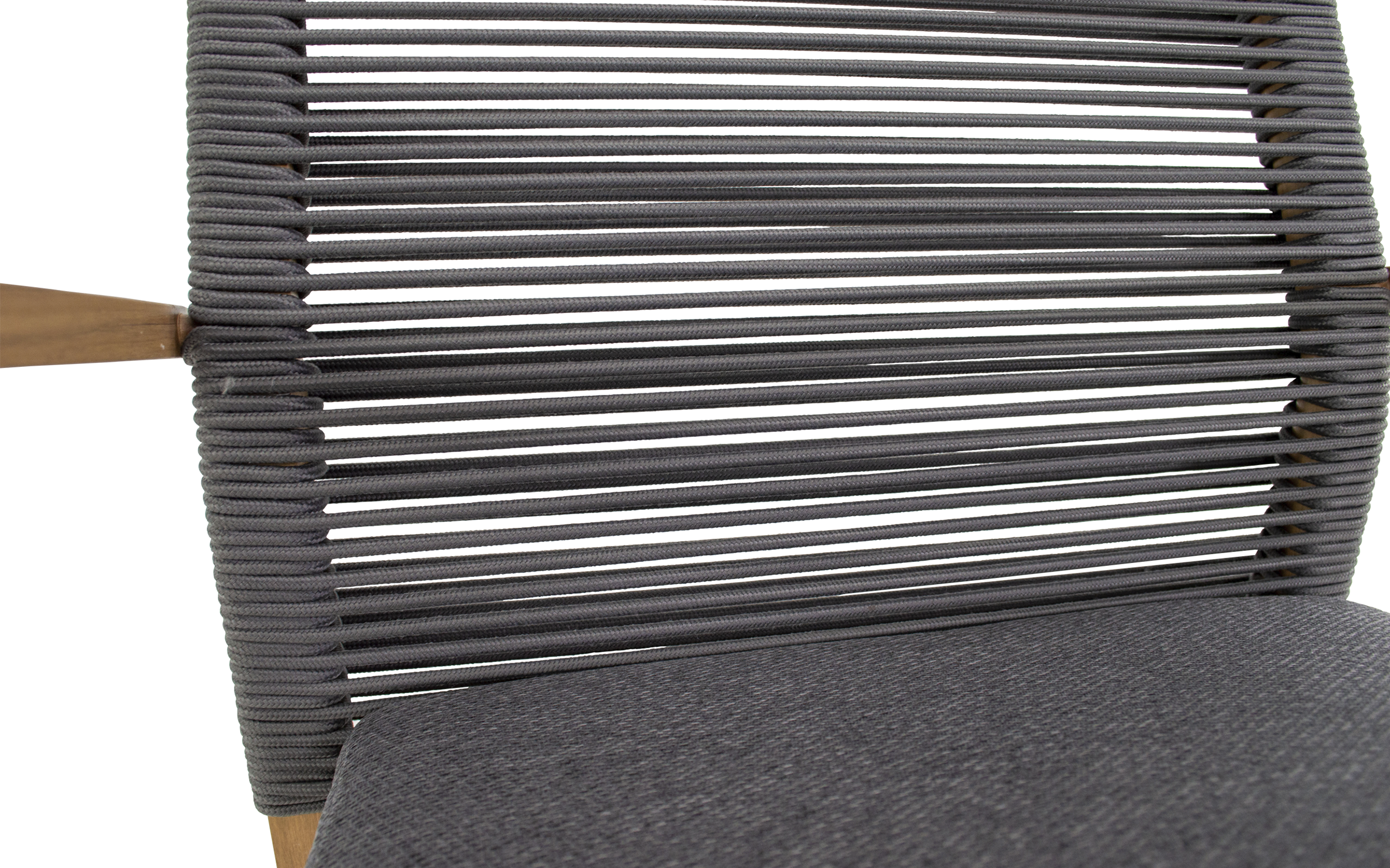 W zestawie znajdują się wygodne poduszki na siedzisko i oparcie wykonane z materiału olefin 270 g/m² w jasnoszarym, strukturalnym wykończeniu o grubości 40 mm. Poduszki zapewniają dodatkowy komfort i zachęcają do długiego wypoczynku na świeżym powietrzu. Krzesła ACARI łączą funkcjonalność, elegancję i trwałość, idealne na taras, balkon czy do ogrodu.