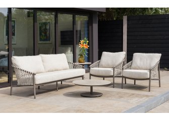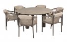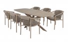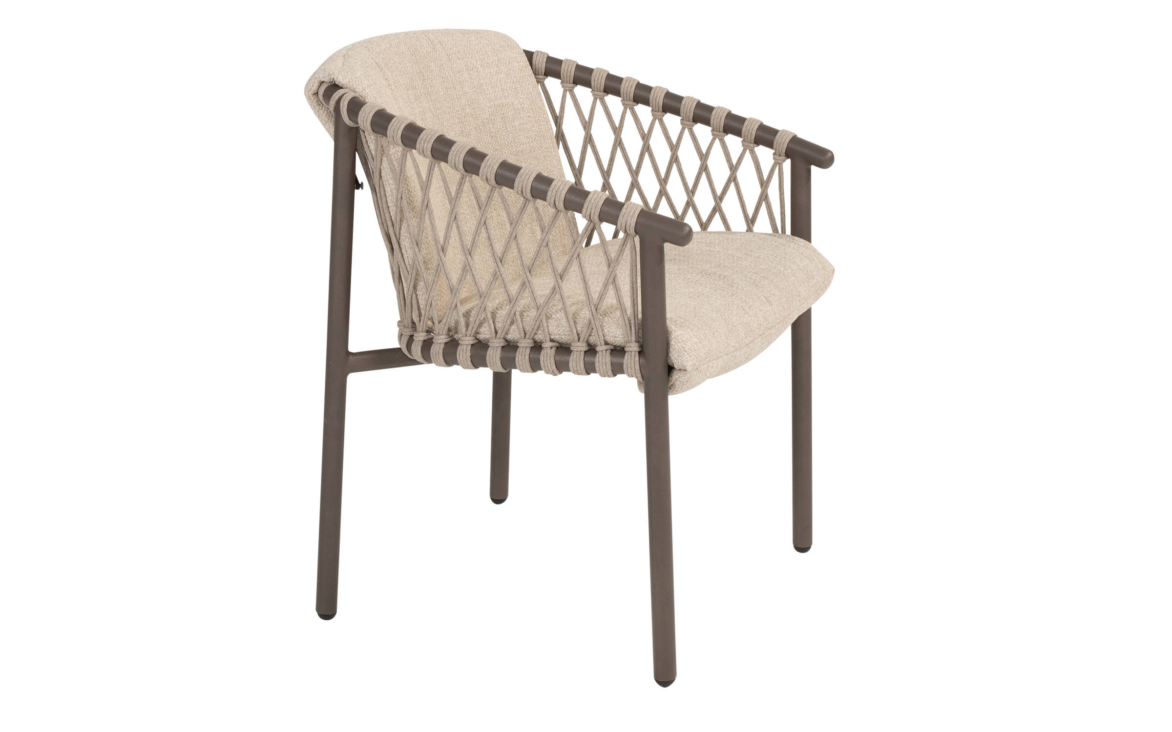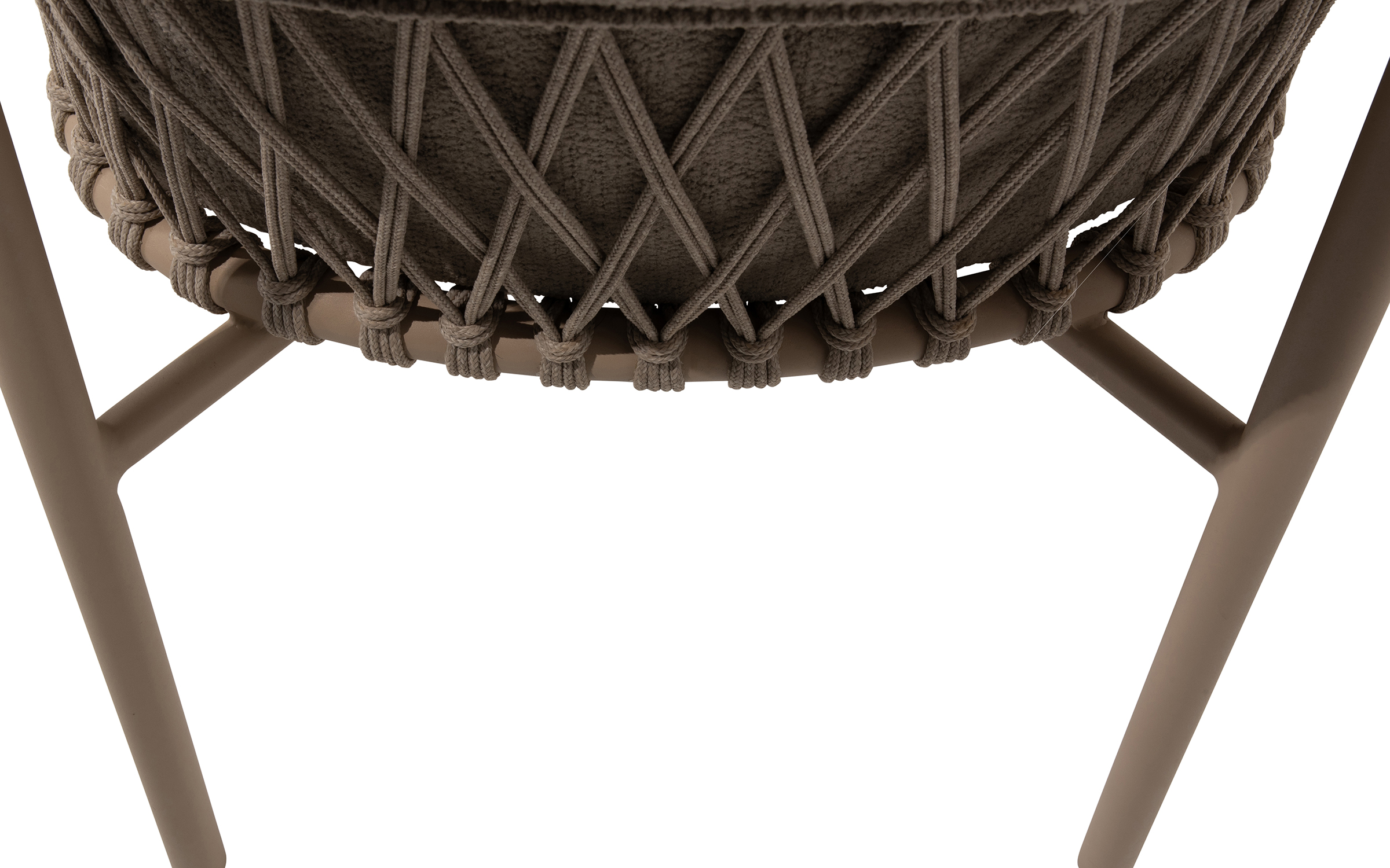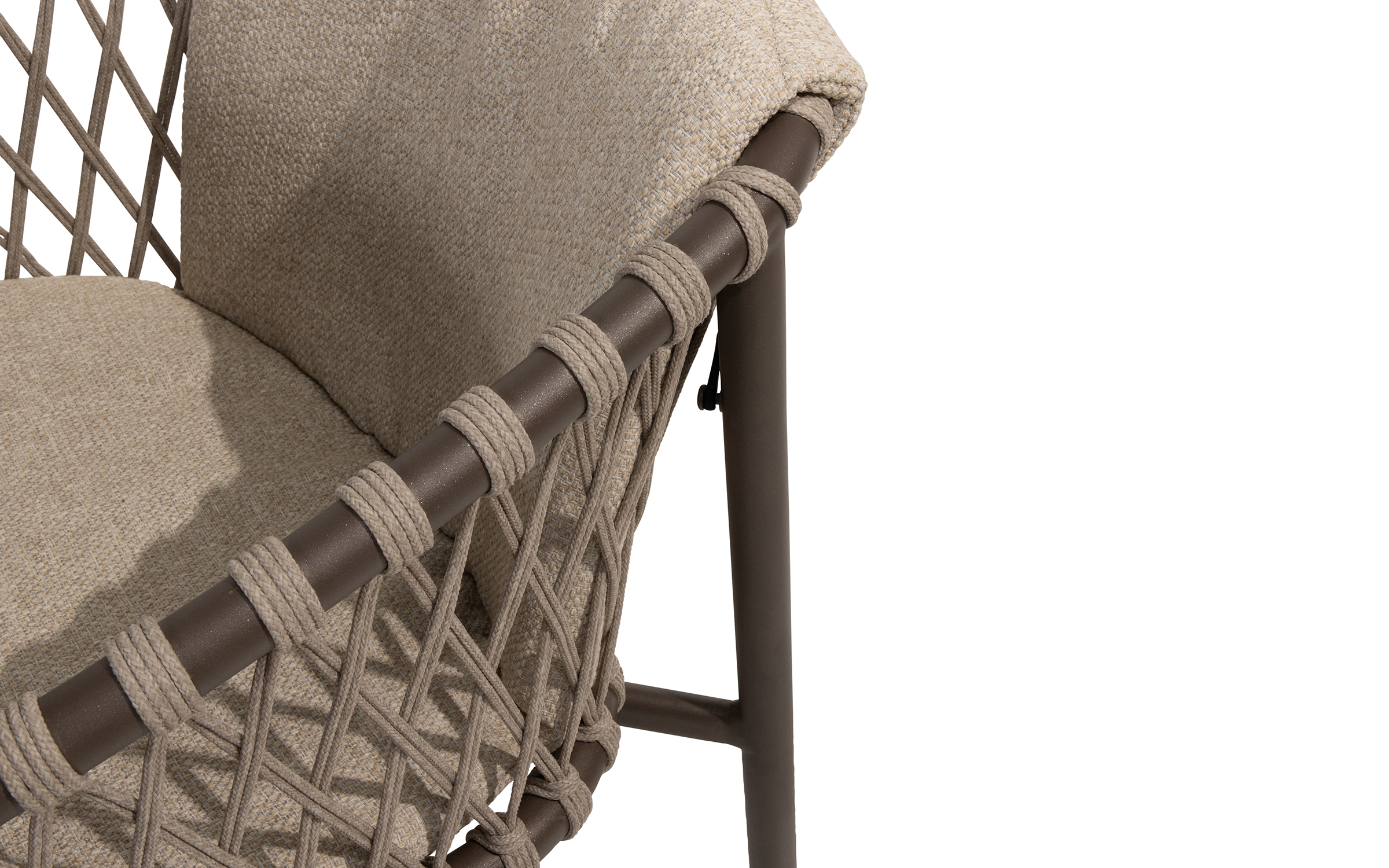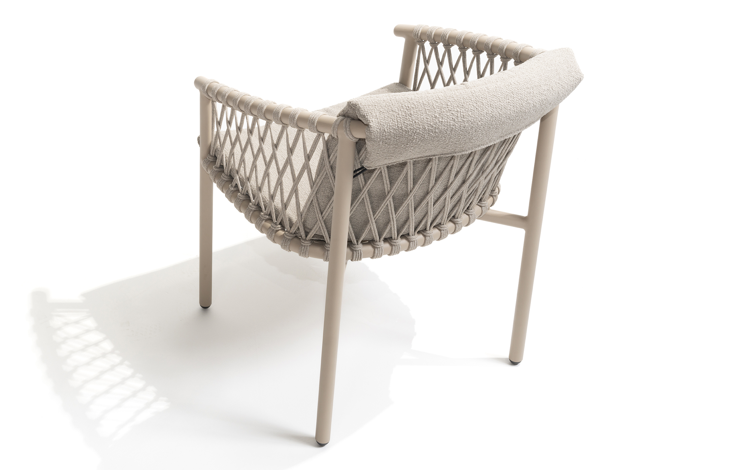 Konstrukcja aluminiowa i tkanina bouclé płynnie wtapiają się w Twój ogród, tworząc zachęcającą i nastrojową jadalnię.