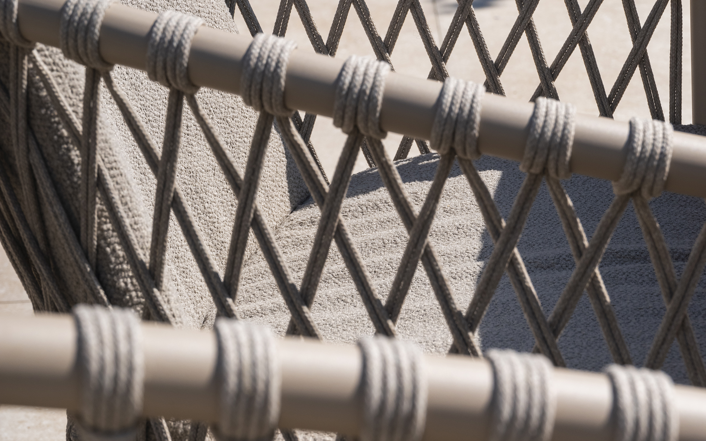 Zdejmowane poszewki obiciowe z materiału Boucle wyplecionego z odpornych na działanie UV i wody włókien polipropylenowych.