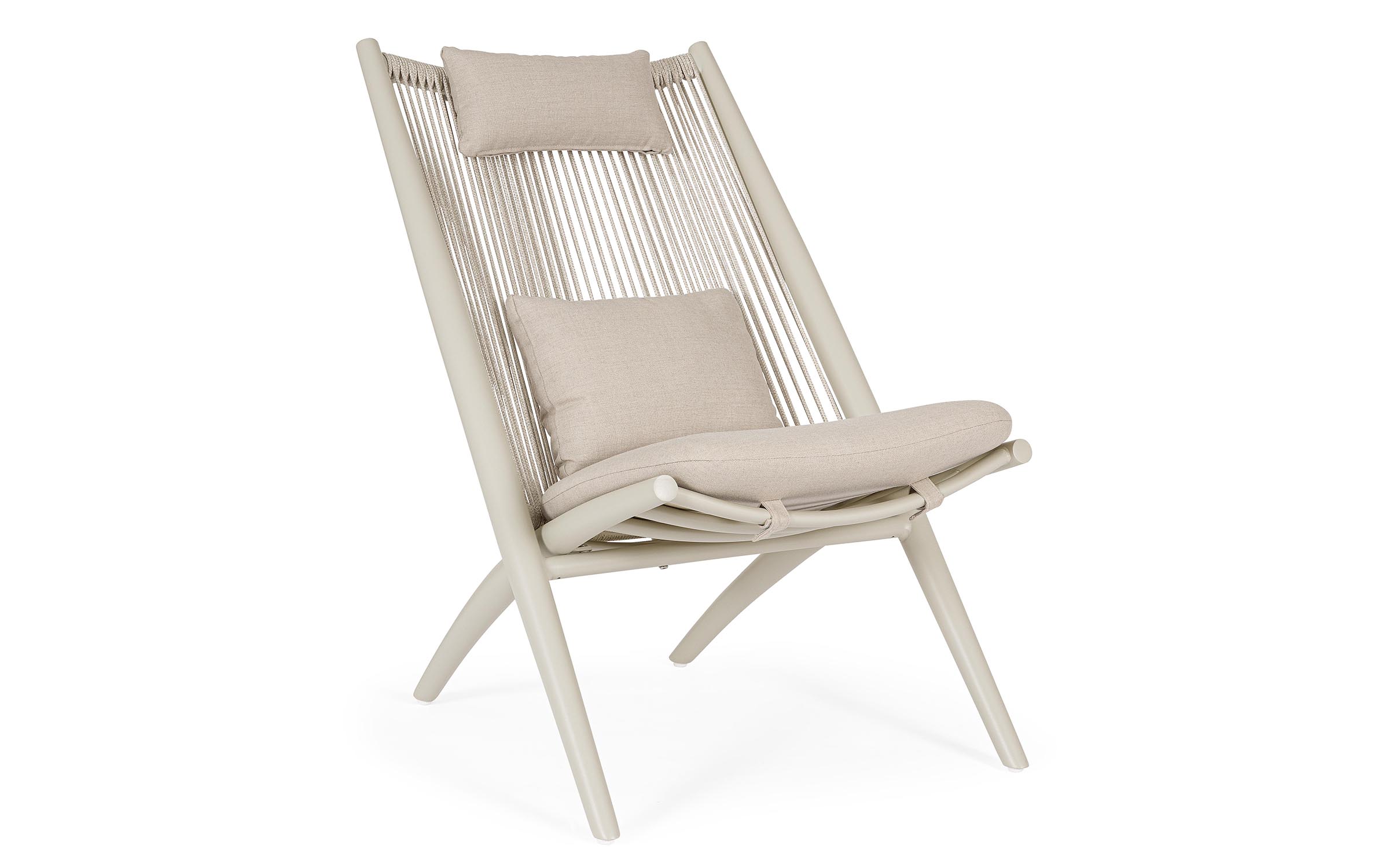 Aluminiowy wysoki fotel ogrodowy ALOHA na taras. Każdy element kolekcji ALOHA można nabyć osobno.