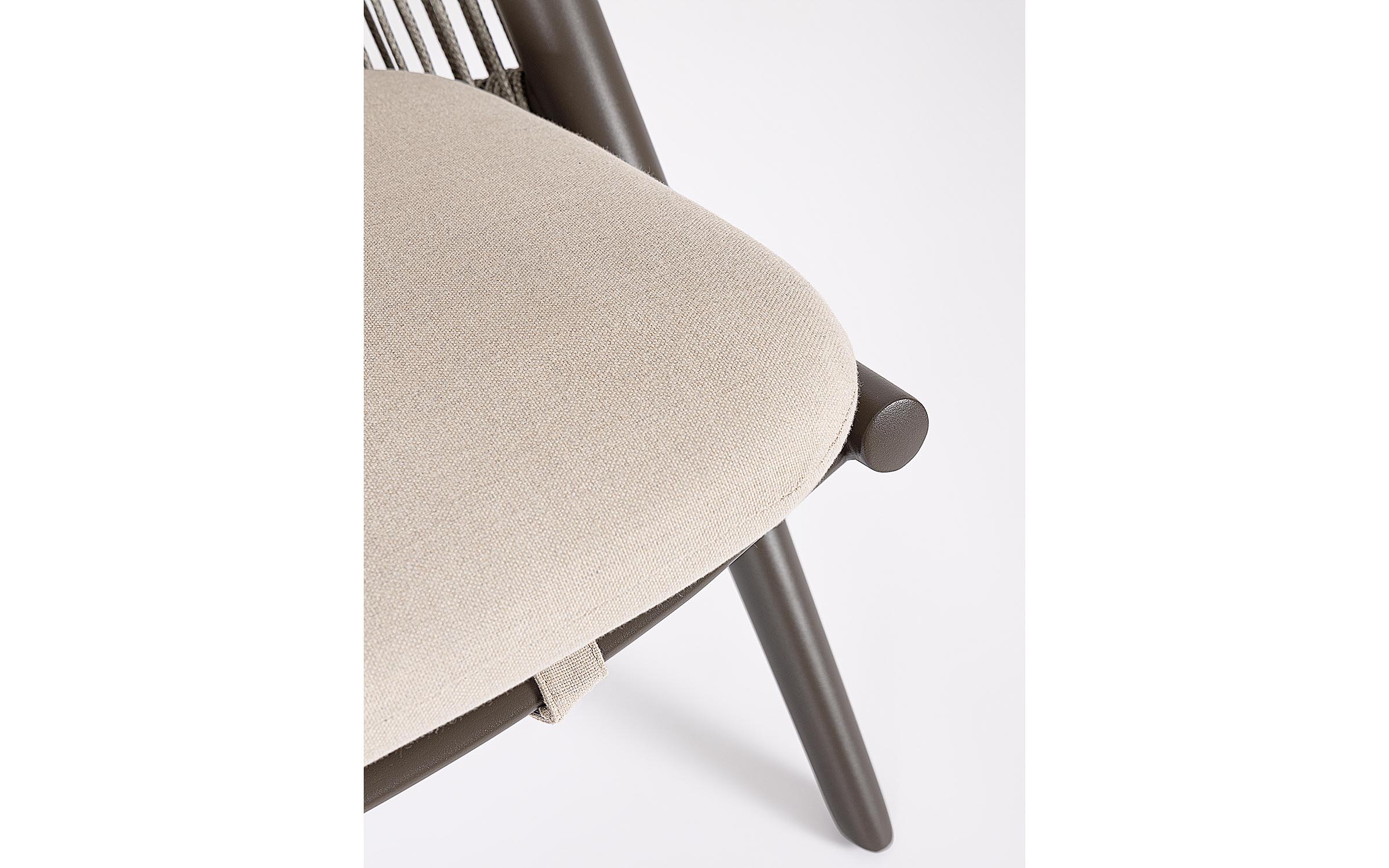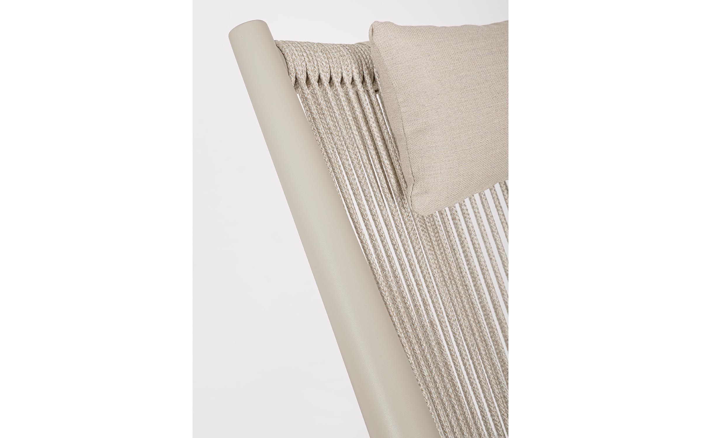 Boki i oparcie oplecione liną polipropylenową oliwkową, wodoodporne i odporne na uv.