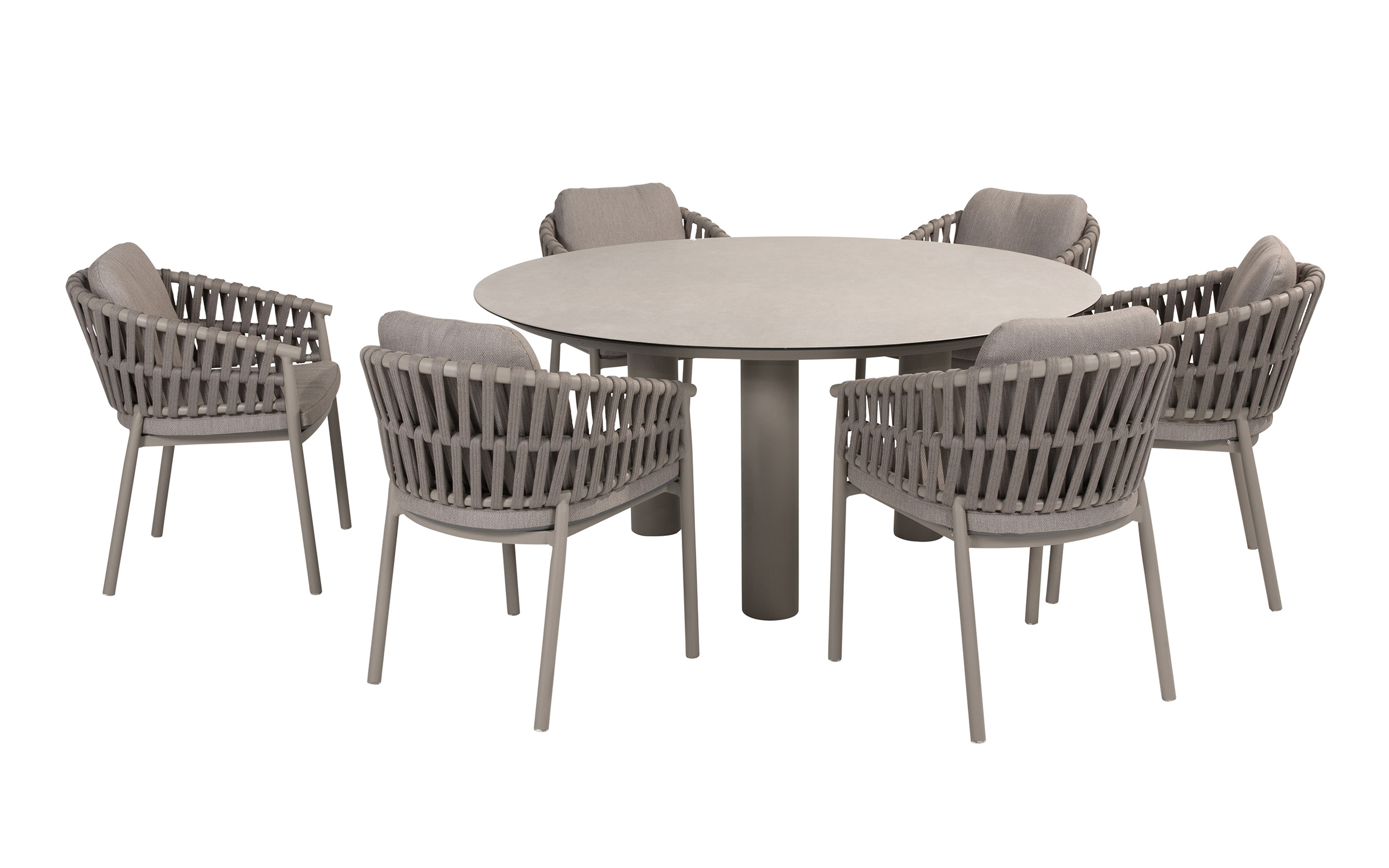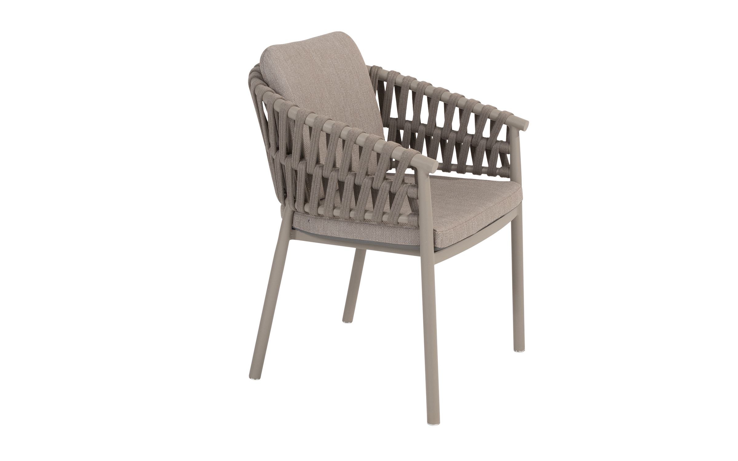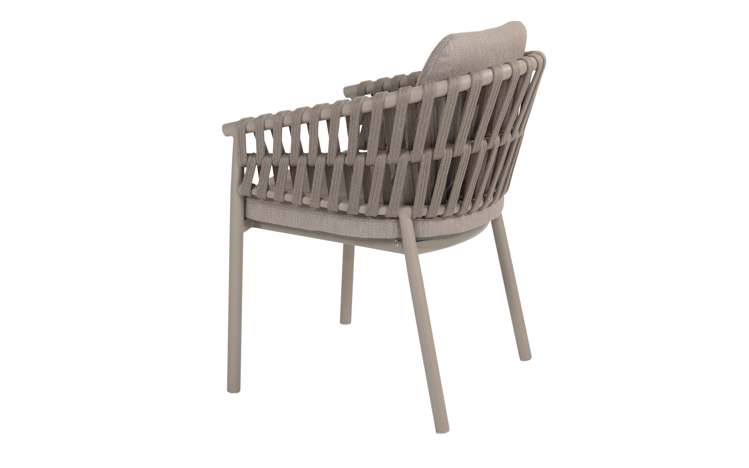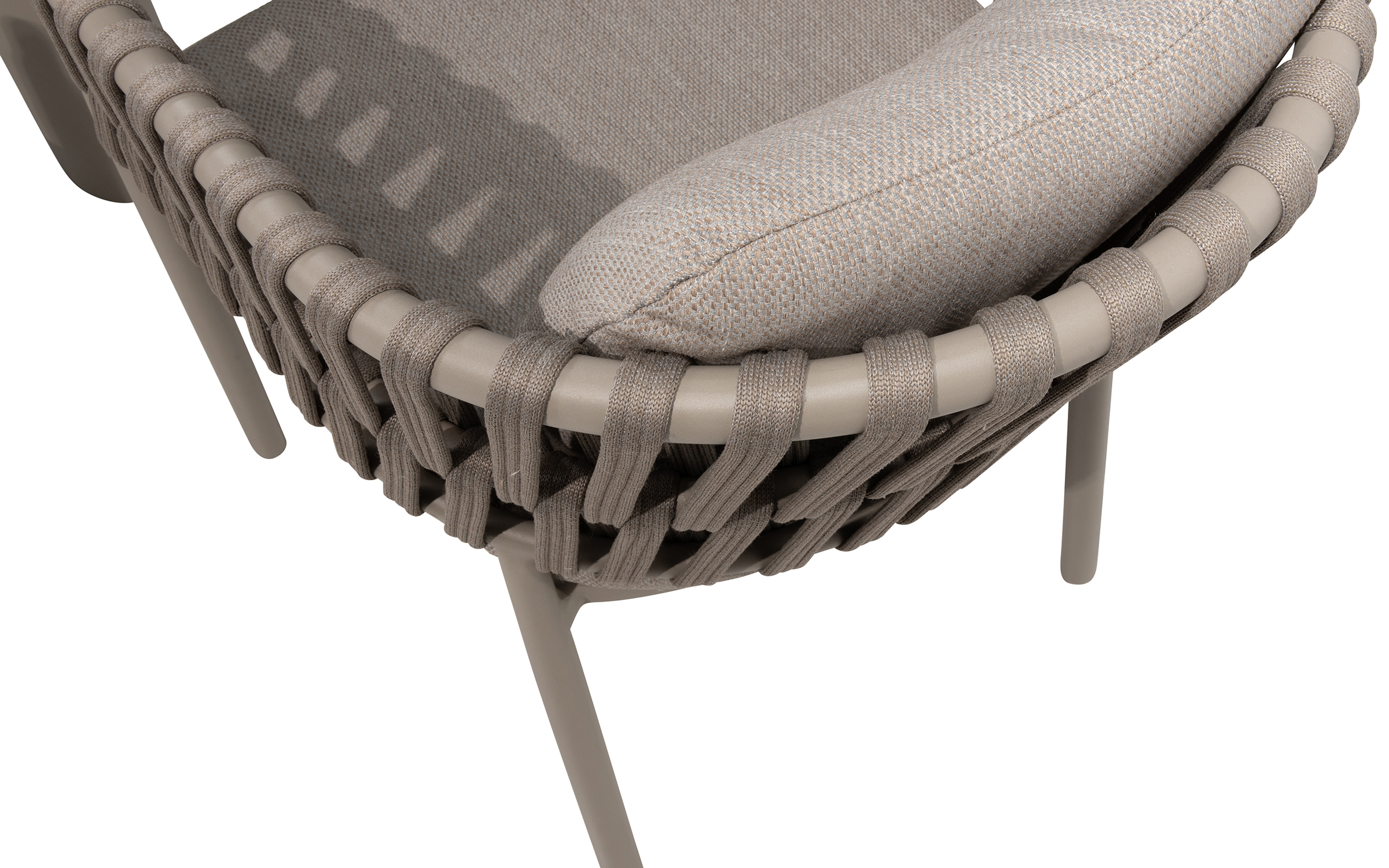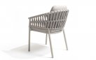 Nowoczesne krzesło ogrodowe, wykonane w wyrafinowanej kolorystyce Cloud (jasnoszare). Dzięki okrągłym kształtom i ciekawym wzorom liny polipropylenowej, krzesło Catalana wpasuje się w każdy ogród lub taras.