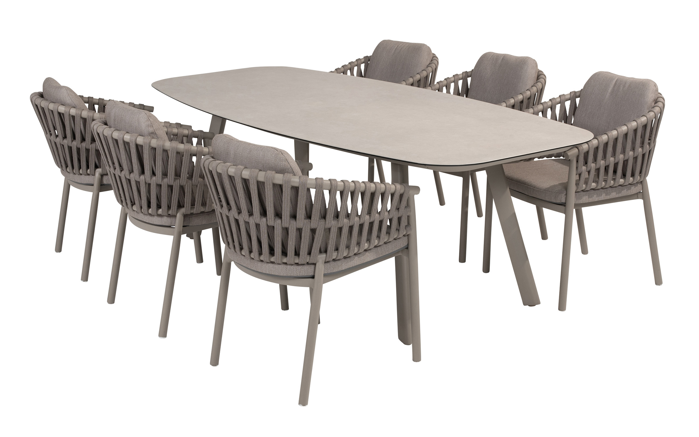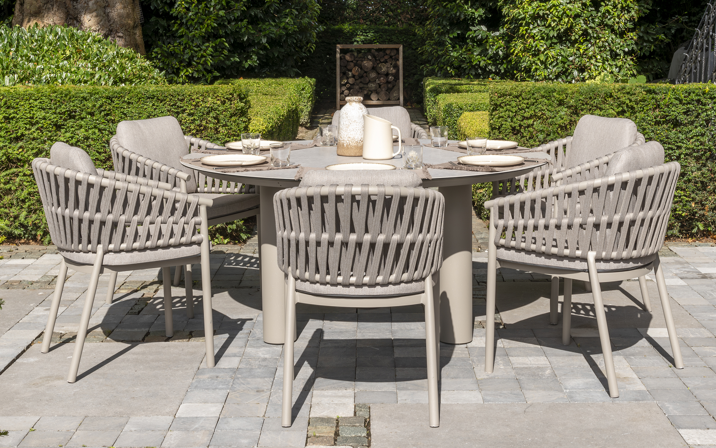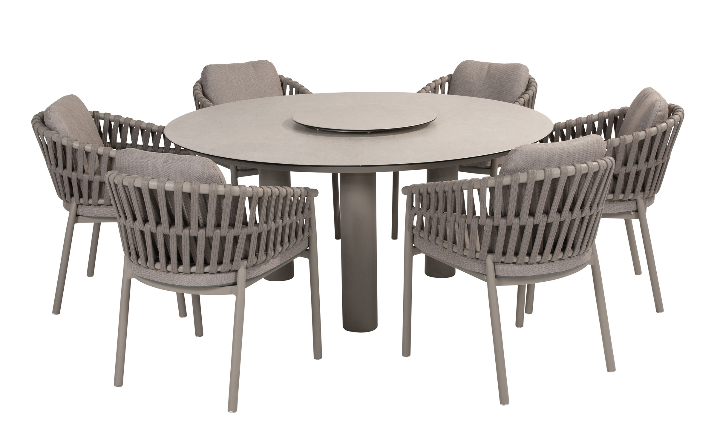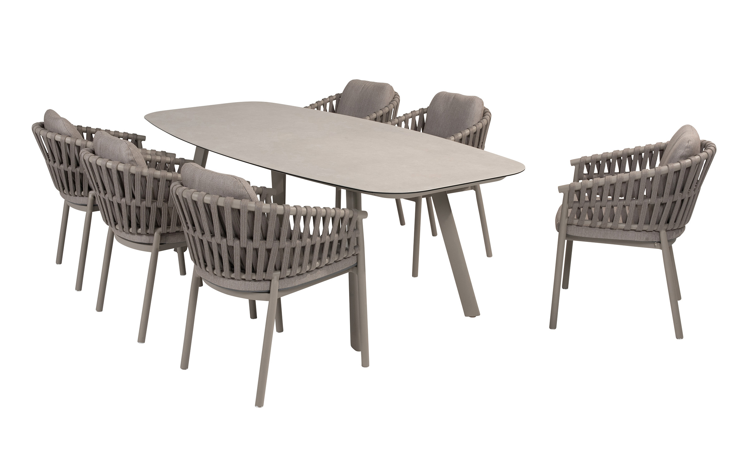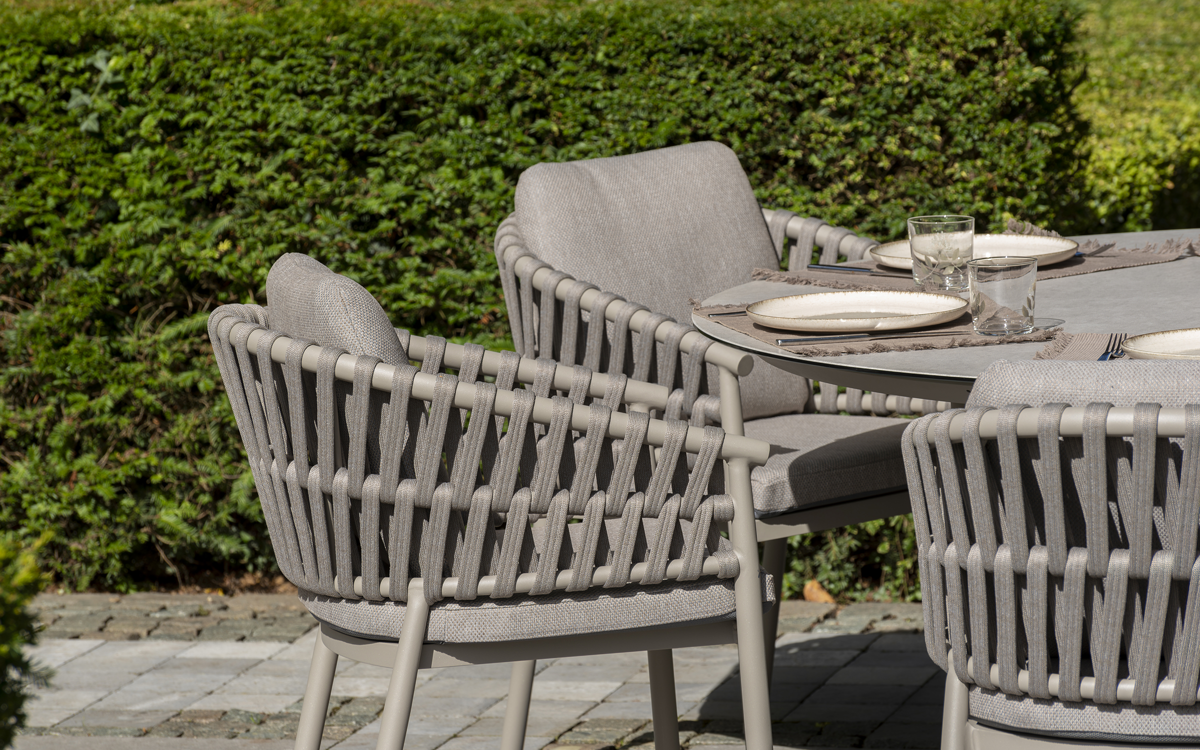 Nowoczesne krzesło ogrodowe, wykonane w wyrafinowanej kolorystyce Cloud (jasnoszare). Dzięki okrągłym kształtom i ciekawym wzorom liny polipropylenowej, krzesło Catalana wpasuje się w każdy ogród lub taras.