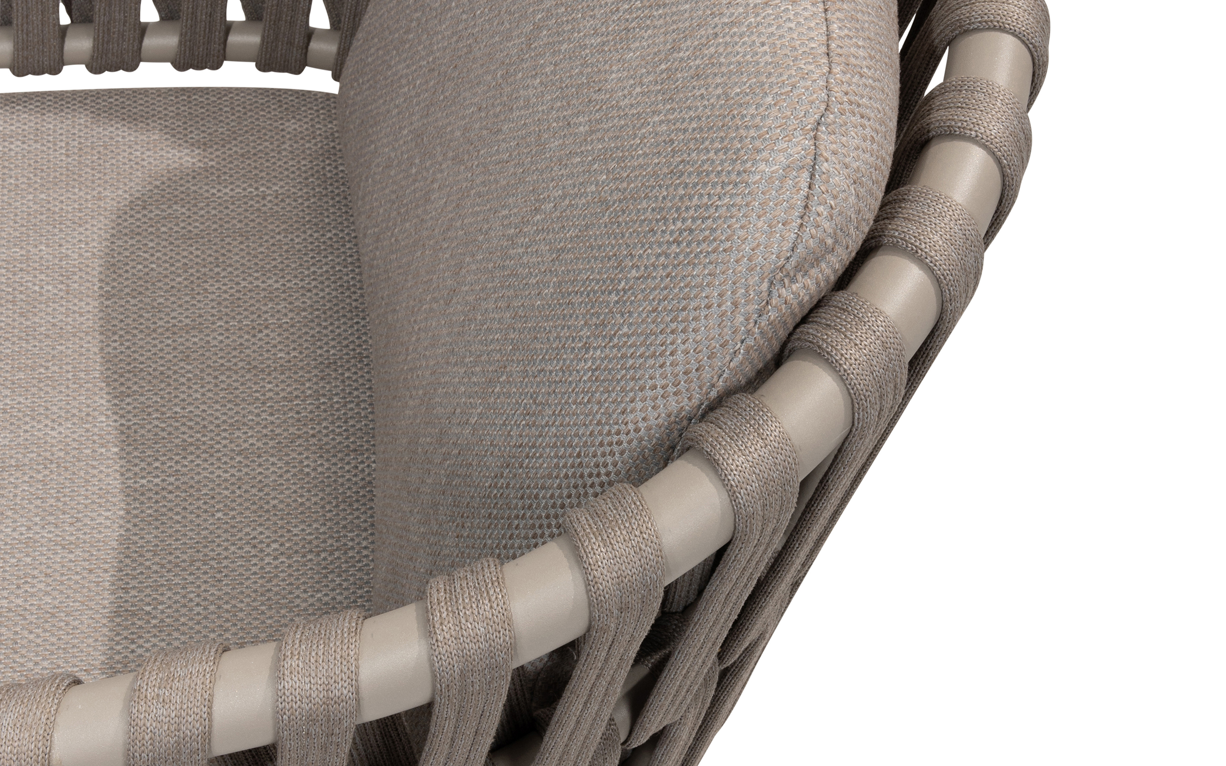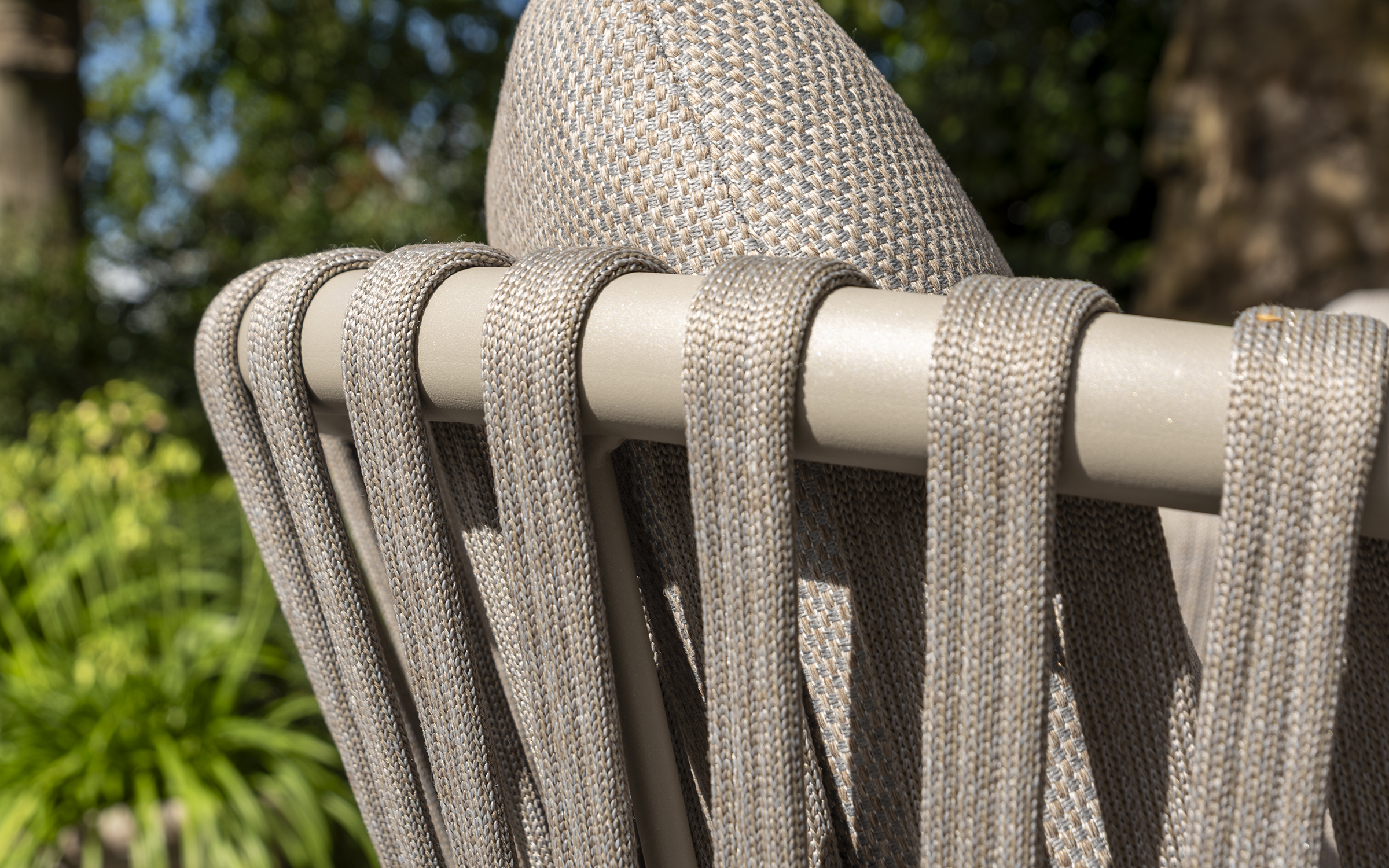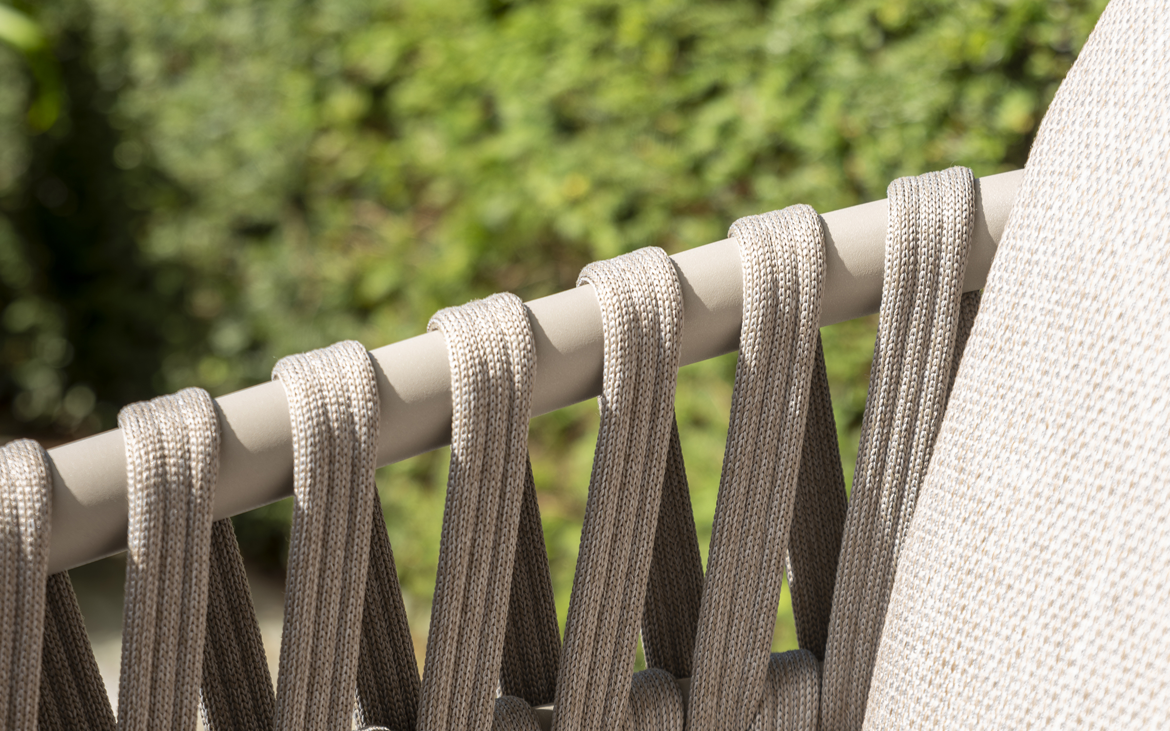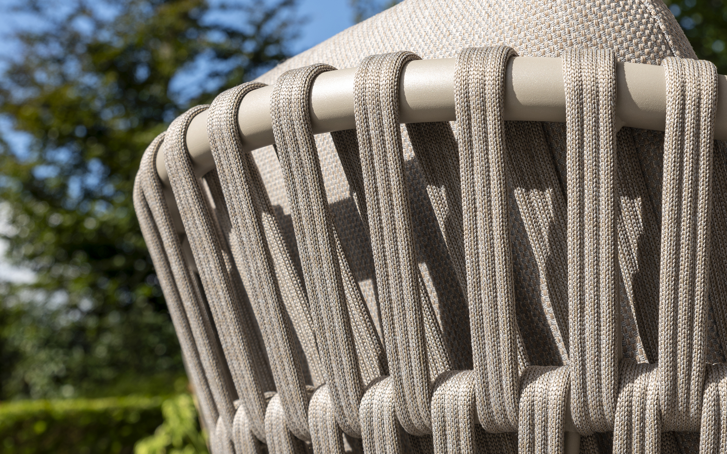 Boki i oparcie oplecione liną polipropylenową, wodoodporne i odporne na uv.