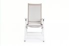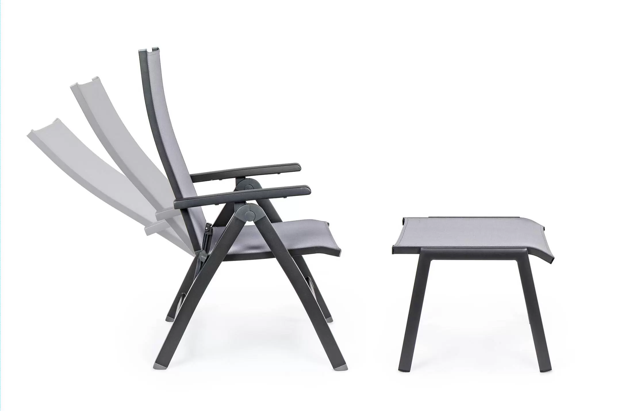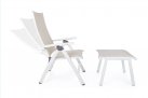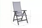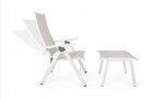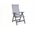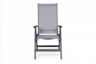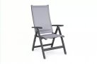 Lekki fotel pozycyjny składany z podłokietnikami ogrodowy o aluminiowej konstrukcji malowanej proszkowo. Siedzisko i oparcie z tekstyliny.
