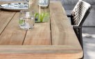 Podłokietniki: drewno teakowe SVLK — naturalne, odporne na wilgoć i promieniowanie UV. Zaleca się okresowe czyszczenie teaku miękką szczotką i olejowanie dla zachowania koloru.