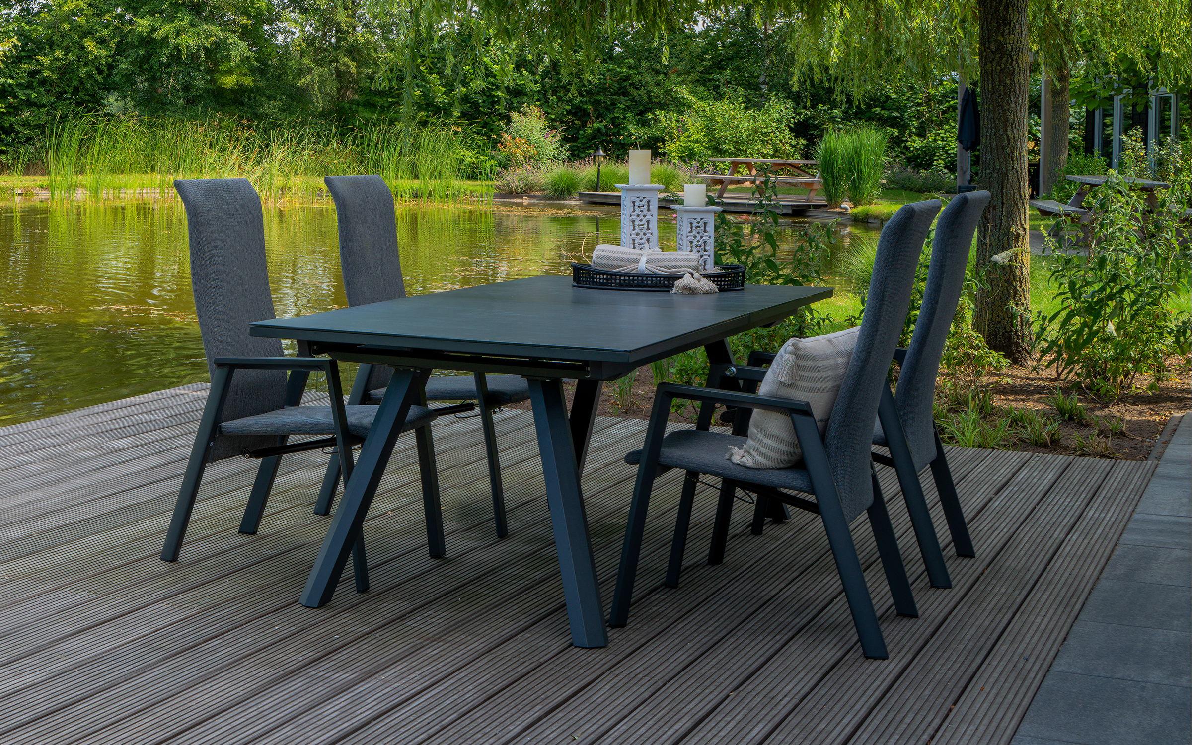 Krzesło ogrodowe aluminiowe FLARE z wysokim pochylanym oparciem