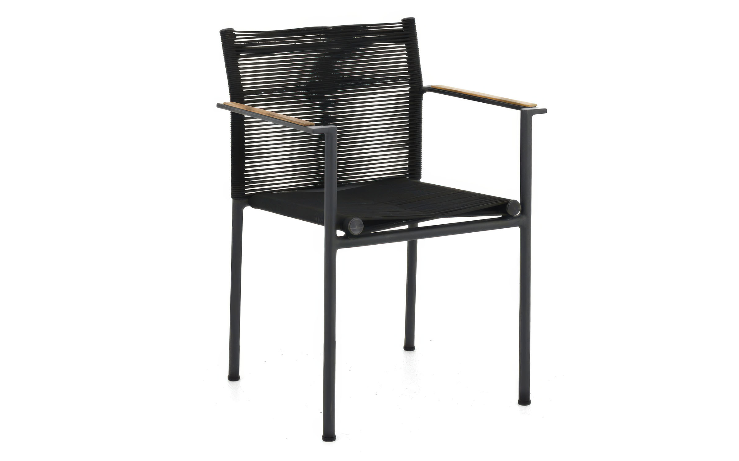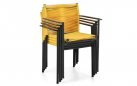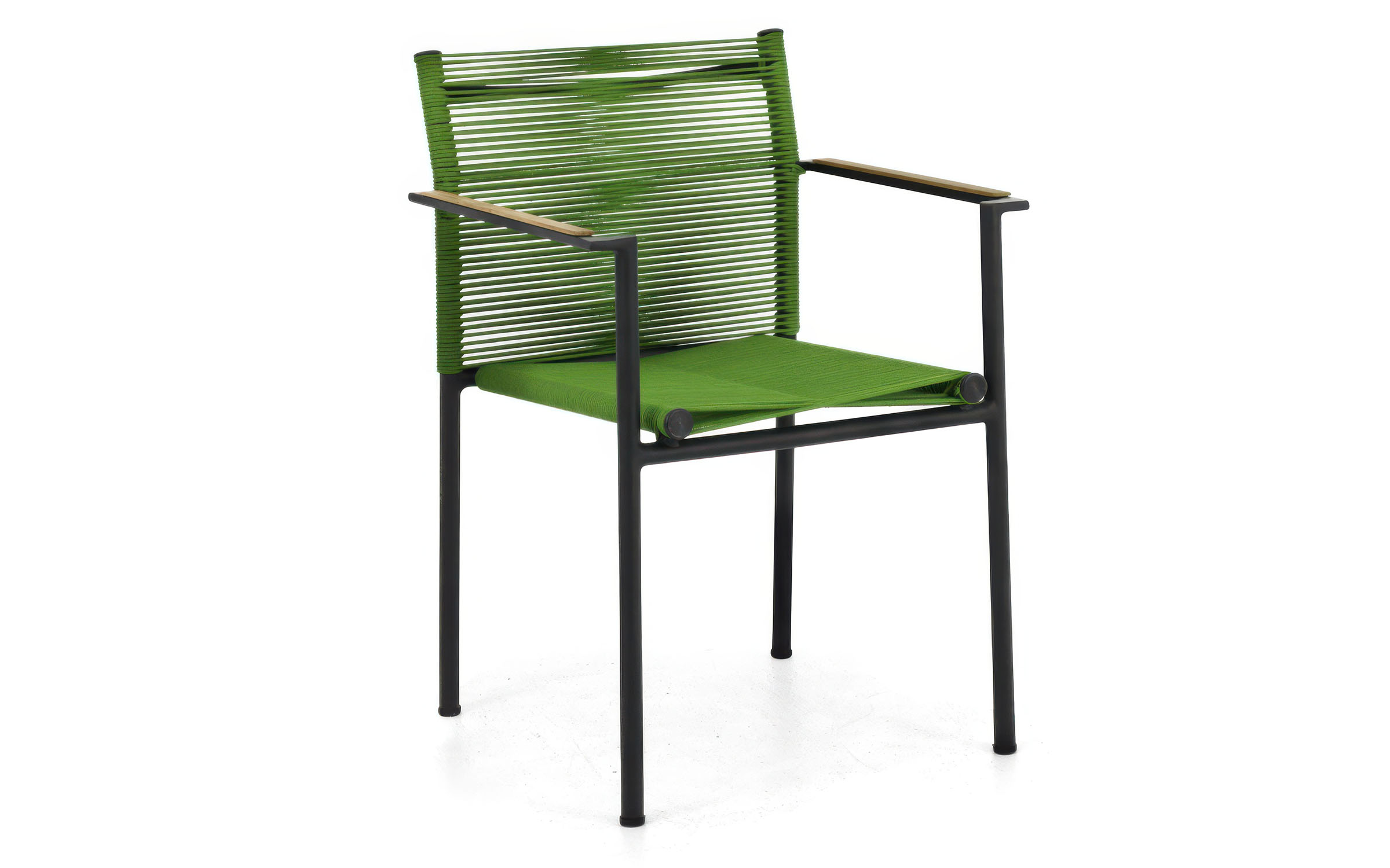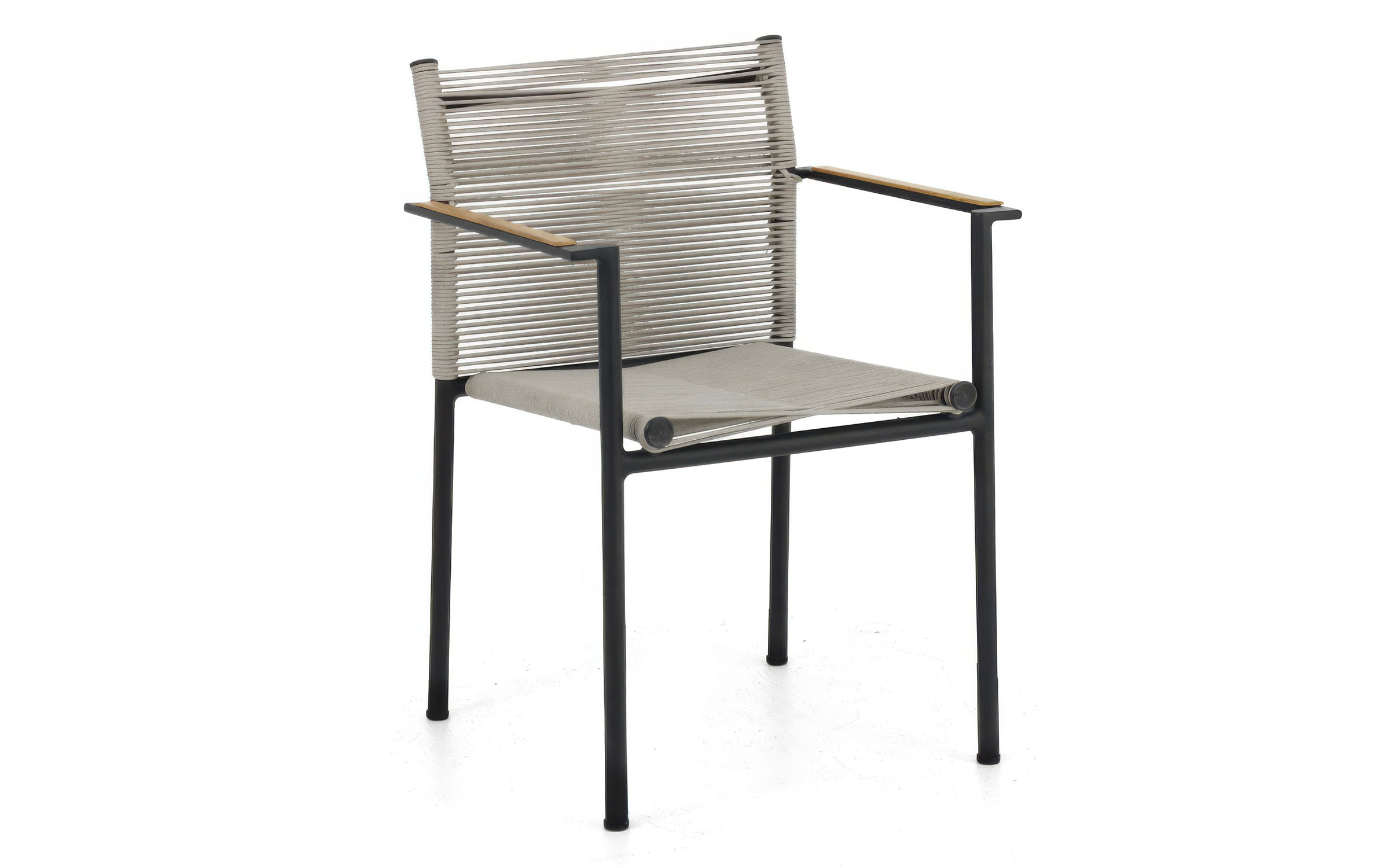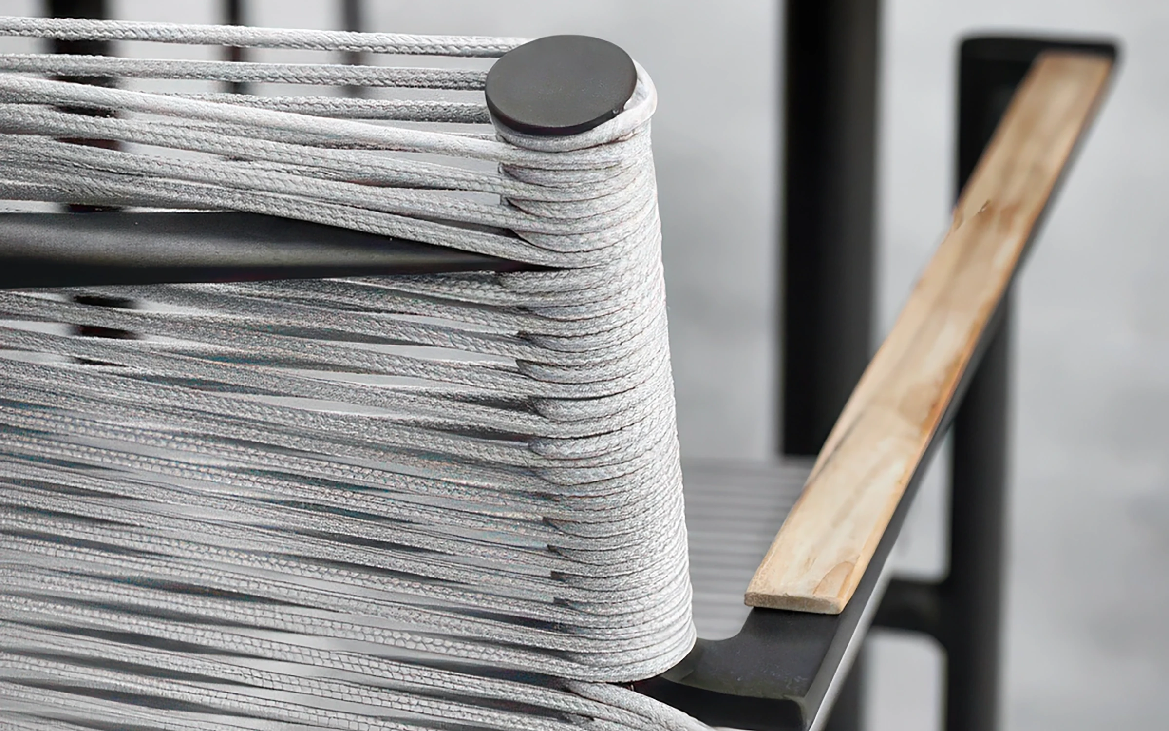 Fotel JAKARTA to nowoczesne połączenie komfortu i stylu. Aluminiowa konstrukcja malowana proszkowo została opleciona trwałym sznurem rope w czterech wersjach kolorystycznych: grey, black, lemon oraz olive. Siedzisko wyposażone jest w poduszkę z tkaniny olefin, odpornej na wilgoć i promieniowanie UV.