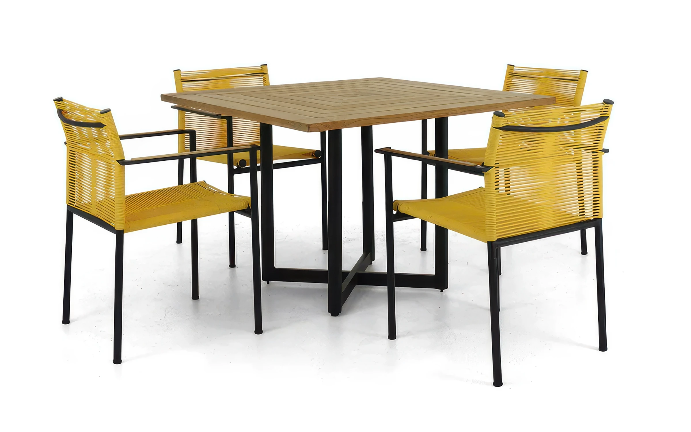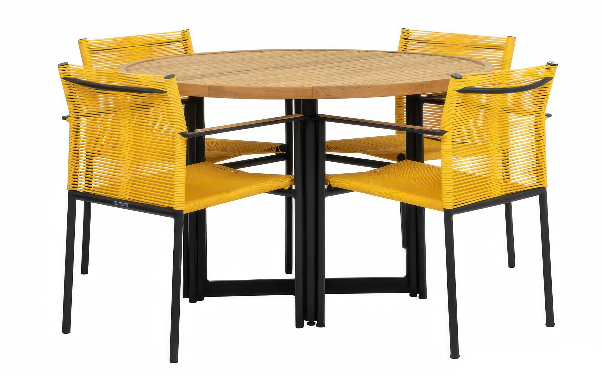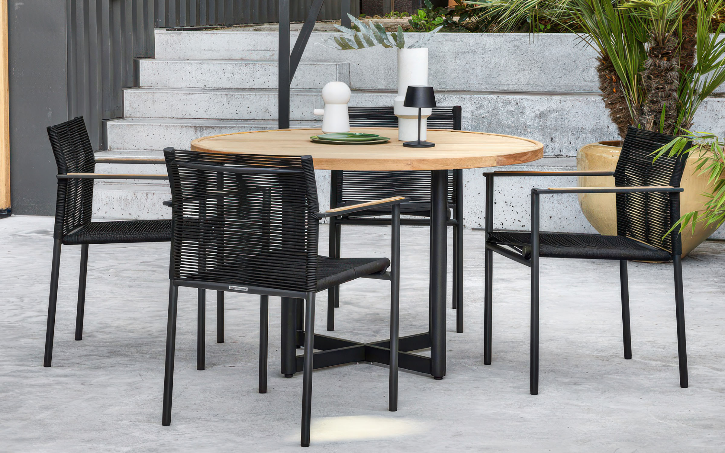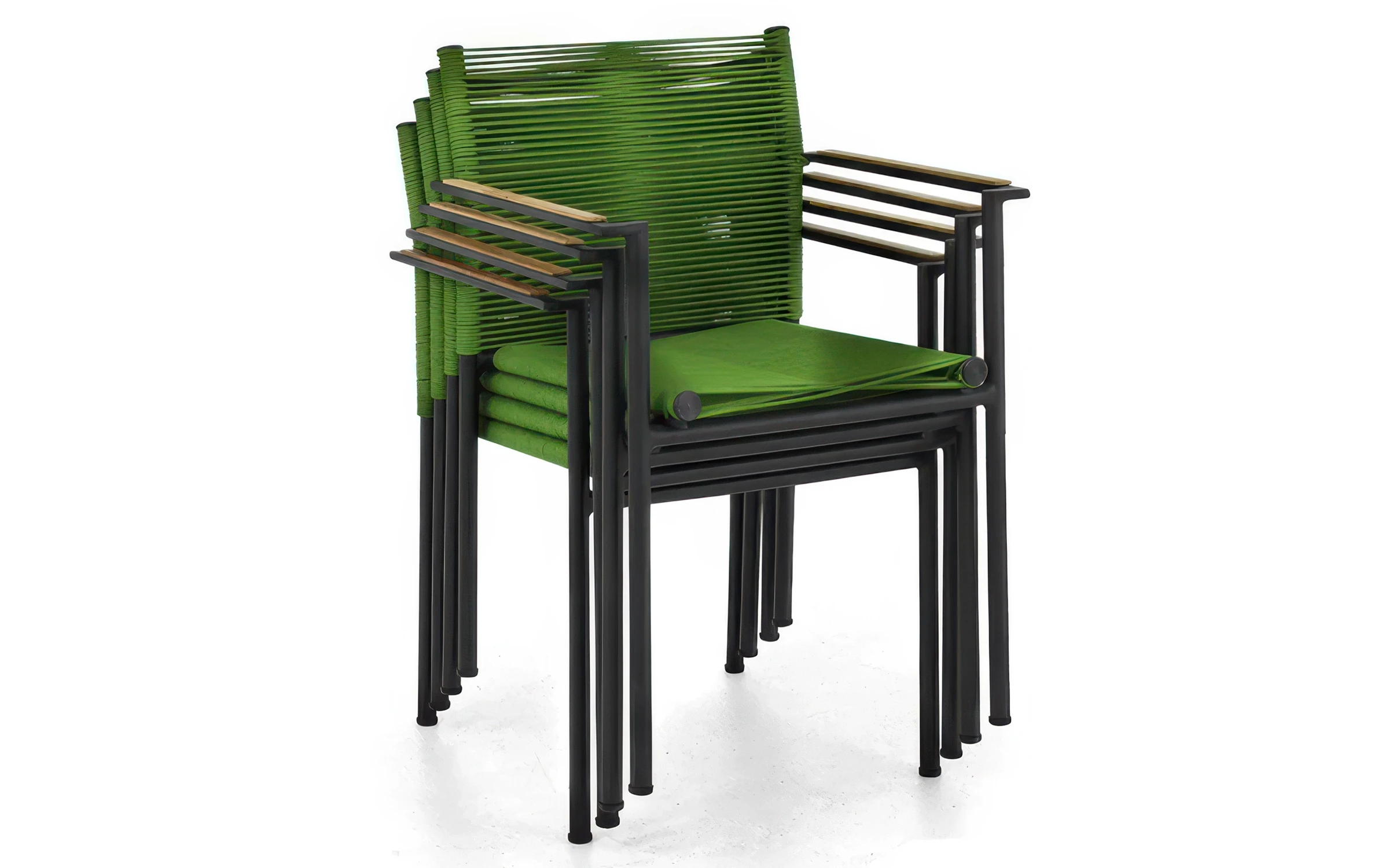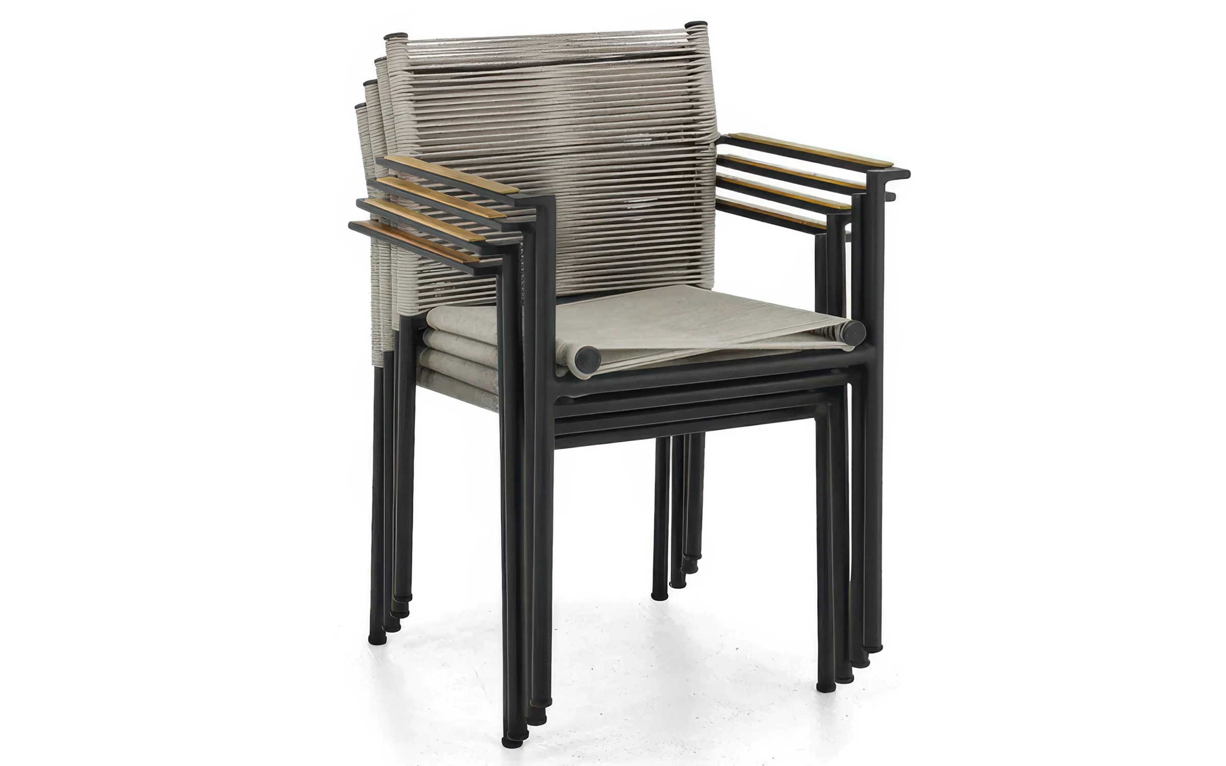 Fotel JAKARTA to nowoczesne połączenie komfortu i stylu. Aluminiowa konstrukcja malowana proszkowo została opleciona trwałym sznurem rope w czterech wersjach kolorystycznych: grey, black, lemon oraz olive. Siedzisko wyposażone jest w poduszkę z tkaniny olefin, odpornej na wilgoć i promieniowanie UV.