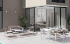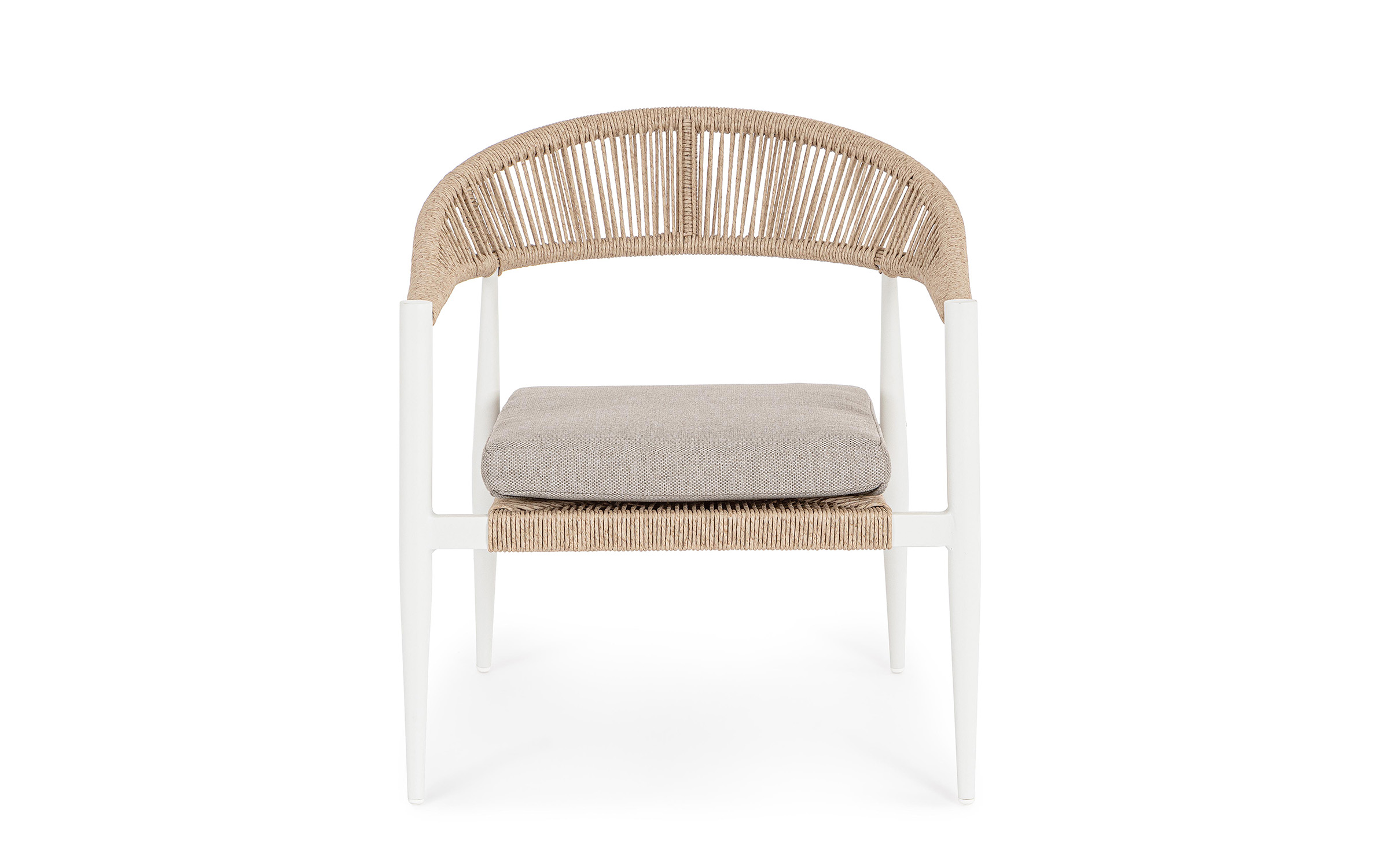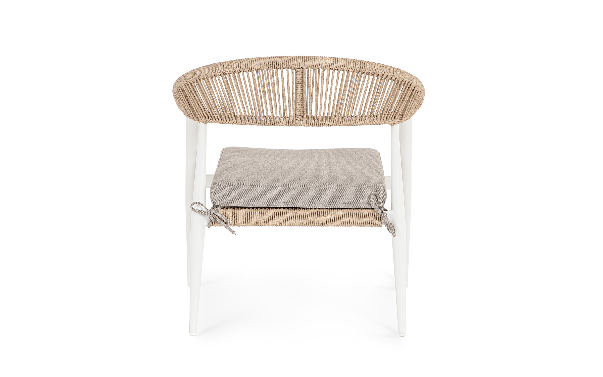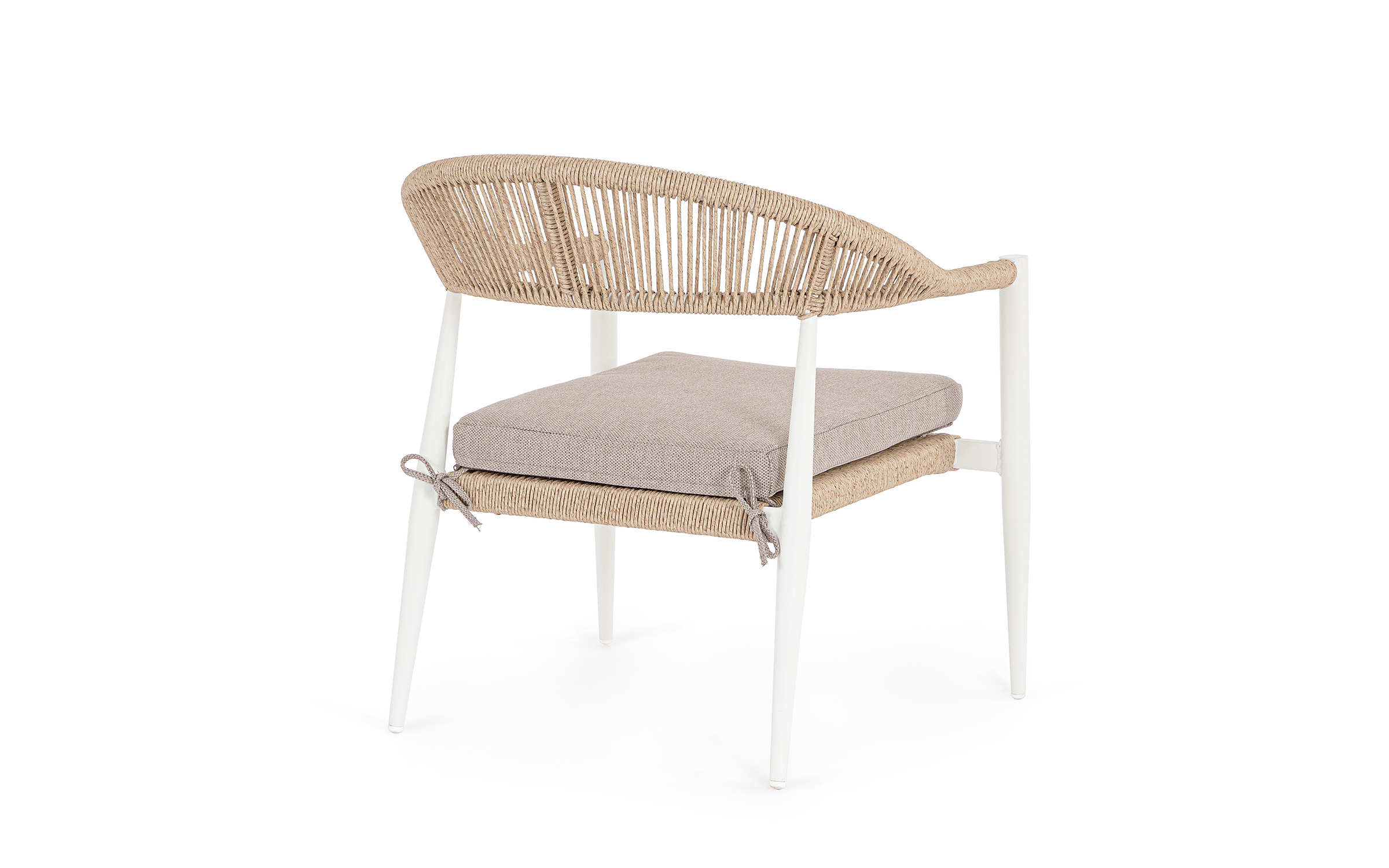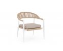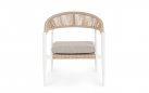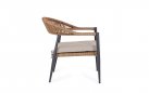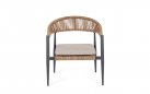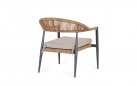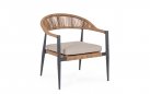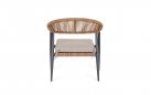 Fotel o lekkiej konstrukcji wpasowujący się w nowoczesny styl na tarasie. Aluminiowa podstawa opleciona technorattanem zwijanym w stylu liścia bananowca, W komplecie poduszka mocowana wstążkami do siedzenia.