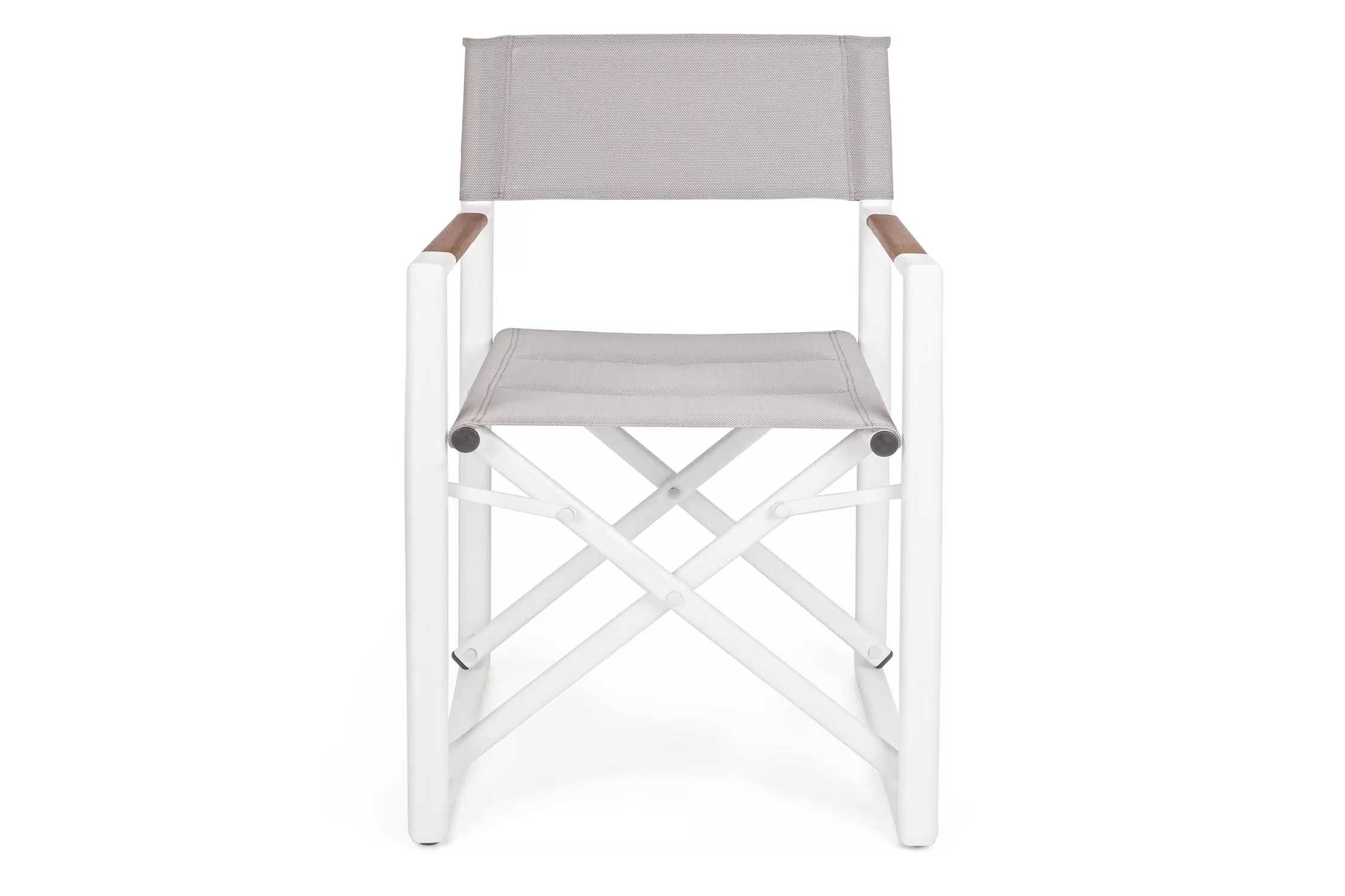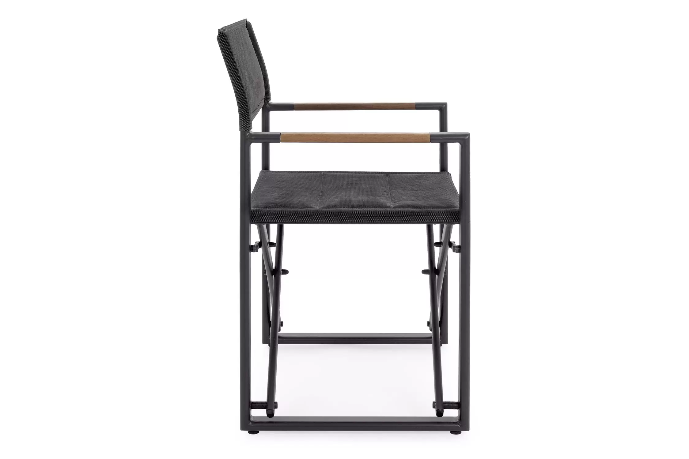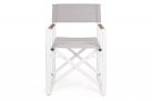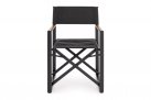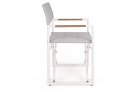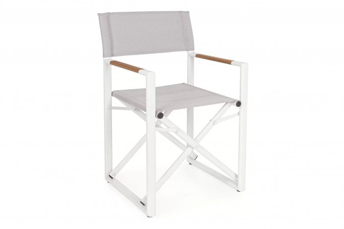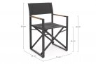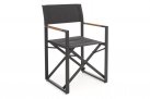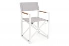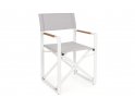 Krzesło składane reżyserskie aluminiowe na taras. siedzenie i oparcie z gęstej dwuwarstwowej tekstyliny z miękką wkładką wodoodporną. Podłokietniki z wstawkami z drewna teakowego.