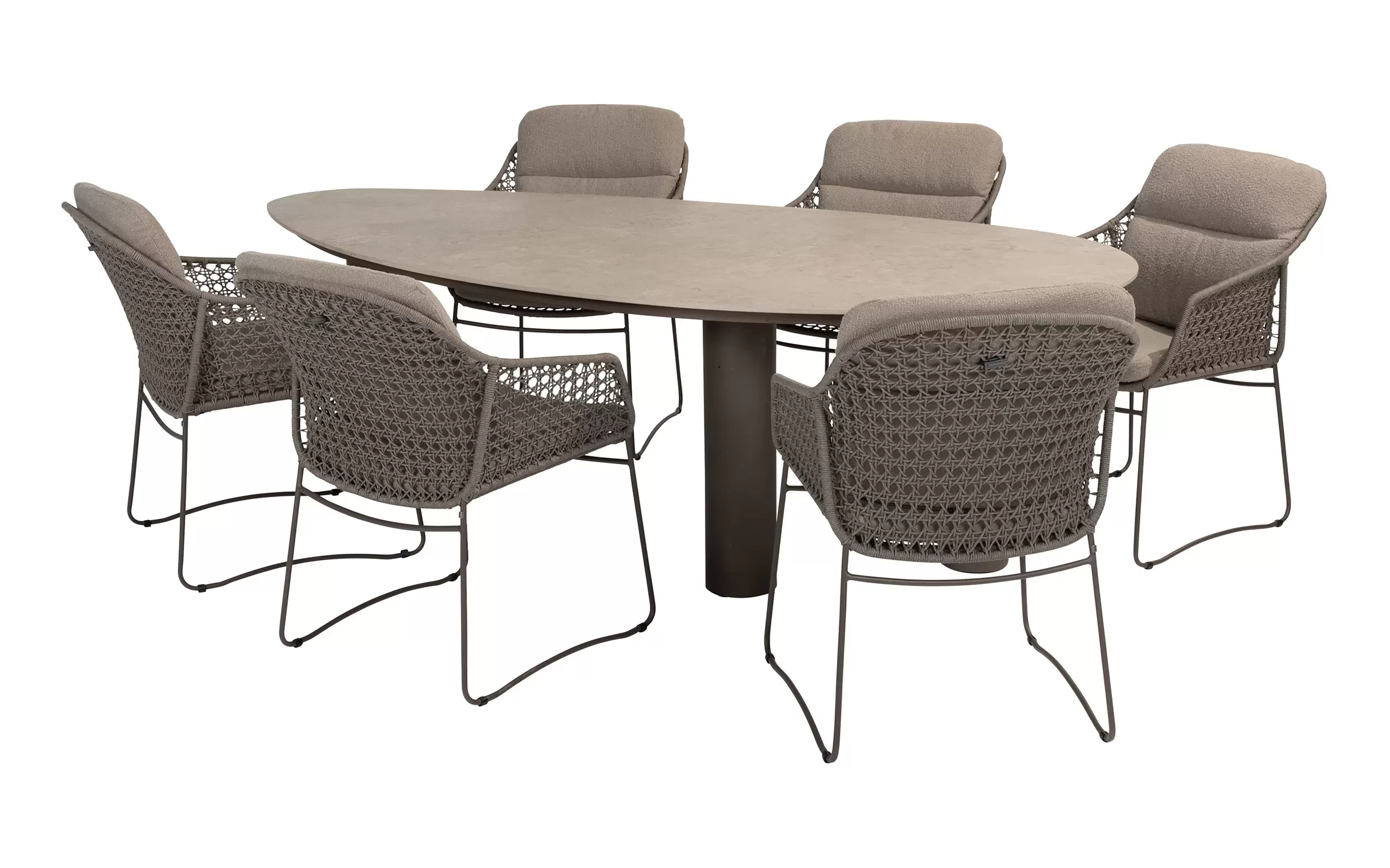 Zdejmowane poszewki obiciowe z materiału Boucle wyplecionego z odpornych na działanie UV i wody włókien polipropylenowych.