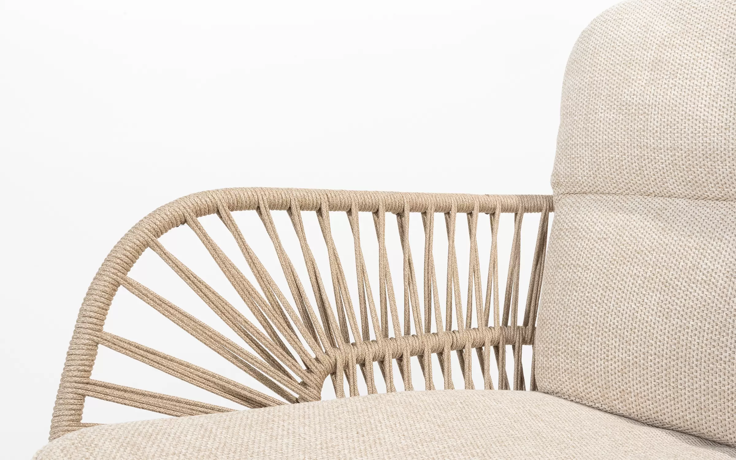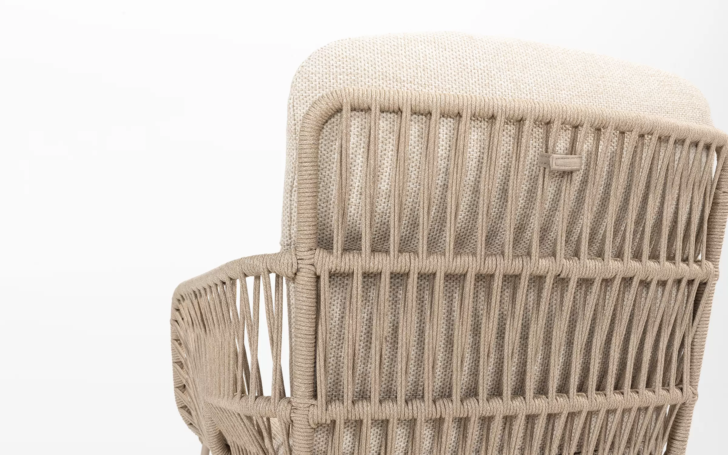 - plecionka ze sznurka nadaje krzesłu naturalny i ciepły wygląd, idealny do relaksu na świeżym powietrzu.