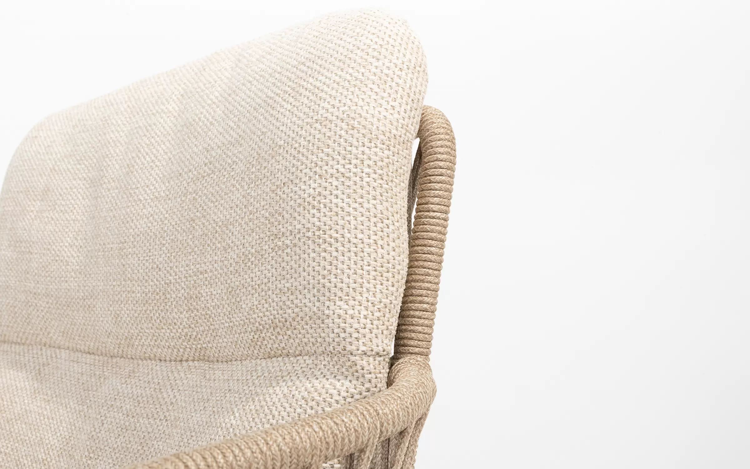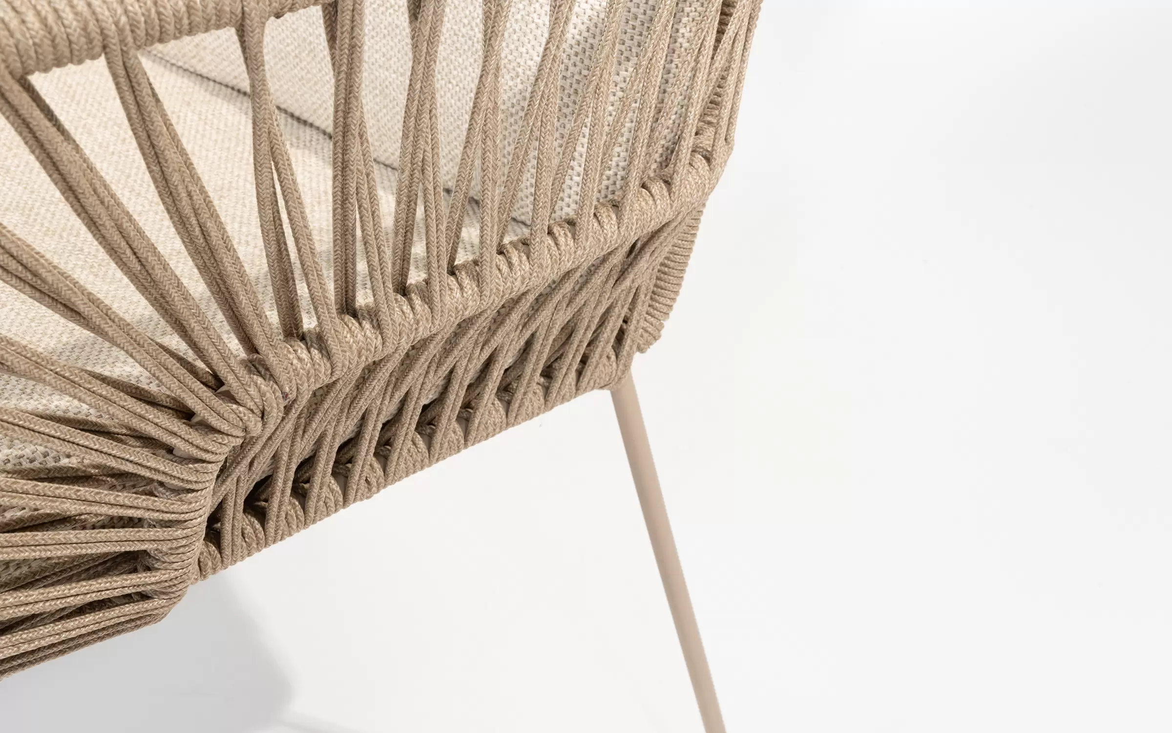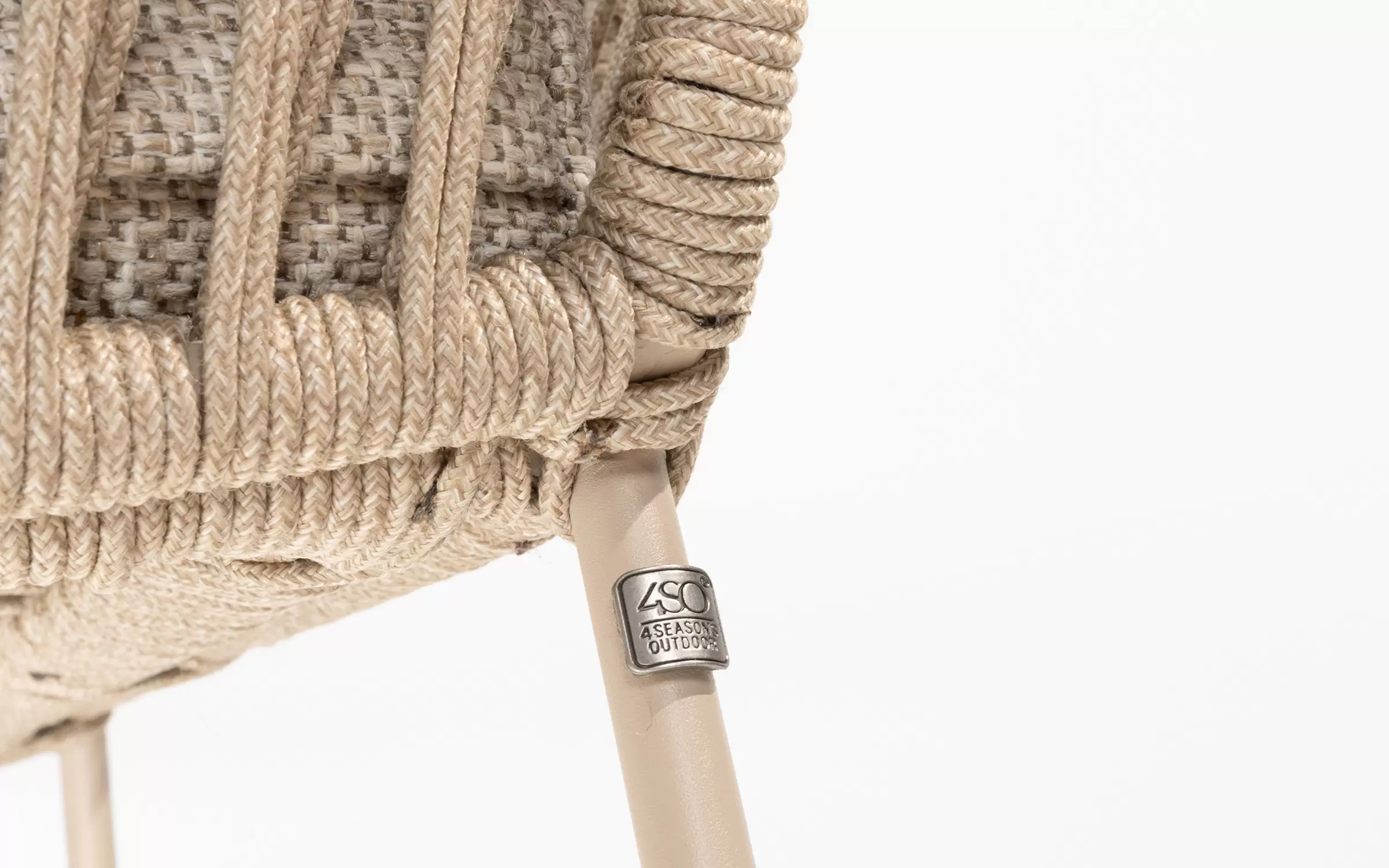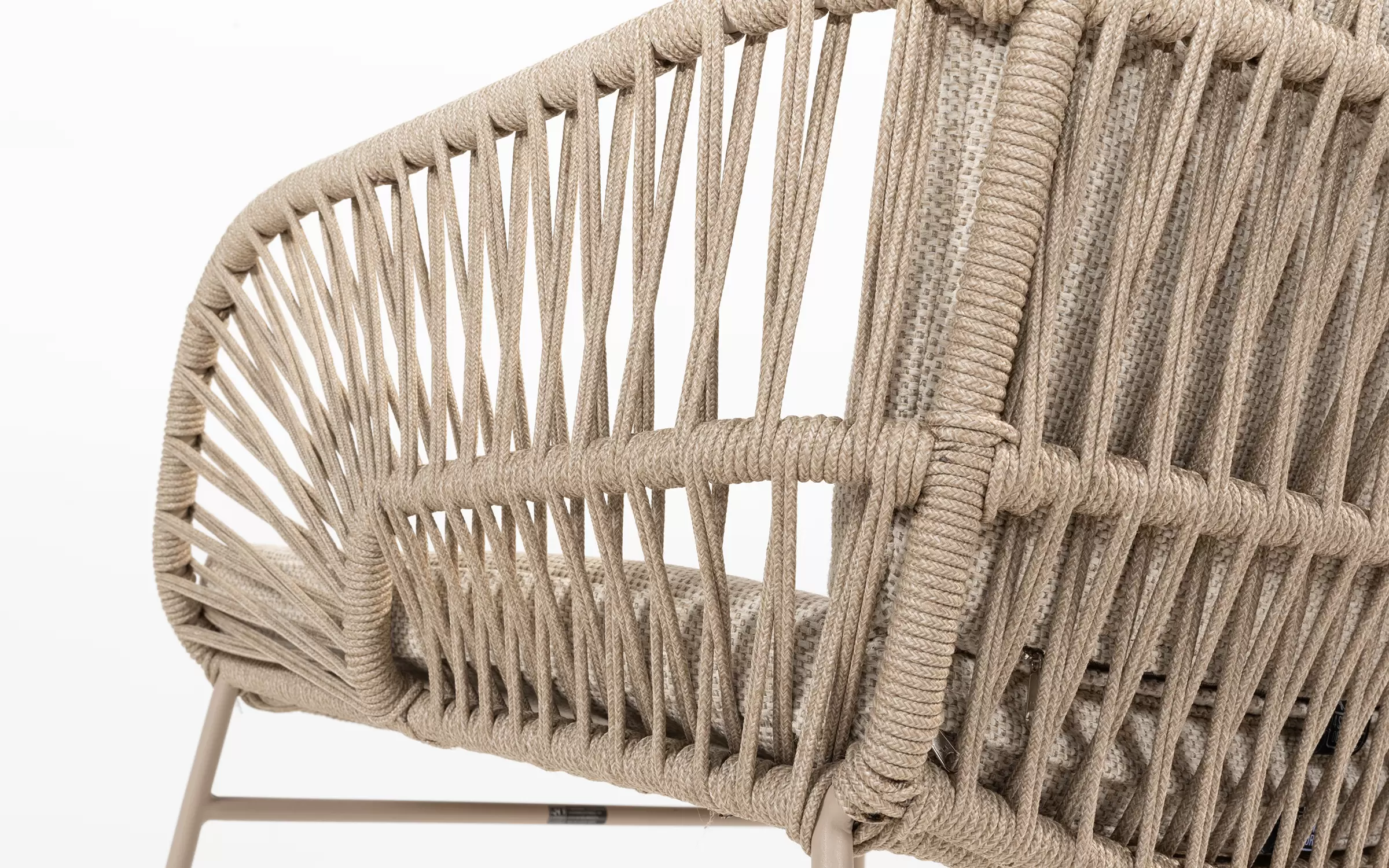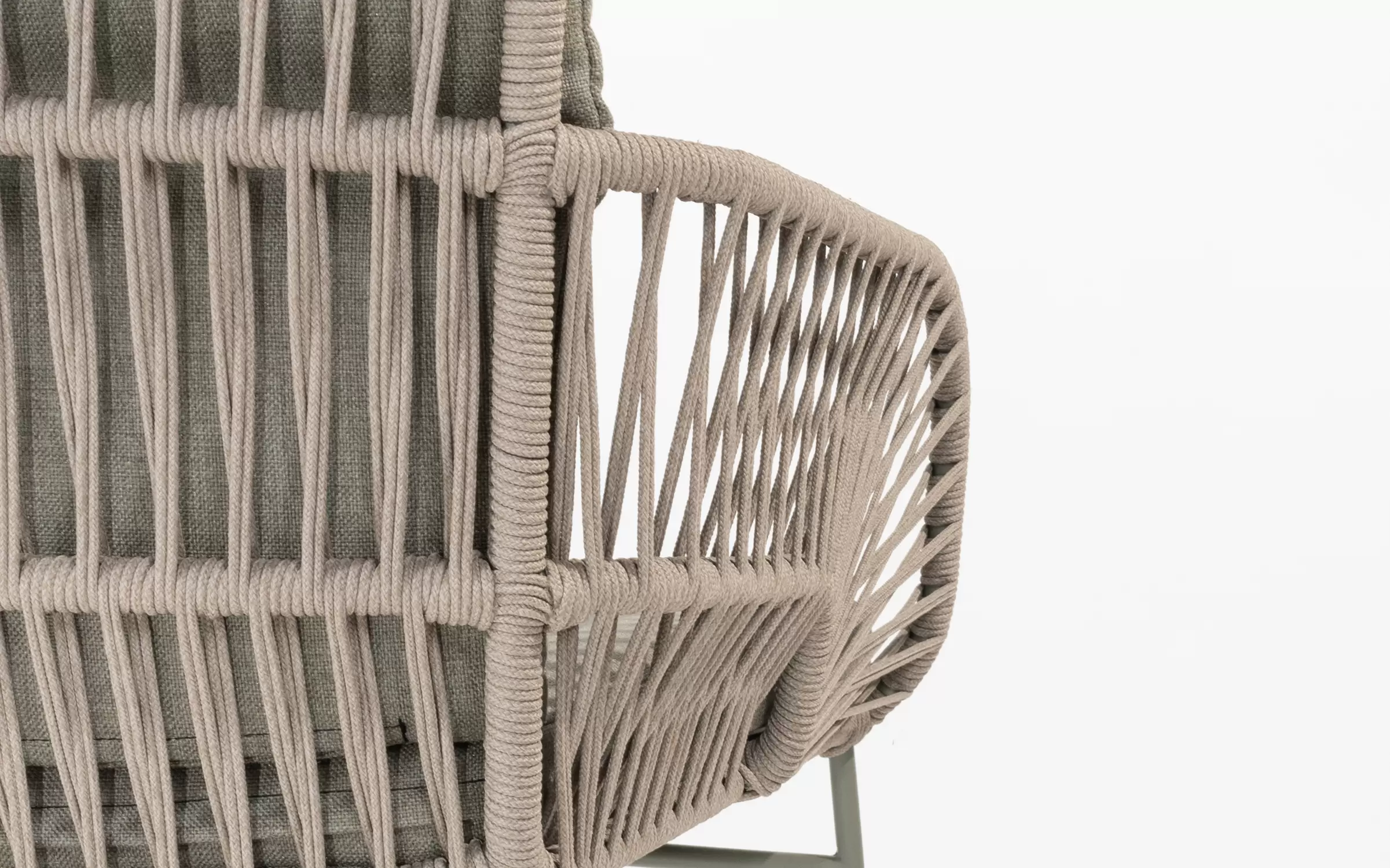 Krzesło składa się z ramy ze stali nierdzewnej malowanej proszkowo oplecionej sznurkiem polipropylenowym odpornym na wpływ warunków atmosferycznych.