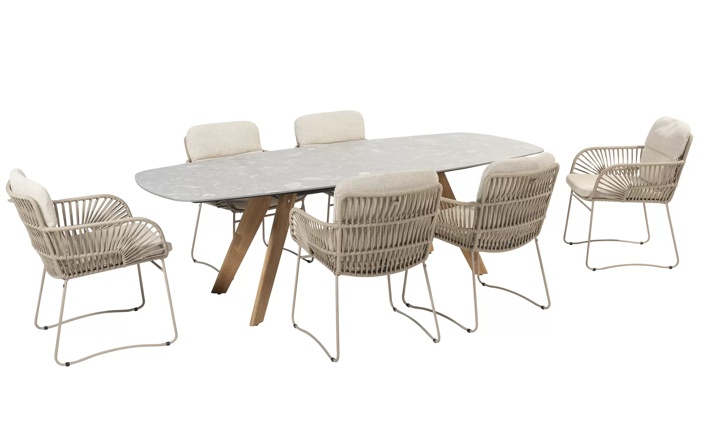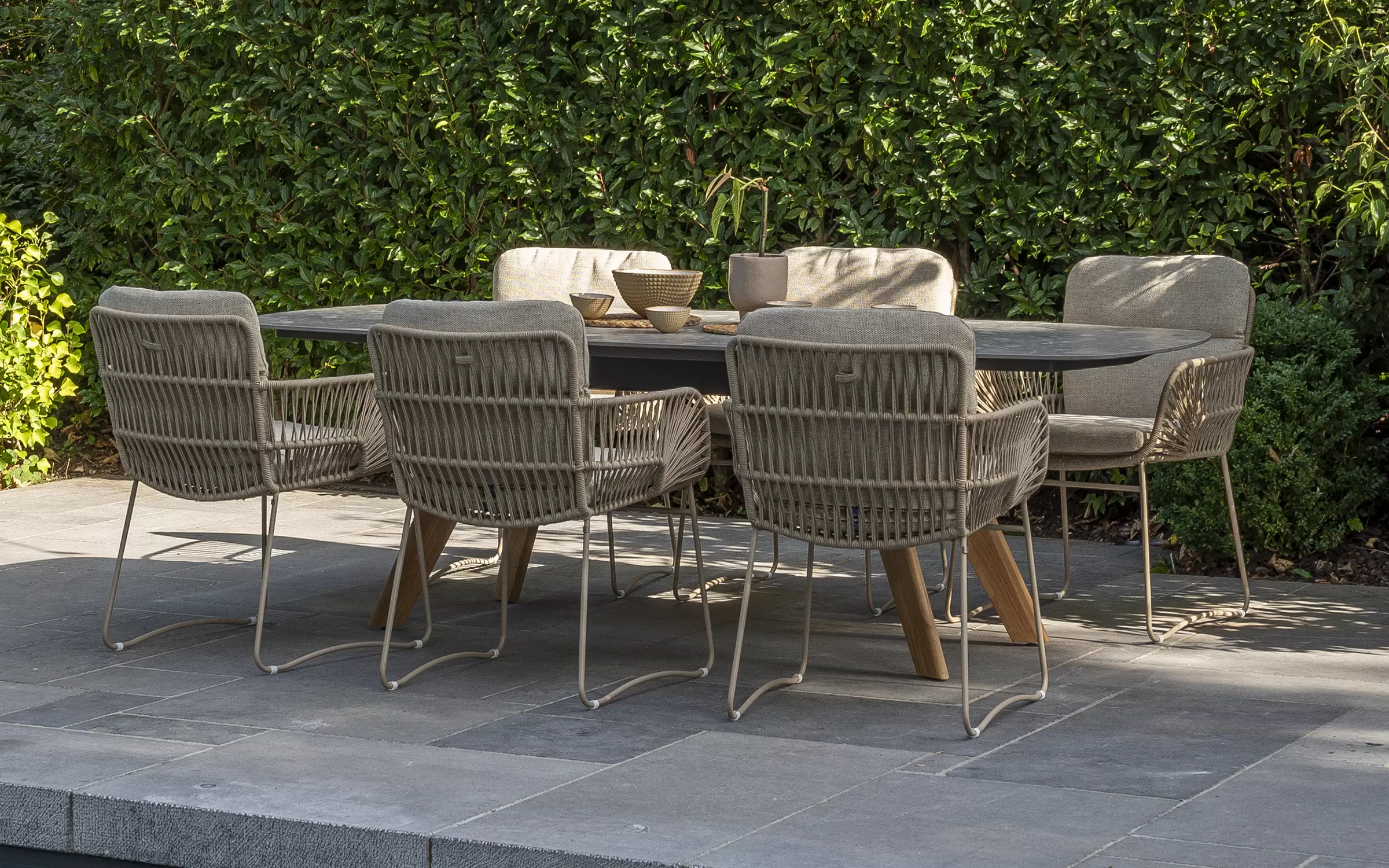 Odkryj idealną równowagę pomiędzy stylem i wygodą dzięki krzesłu do jadalni 4 Seasons Outdoor Murcia. Krzesło jest wyposażone w miękkie poduszki i nowoczesną konstrukcję ze stali nierdzewnej z oplotem z liny.
