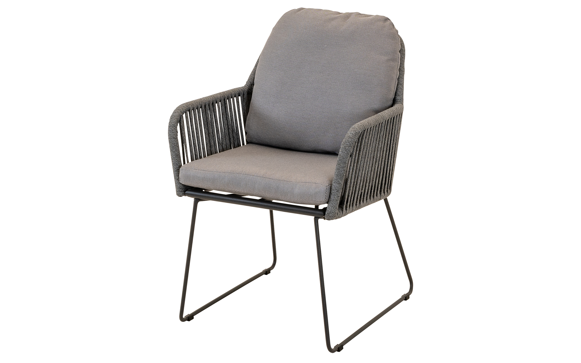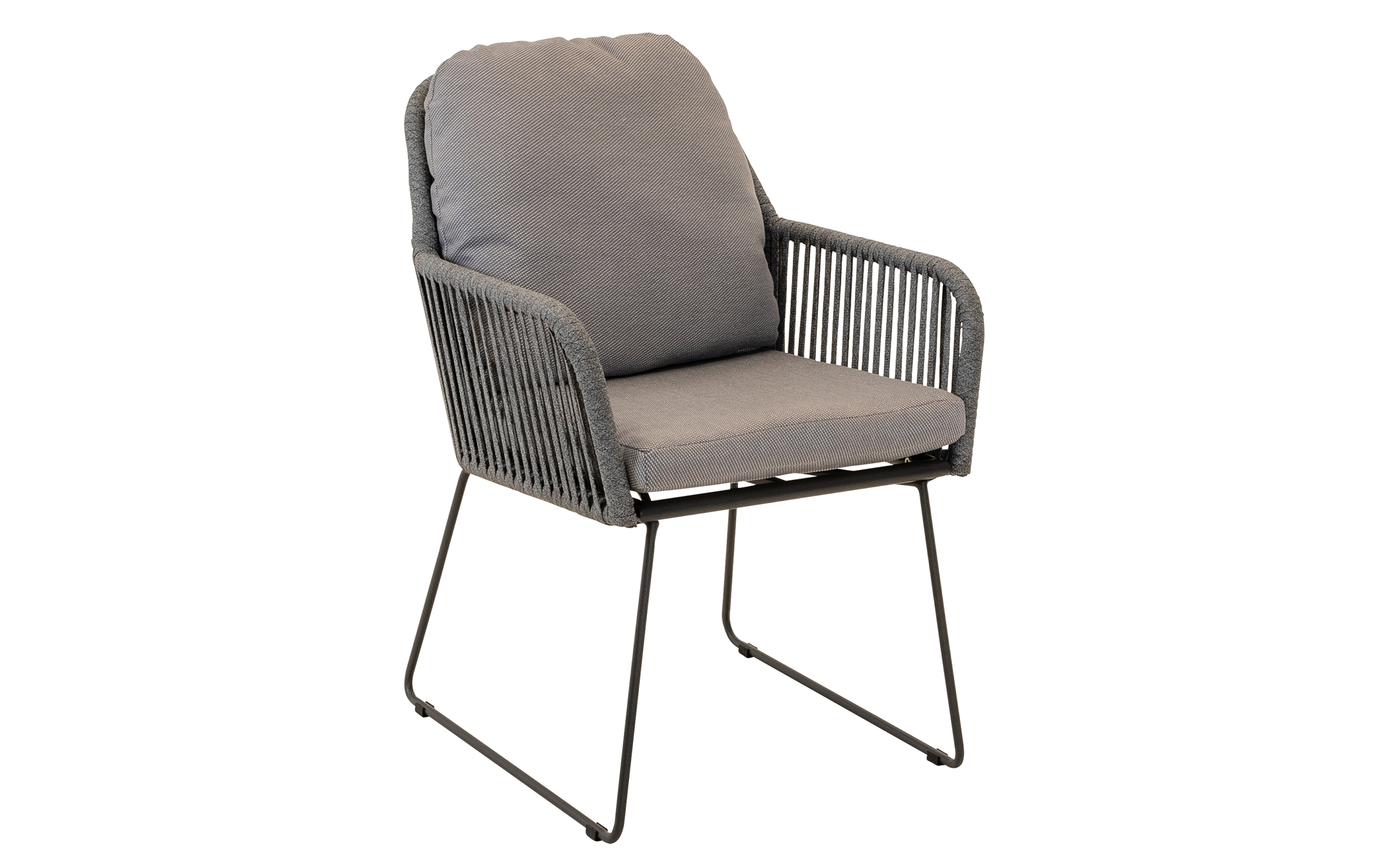 Materiał rope jest wodoodporny, odporny na promieniowanie UV i łatwy w pielęgnacji. Dzięki swojej elastyczności dopasowuje się do kształtu ciała, zapewniając komfort nawet podczas długiego siedzenia. Ergonomiczna forma oparcia i siedziska wspiera prawidłową postawę i pozwala na relaks w ogrodzie, na tarasie czy balkonie.