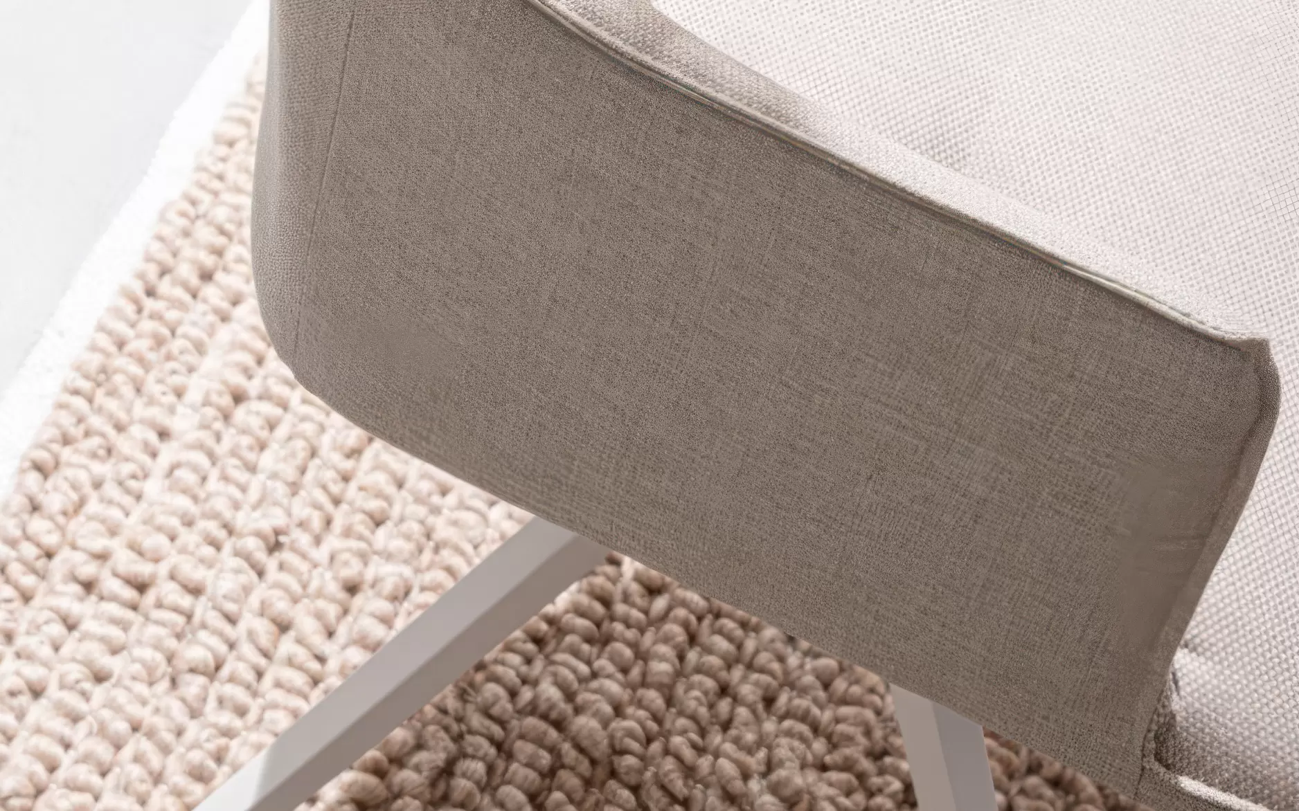 Siedzisko i oparcie pokryto tkaniną Olefin, znaną z wysokiej odporności na wilgoć, zabrudzenia i promieniowanie UV. Wypełnienie jest wodoodporne, dzięki czemu krzesło zachowuje komfort użytkowania nawet w zmiennych warunkach pogodowych.