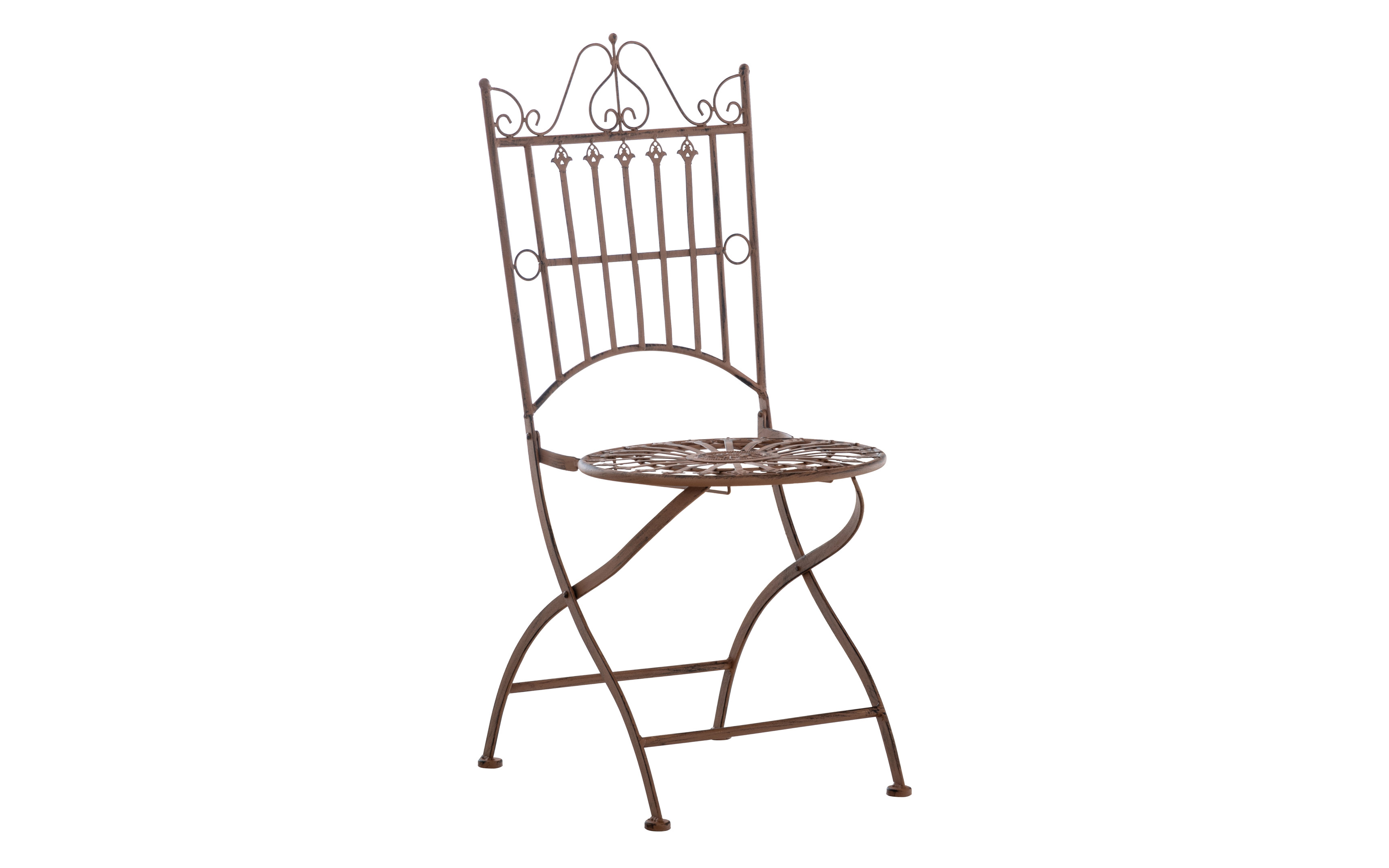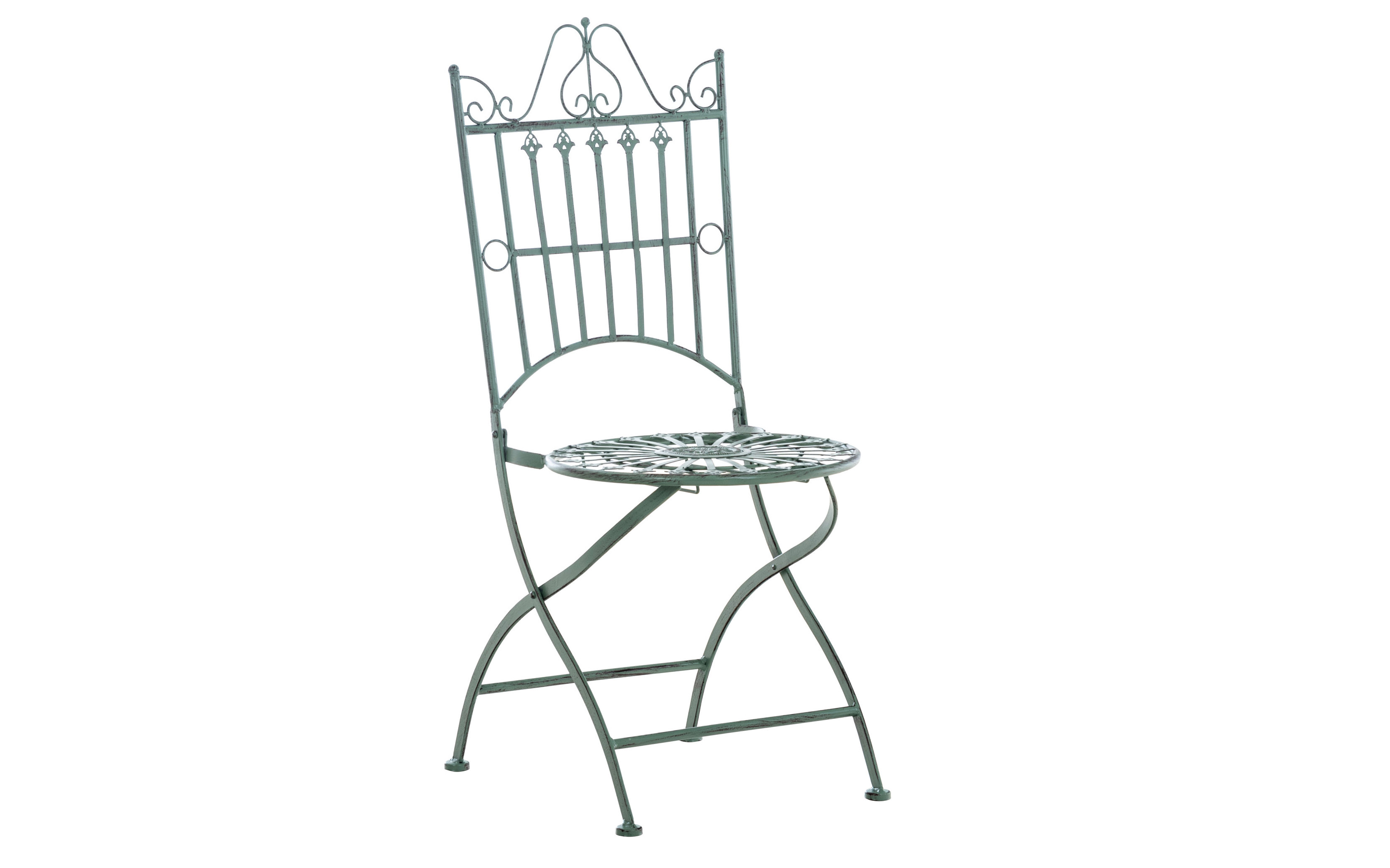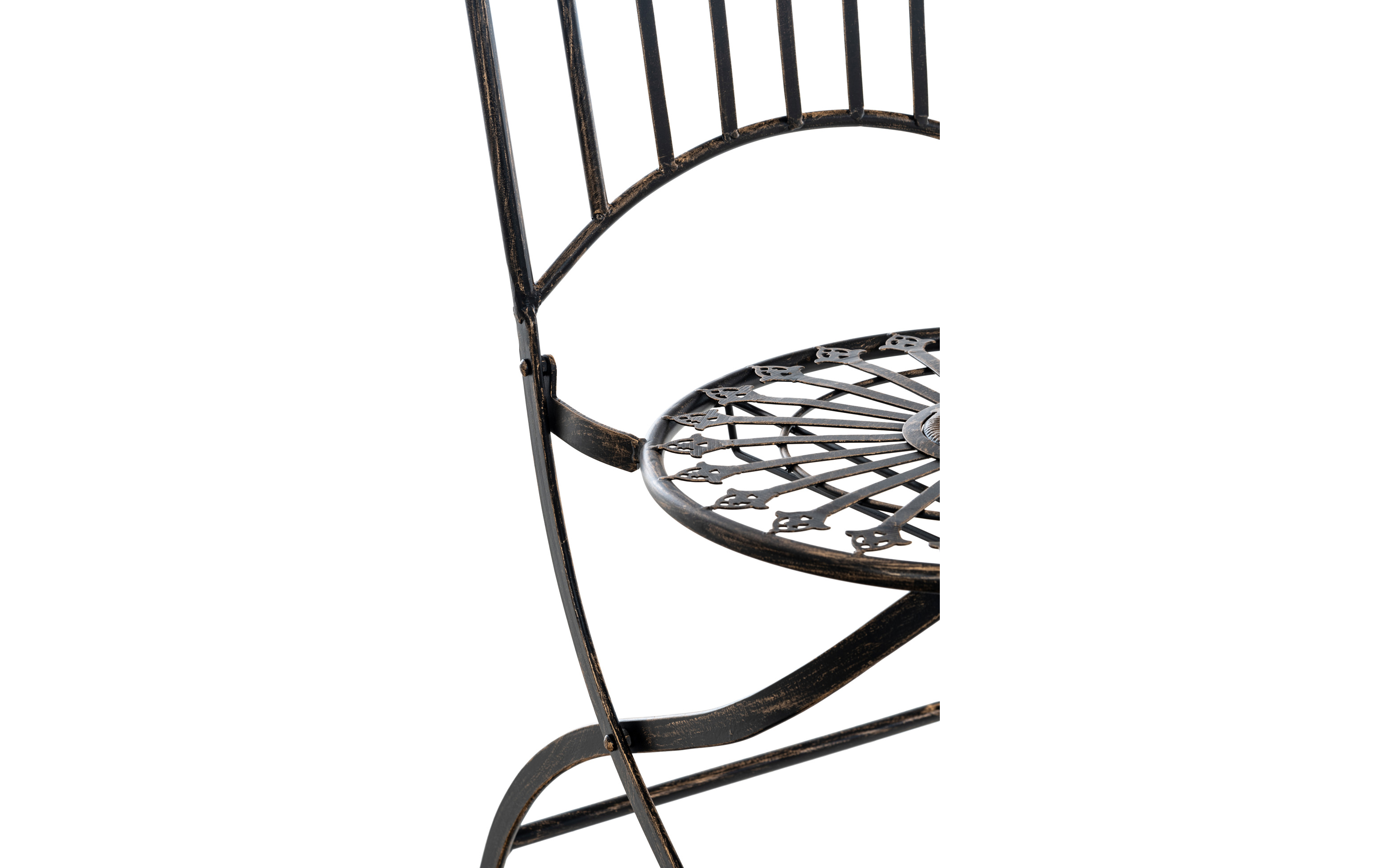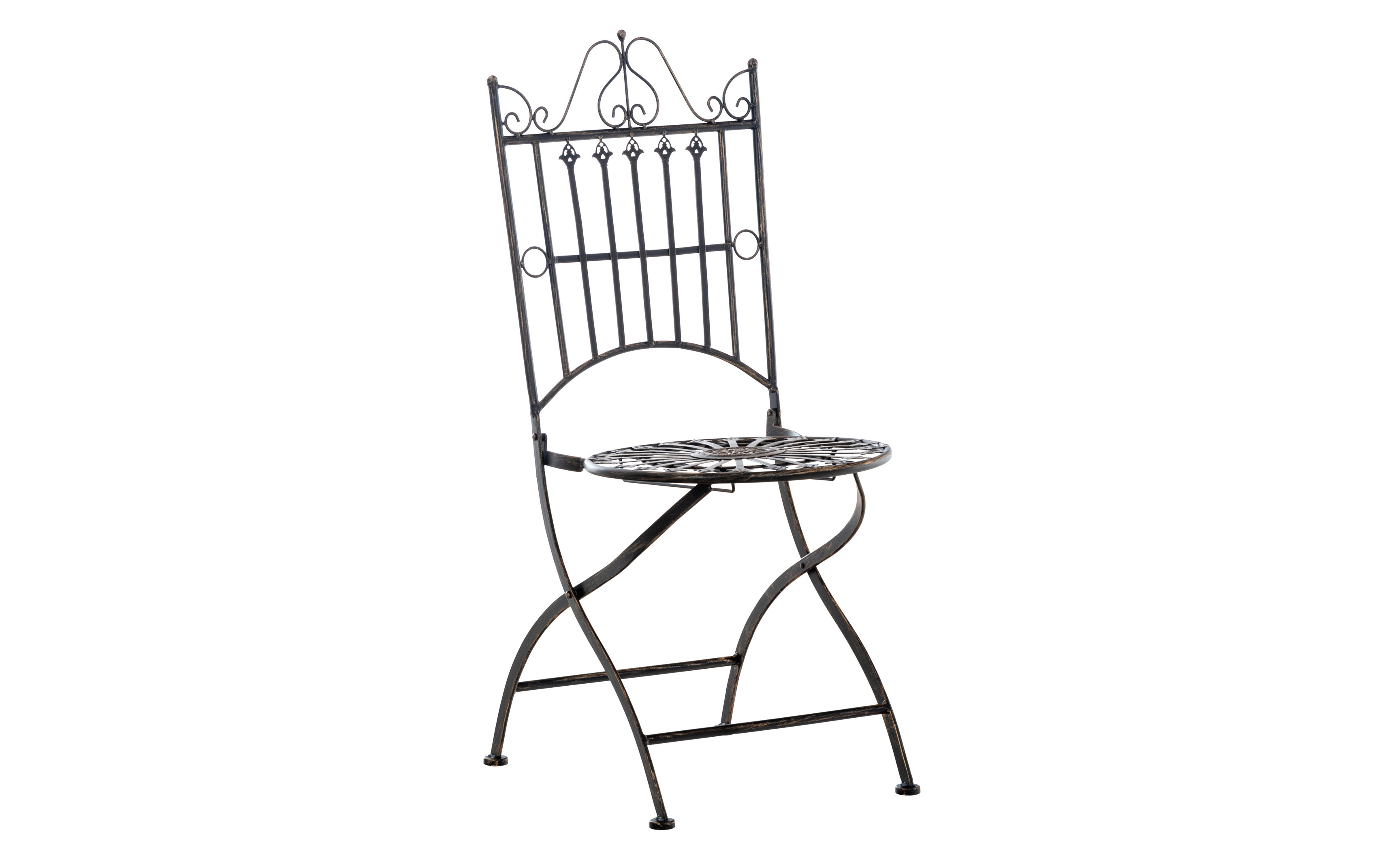 To piękne krzesło o nostalgicznym designie przyciąga wzrok i zachwyca wdzięcznym kształtem i wykończonymi detalami dekoracji. Krzesło składane idealnie nadaje się tam, gdzie ilość miejsca jest ważna. Krzesło ogrodowe zostało wykonane z żelaza, dzięki czemu jest wytrzymałe. Powierzchnia wykończona antyczną patyną. Krzesło jest szczególnie wszechstronne i elastyczne dzięki łatwej obsłudze. Gdy nie jest używane, można je złożyć i schować, aby zaoszczędzić miejsce.