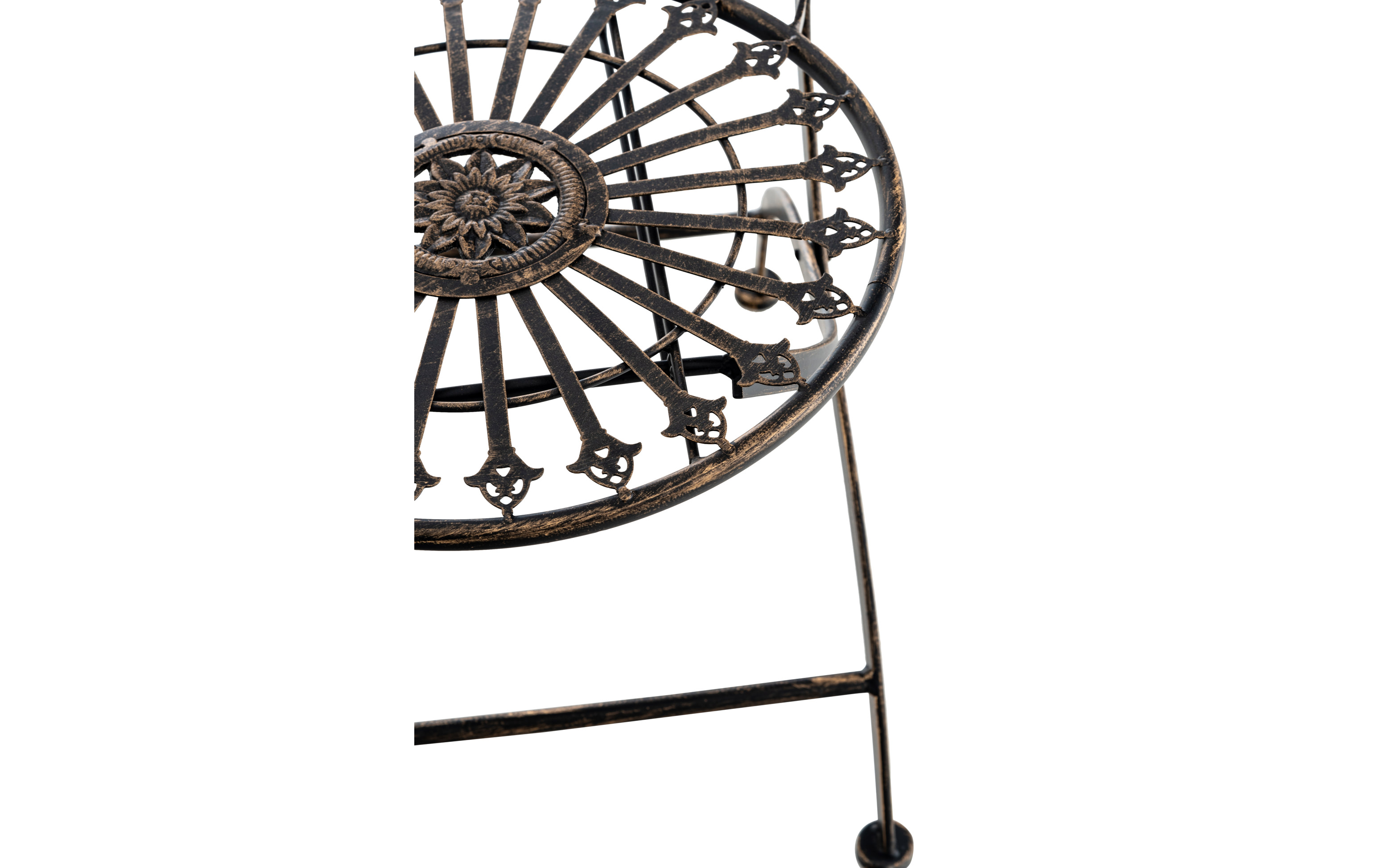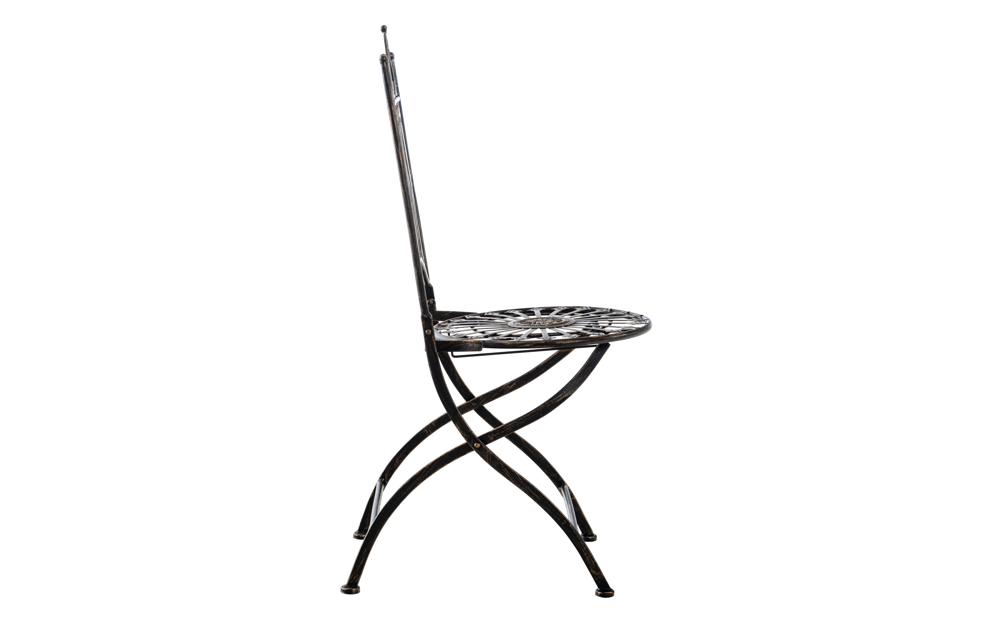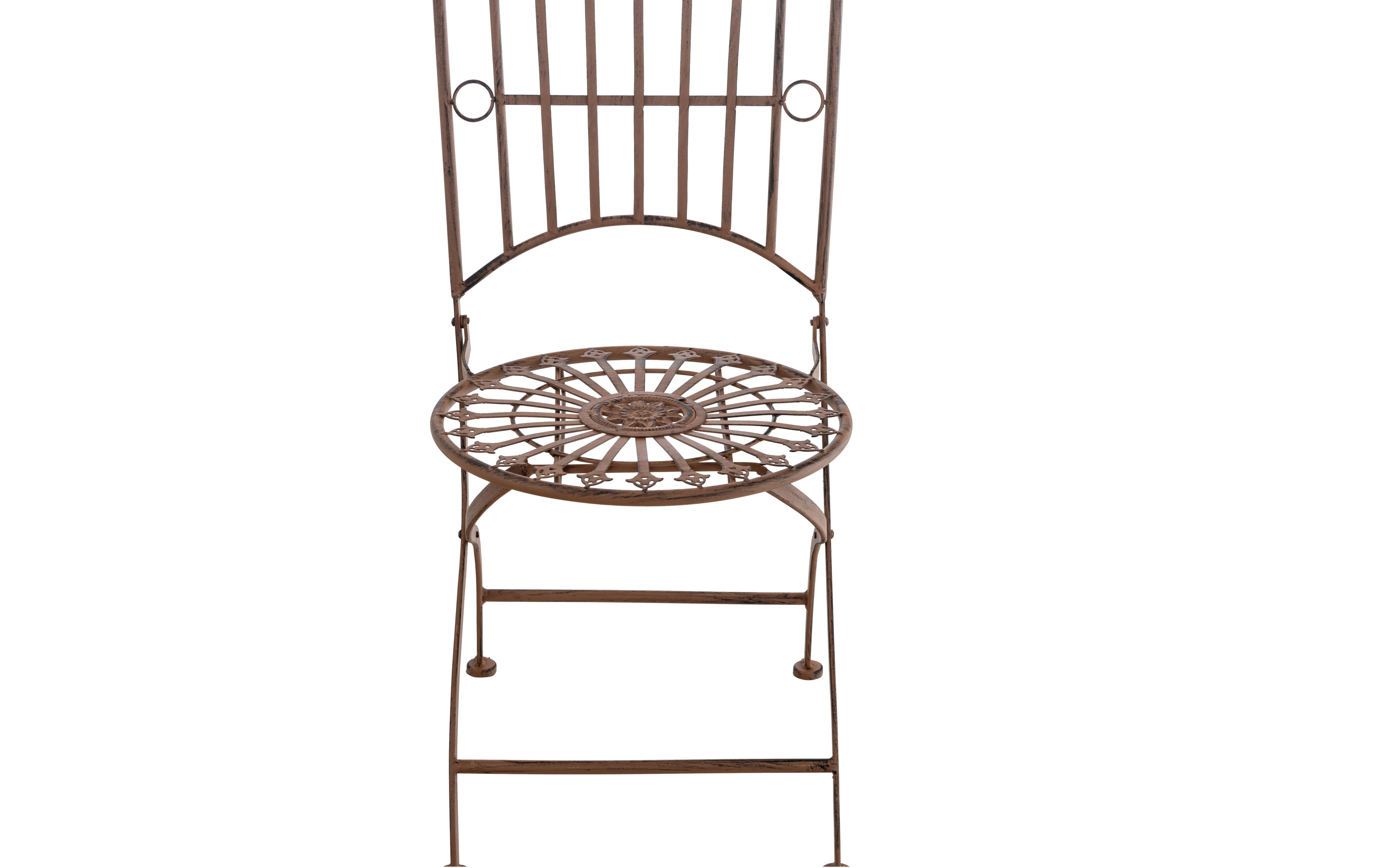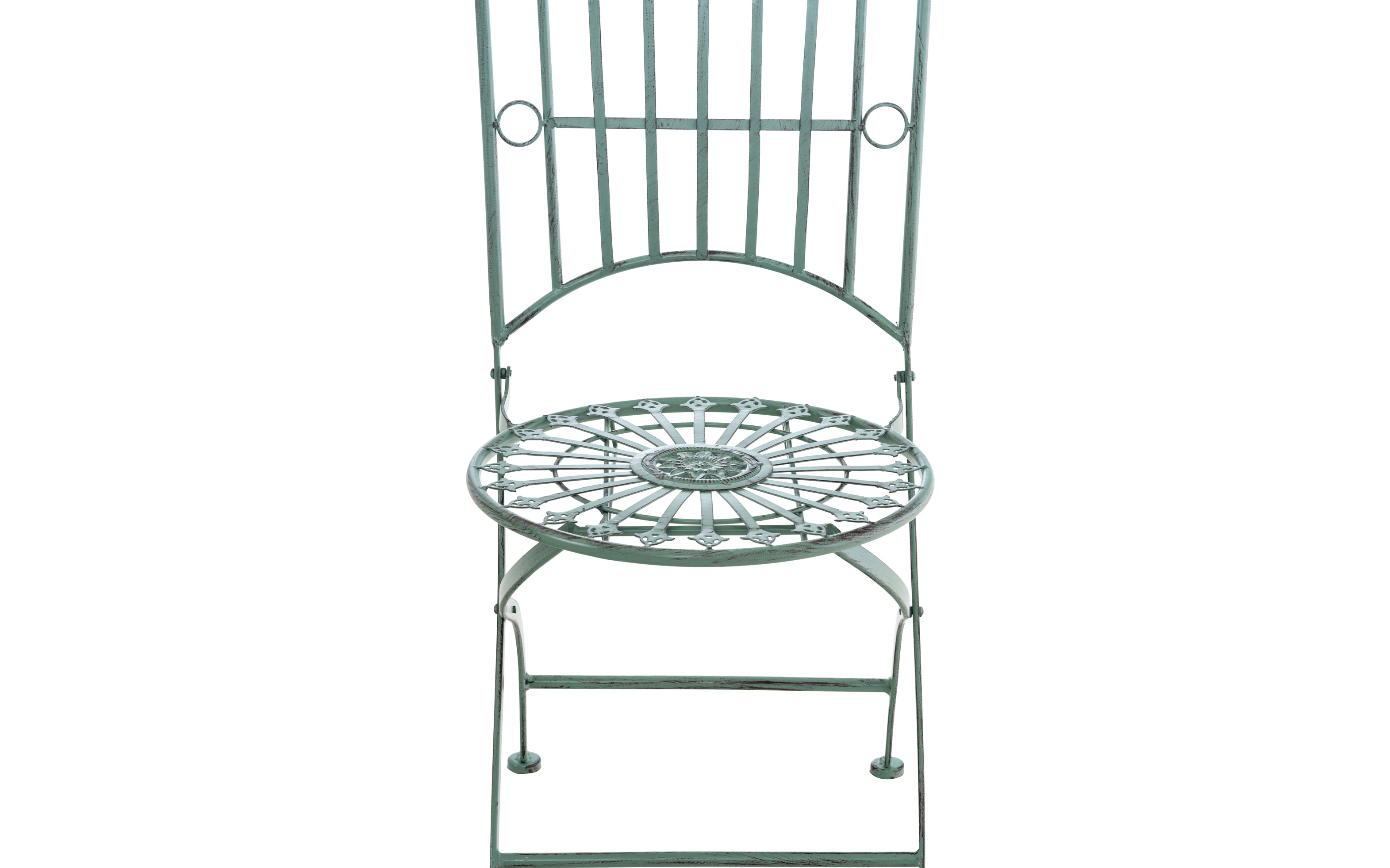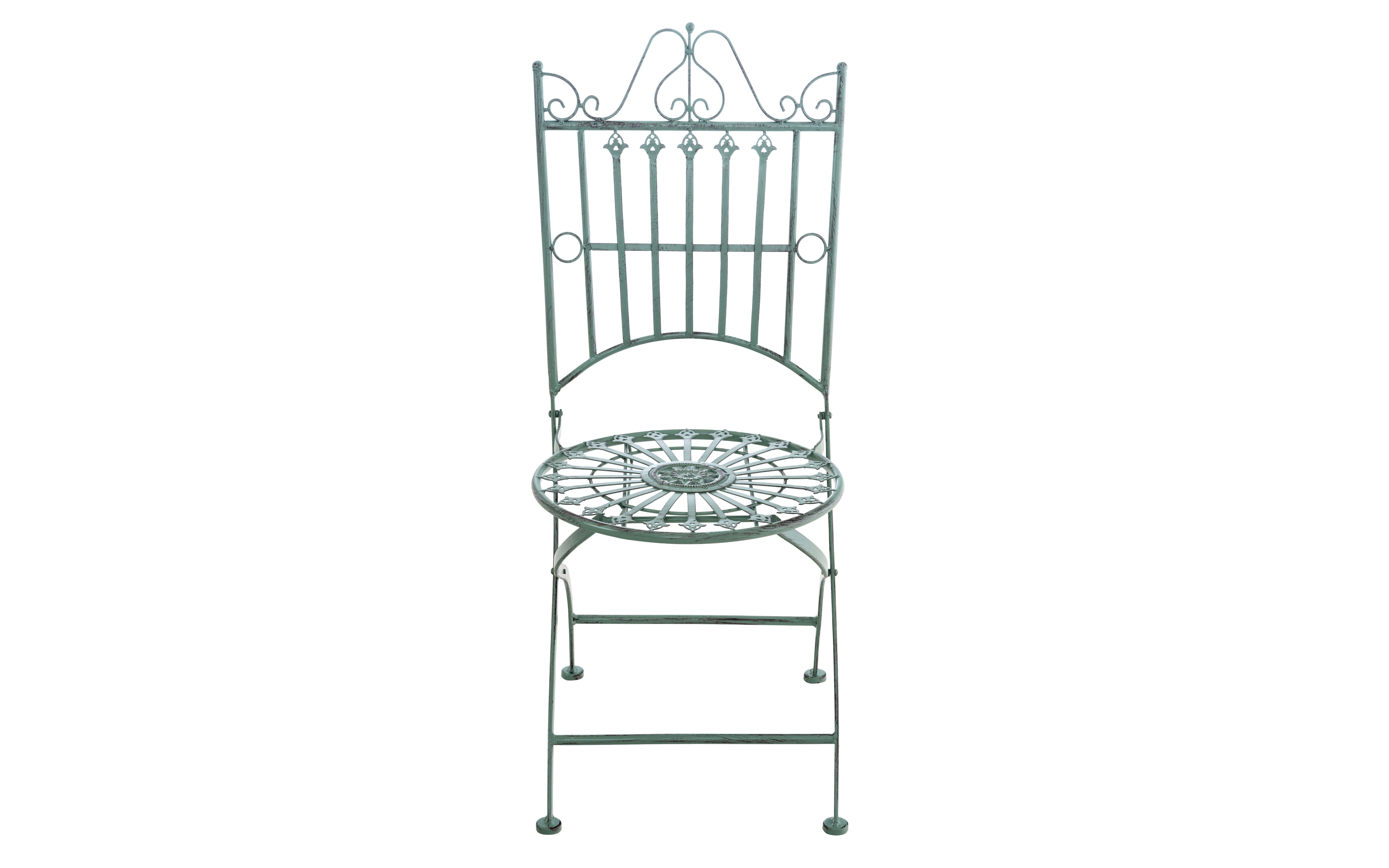 To piękne krzesło o nostalgicznym designie przyciąga wzrok i zachwyca wdzięcznym kształtem i wykończonymi detalami dekoracji. Krzesło składane idealnie nadaje się tam, gdzie ilość miejsca jest ważna. Krzesło ogrodowe zostało wykonane z żelaza, dzięki czemu jest wytrzymałe. Powierzchnia wykończona antyczną patyną. Krzesło jest szczególnie wszechstronne i elastyczne dzięki łatwej obsłudze. Gdy nie jest używane, można je złożyć i schować, aby zaoszczędzić miejsce.