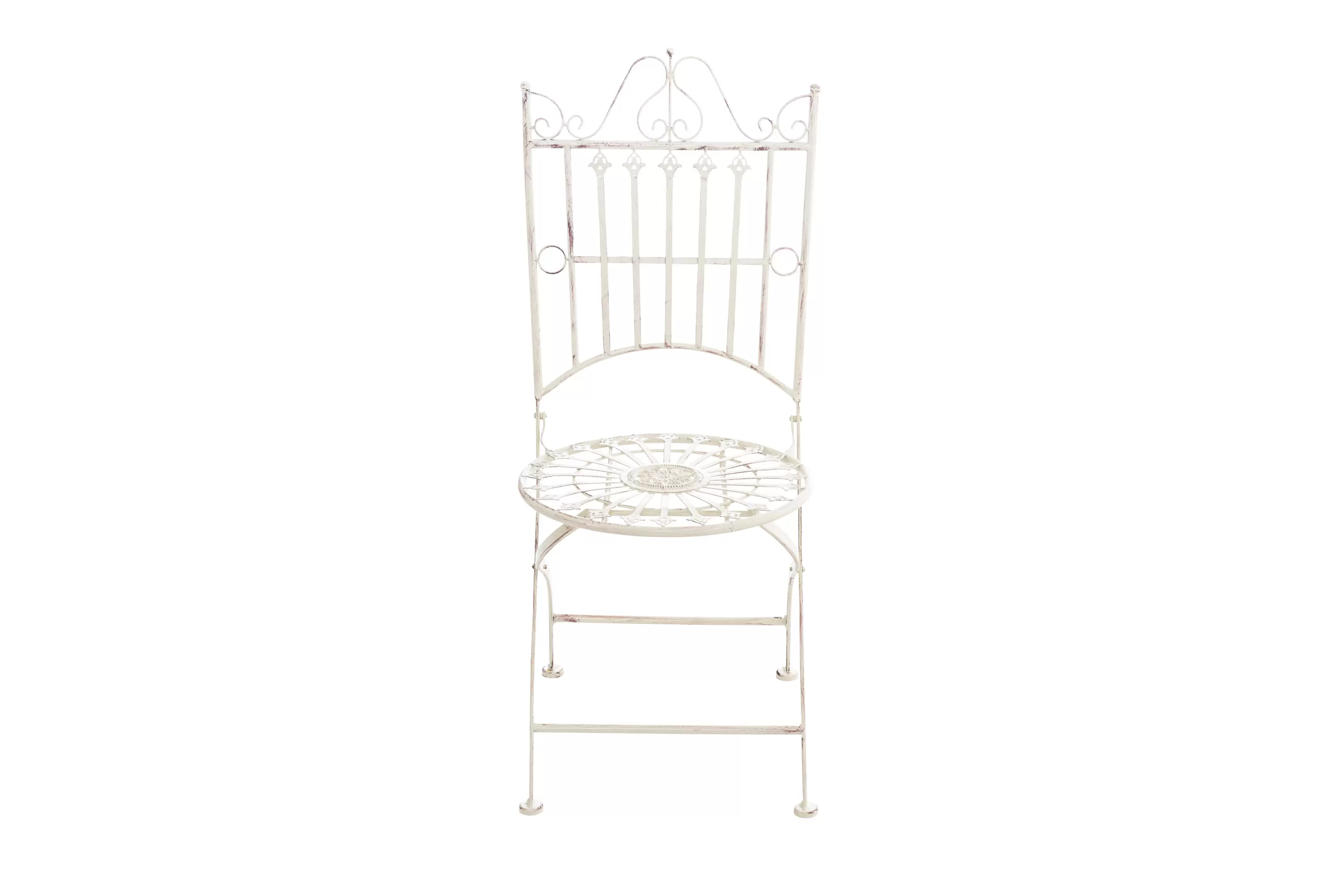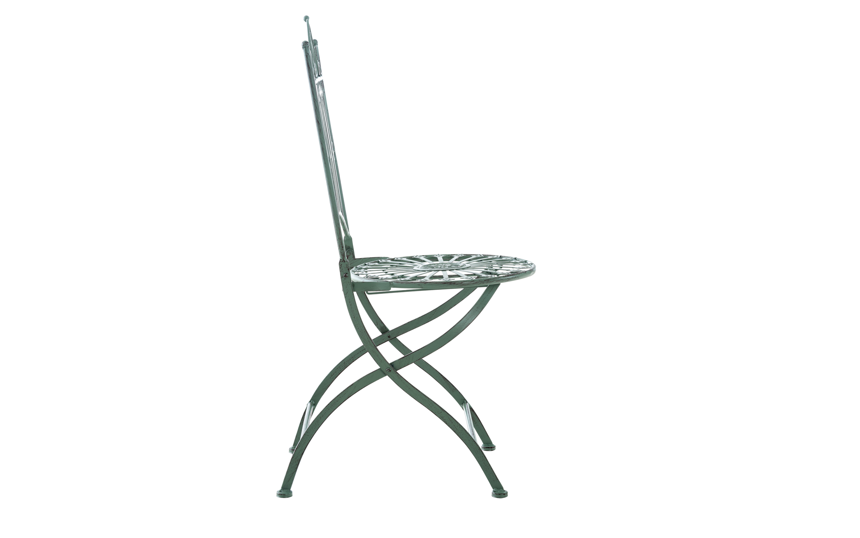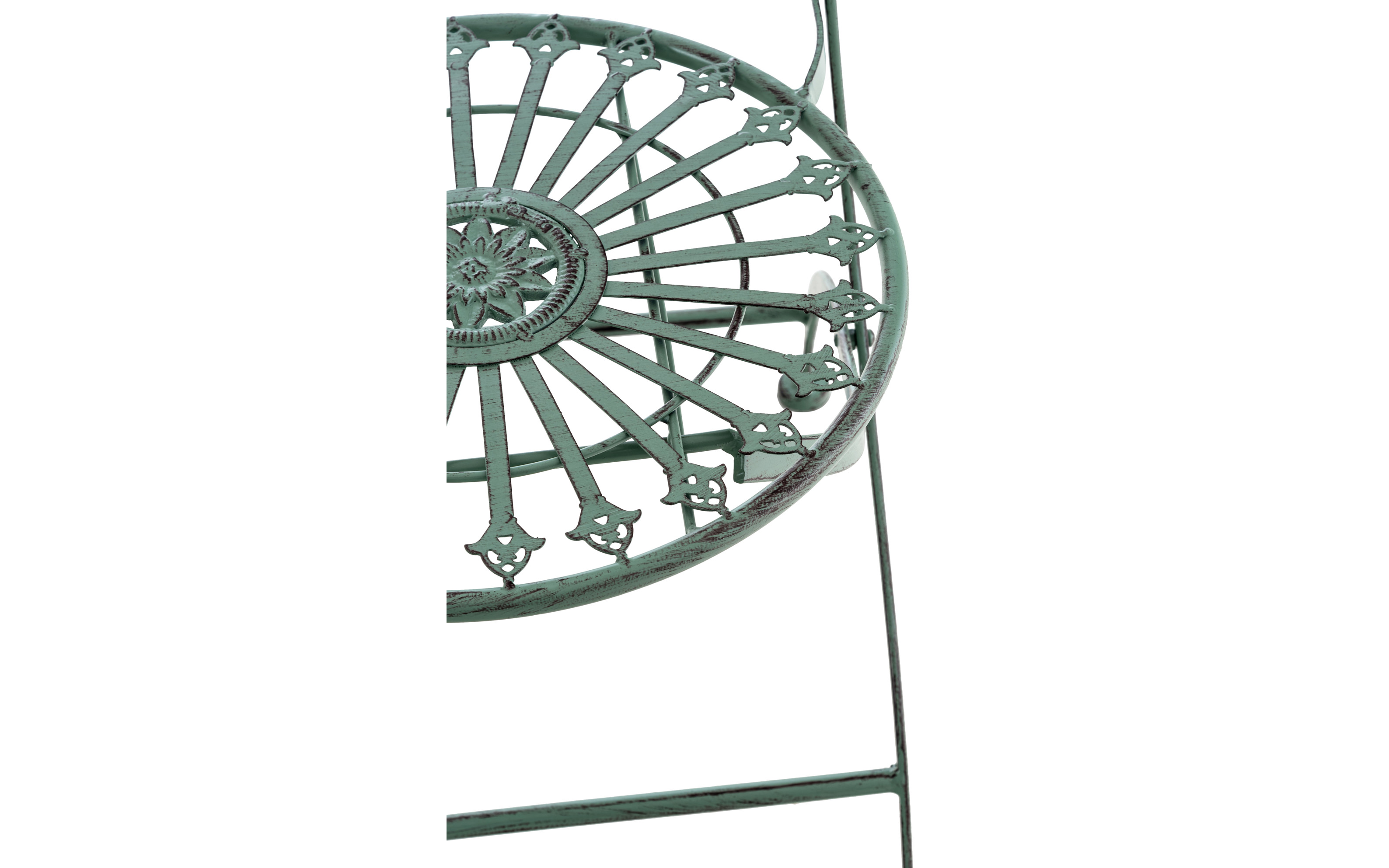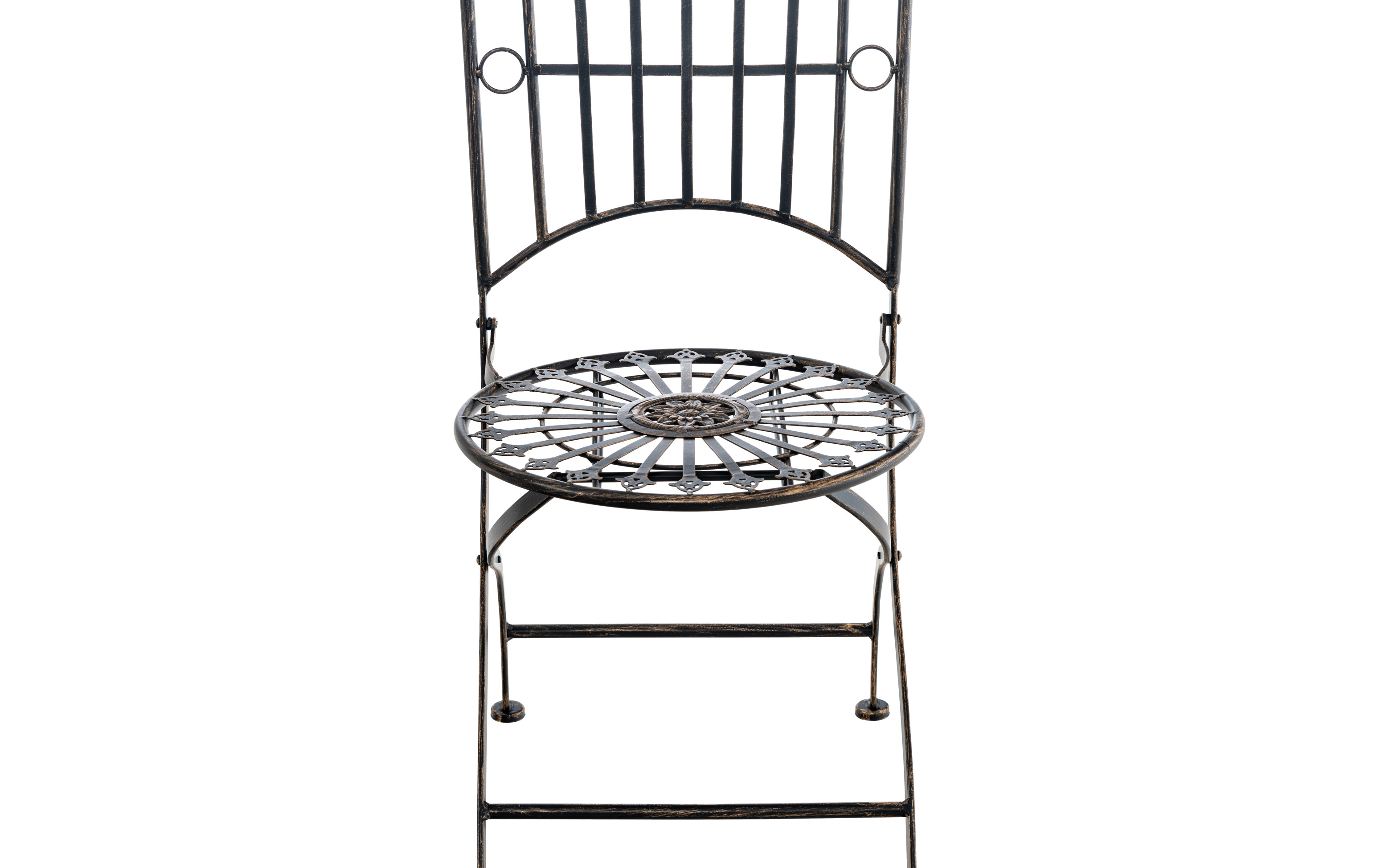 To piękne krzesło o nostalgicznym designie przyciąga wzrok i zachwyca wdzięcznym kształtem i wykończonymi detalami dekoracji. Krzesło składane idealnie nadaje się tam, gdzie ilość miejsca jest ważna. Krzesło ogrodowe zostało wykonane z żelaza, dzięki czemu jest wytrzymałe. Powierzchnia wykończona antyczną patyną. Krzesło jest szczególnie wszechstronne i elastyczne dzięki łatwej obsłudze. Gdy nie jest używane, można je złożyć i schować, aby zaoszczędzić miejsce.