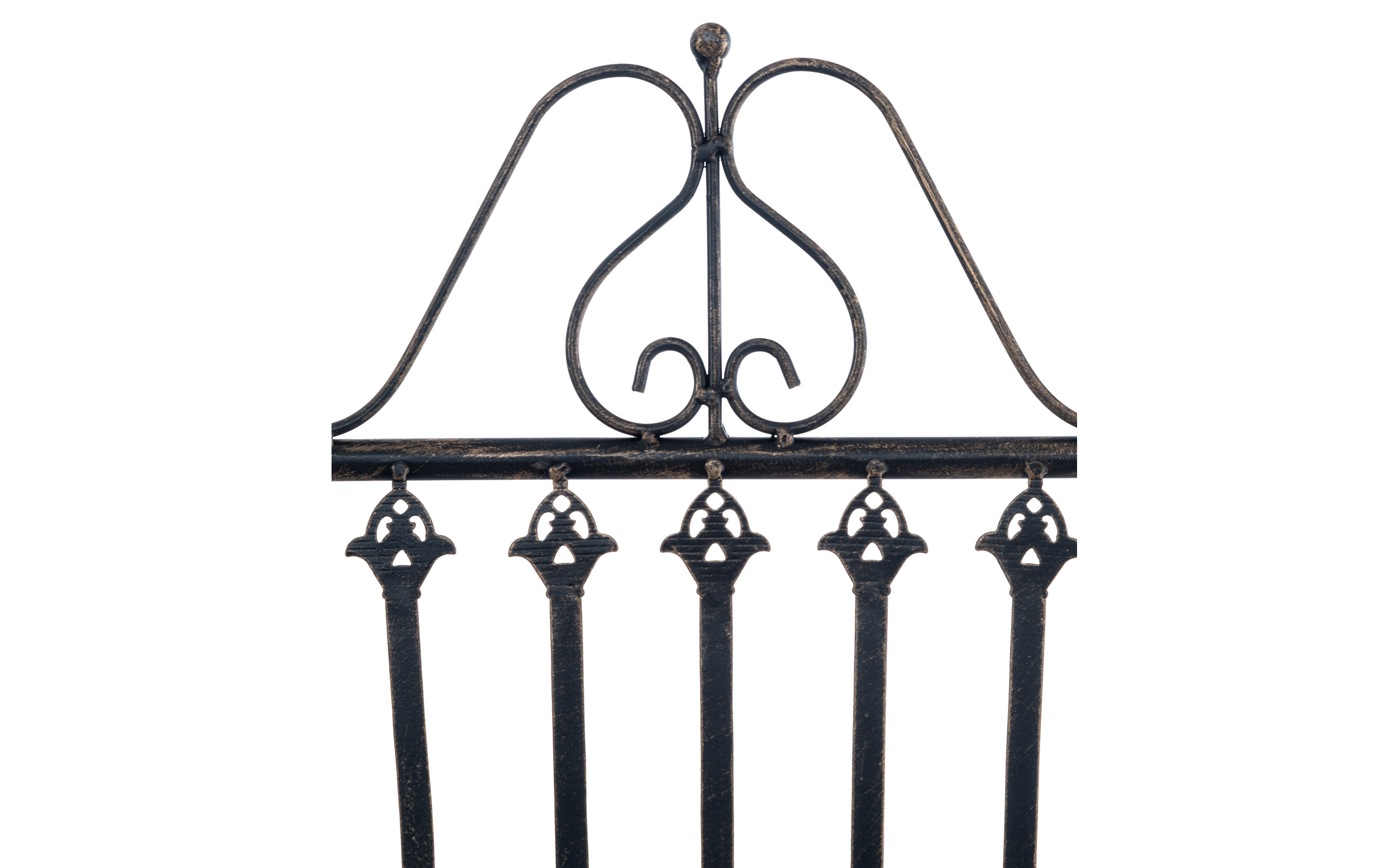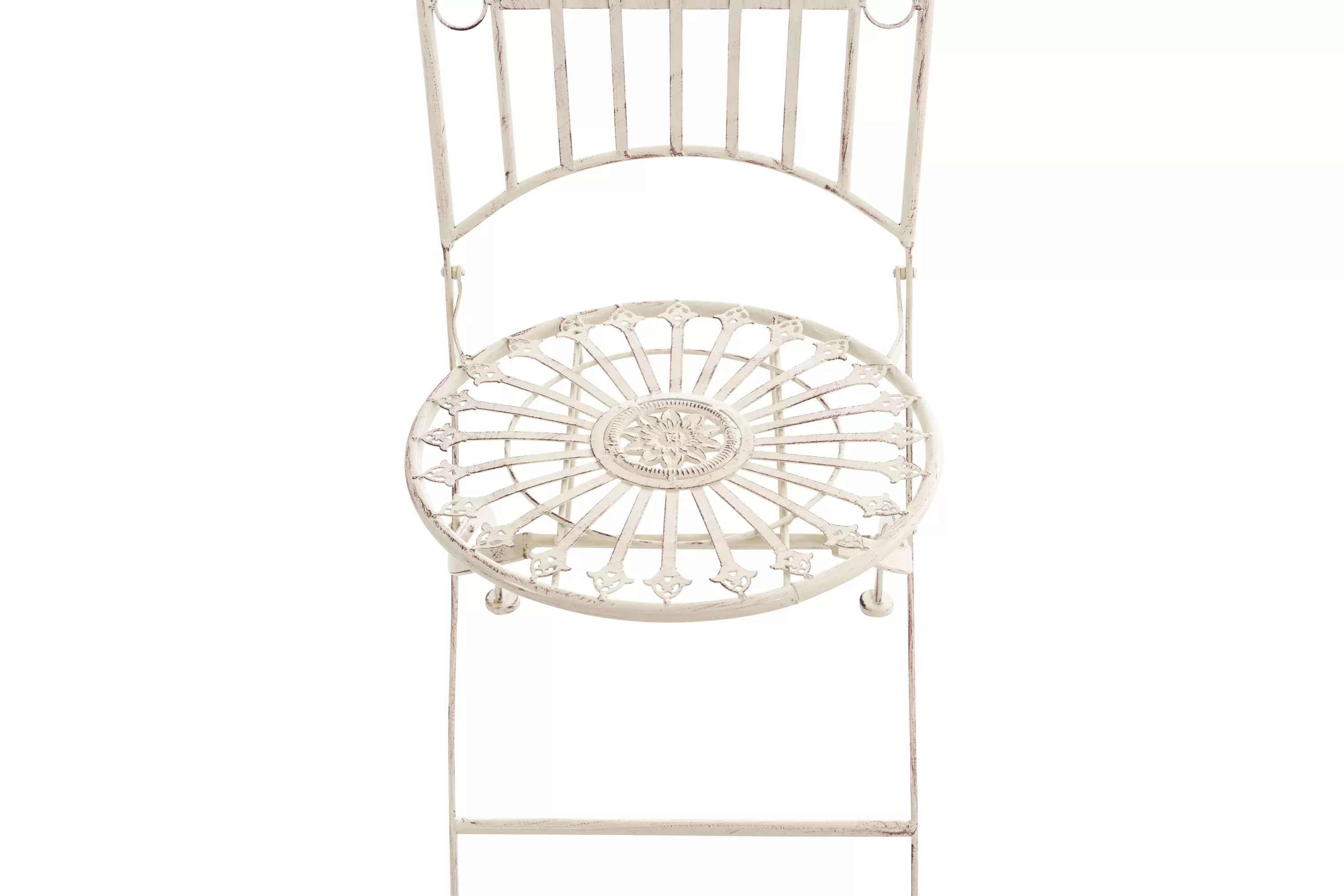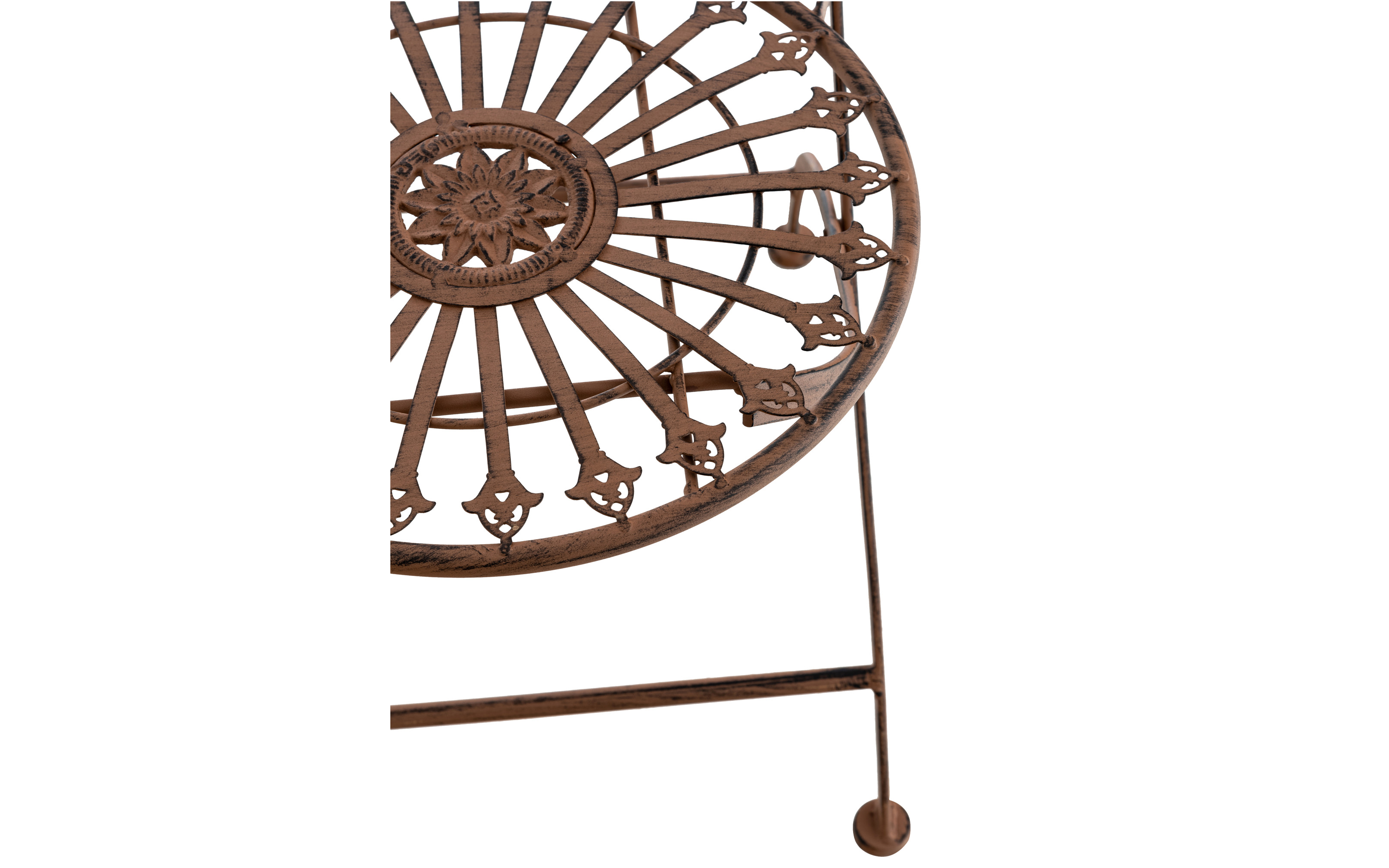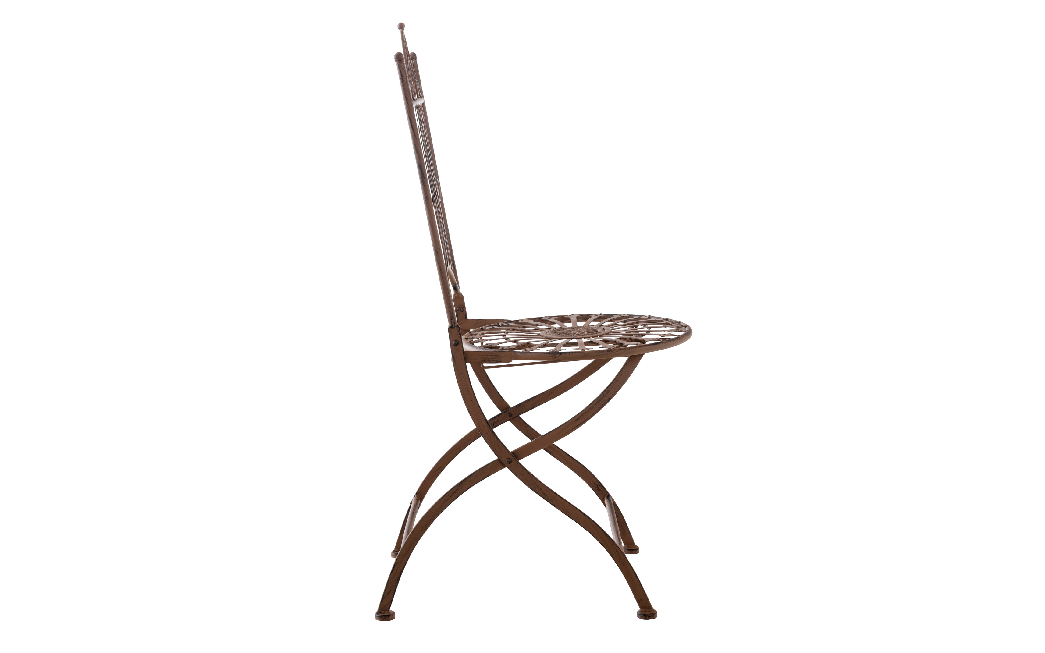 To piękne krzesło o nostalgicznym designie przyciąga wzrok i zachwyca wdzięcznym kształtem i wykończonymi detalami dekoracji. Krzesło składane idealnie nadaje się tam, gdzie ilość miejsca jest ważna. Krzesło ogrodowe zostało wykonane z żelaza, dzięki czemu jest wytrzymałe. Powierzchnia wykończona antyczną patyną. Krzesło jest szczególnie wszechstronne i elastyczne dzięki łatwej obsłudze. Gdy nie jest używane, można je złożyć i schować, aby zaoszczędzić miejsce.