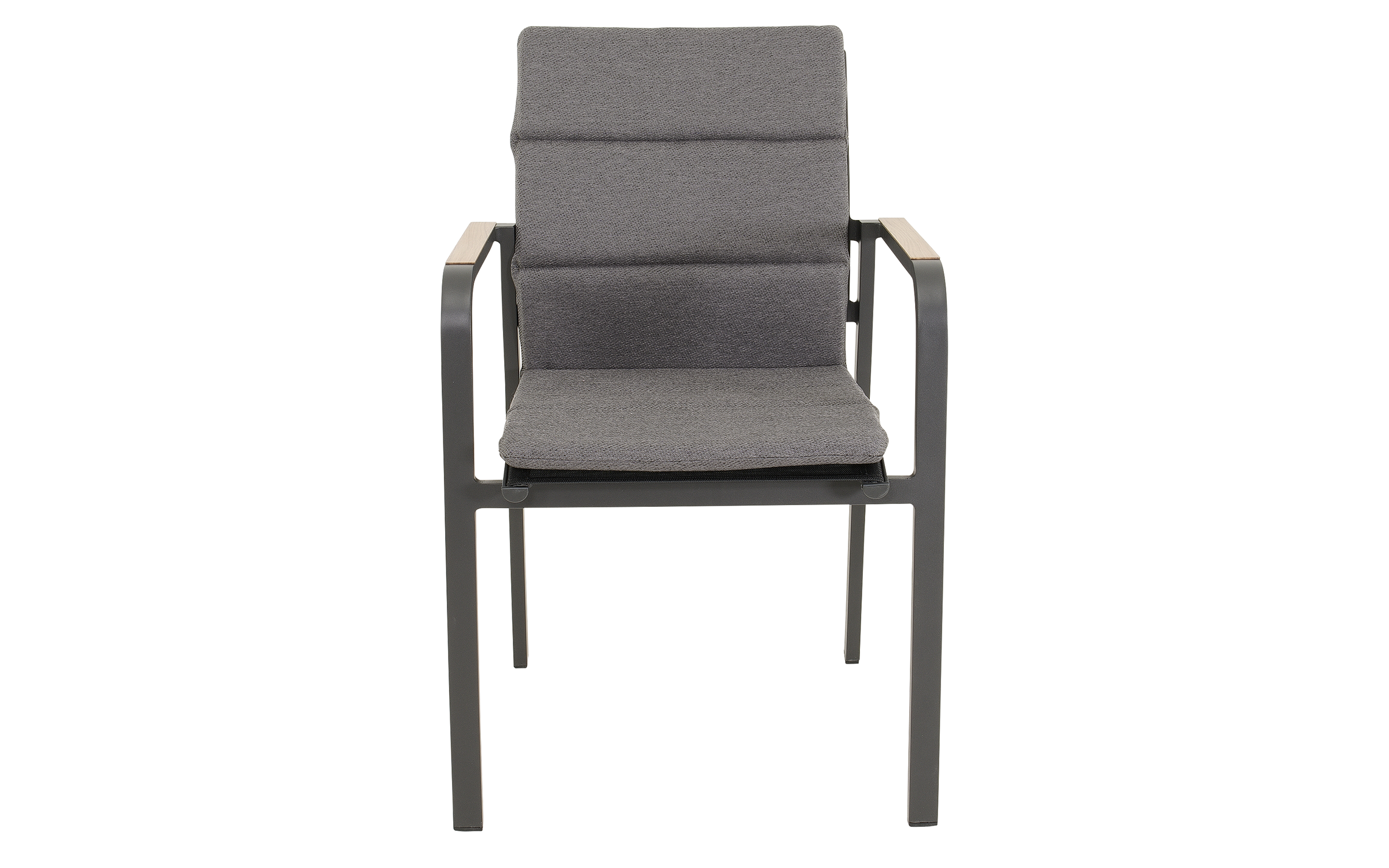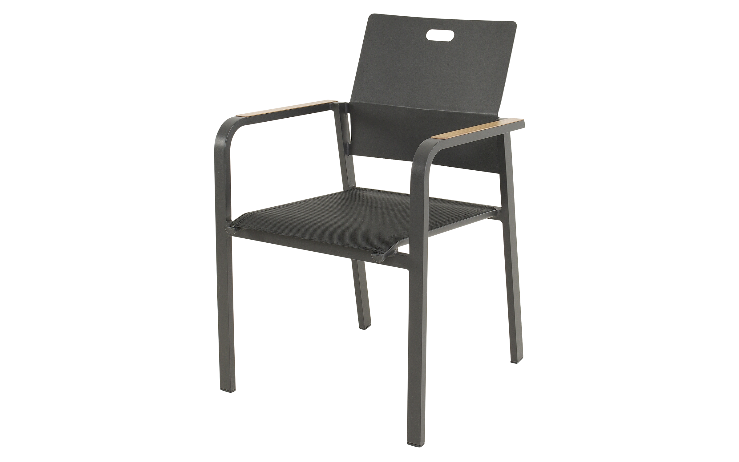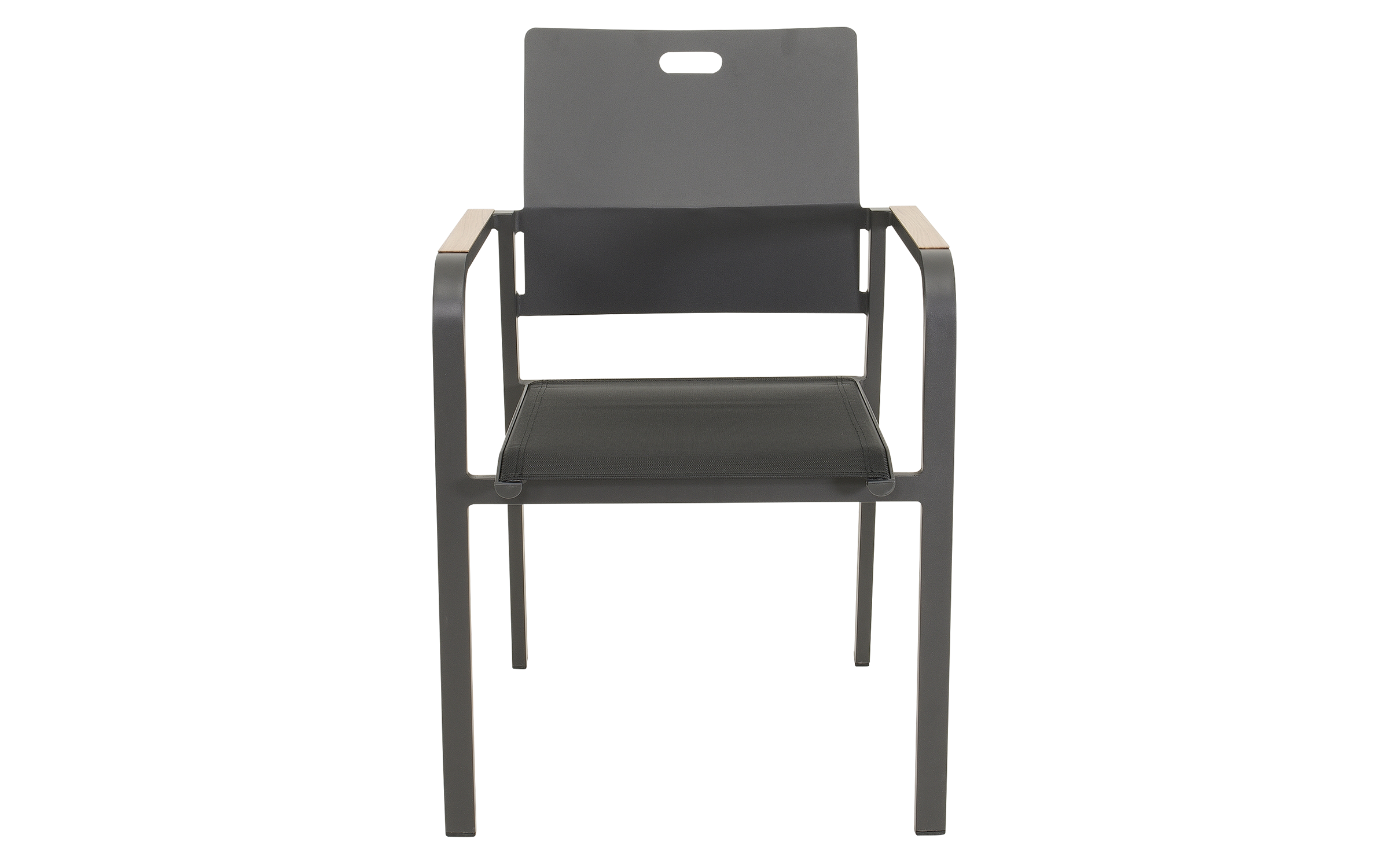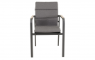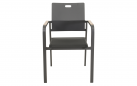 SORAPA to nowoczesne krzesło ogrodowe sztaplowane, które łączy nowoczesny wygląd z wysoką funkcjonalnością. Rama wykonana z aluminium malowanego proszkowo w kolorze matowego antracytu jest lekka, a jednocześnie bardzo wytrzymała. Podłokietniki w wykończeniu woodlook nadają krzesłu ciepły charakter, imitując naturalne drewno.