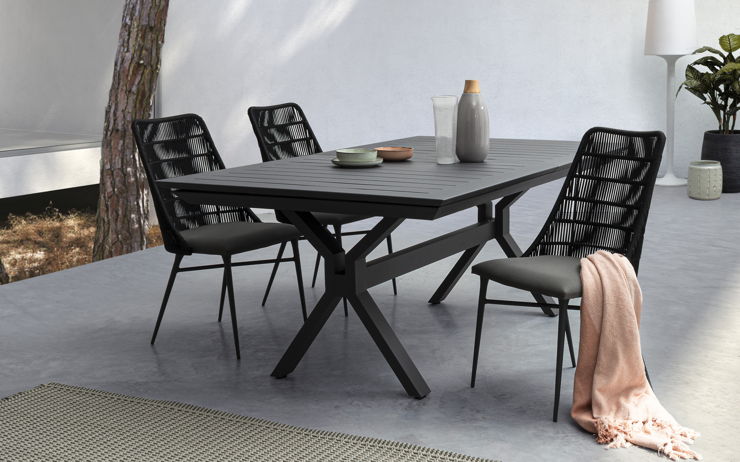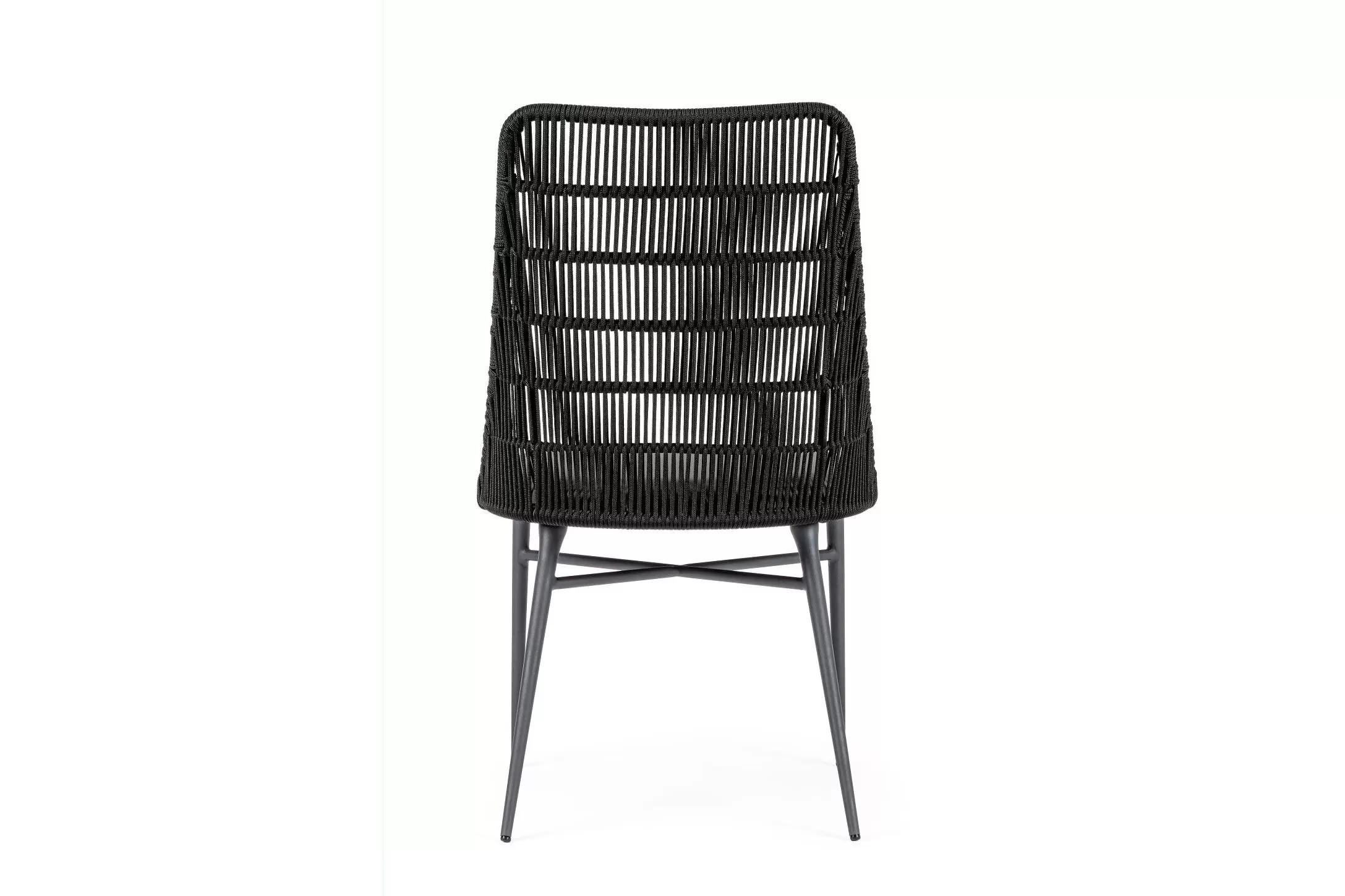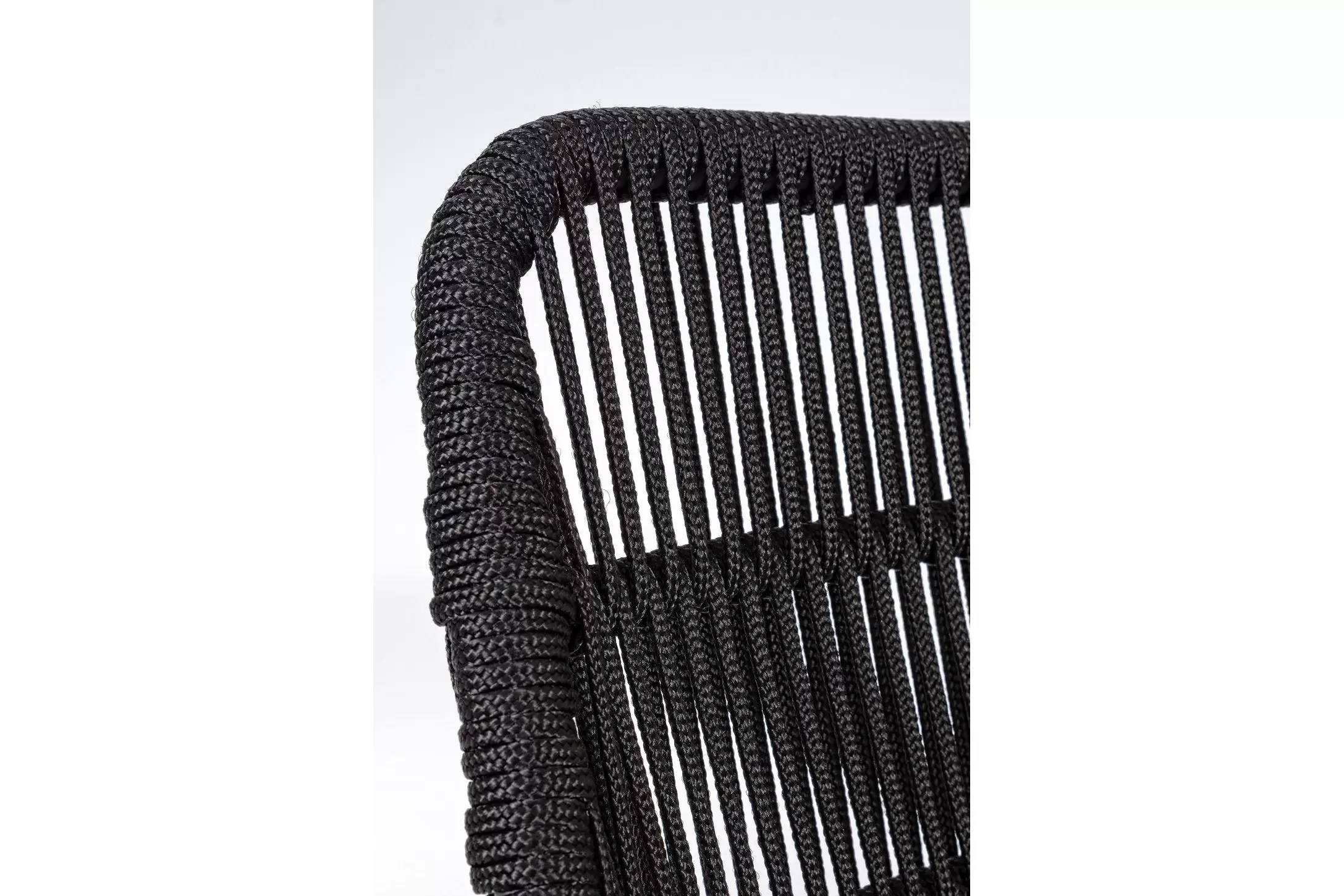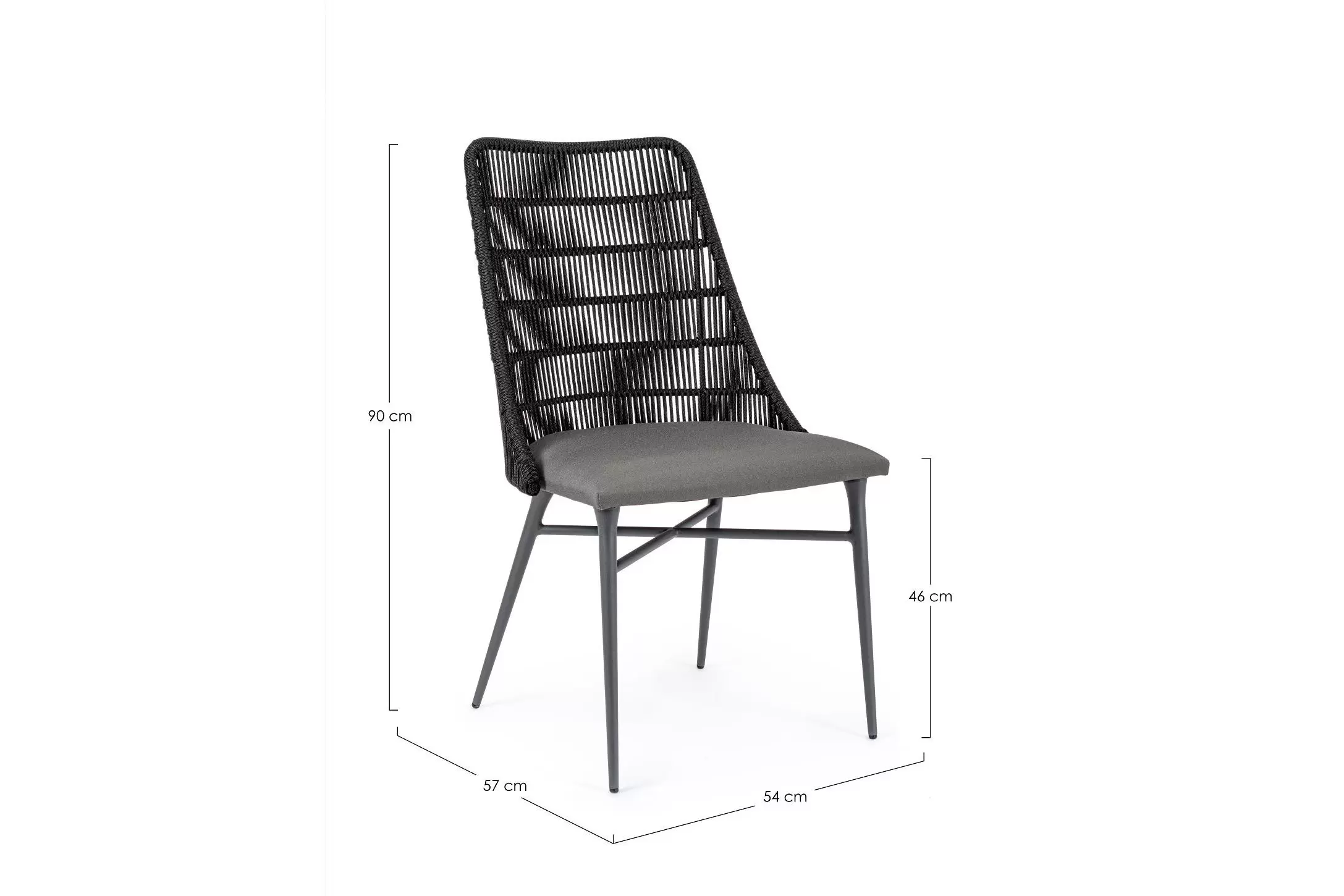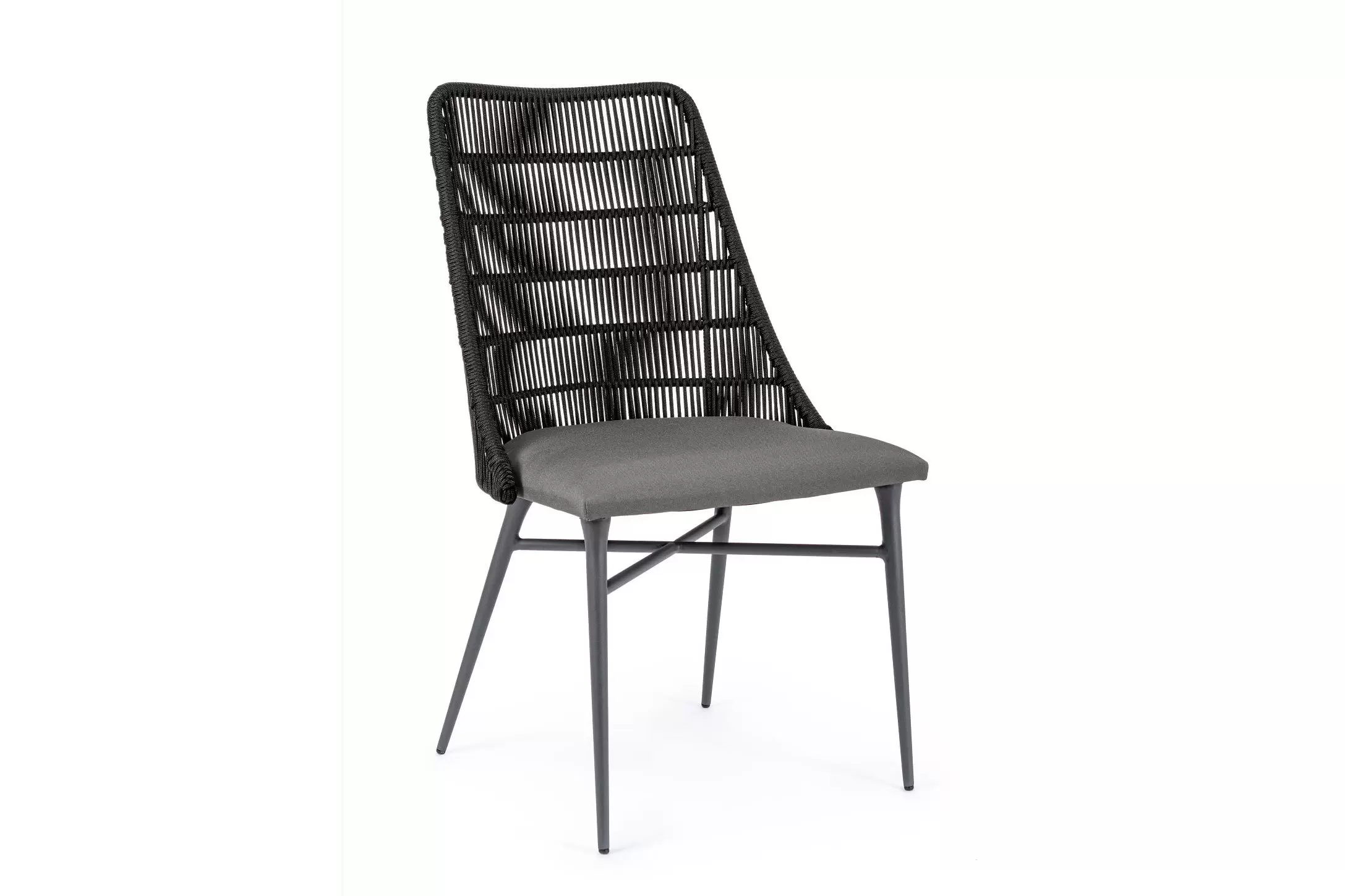 Nowoczesne krzesło do jadalni tarasowej. Kombinacja liny polipropylenowej i aluminium. Poduszka