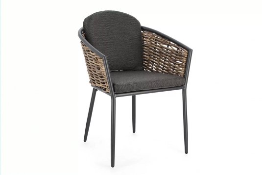 2x krzesło stołowe do ogrodowej jadalni / stal nierdzewna kolor ciemny brąz / lina polipropylenowa i poszewki z materiału Bounce