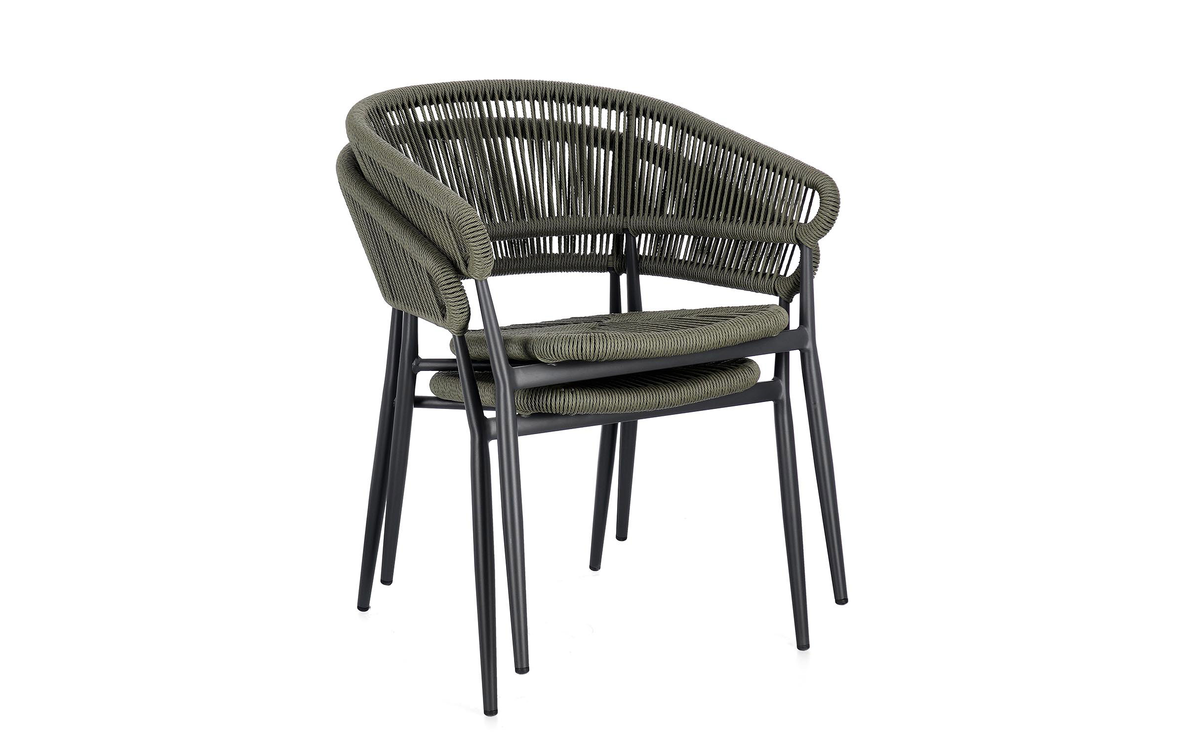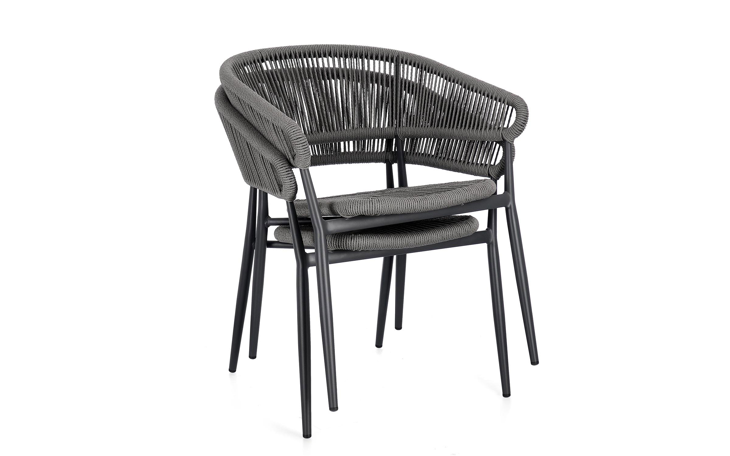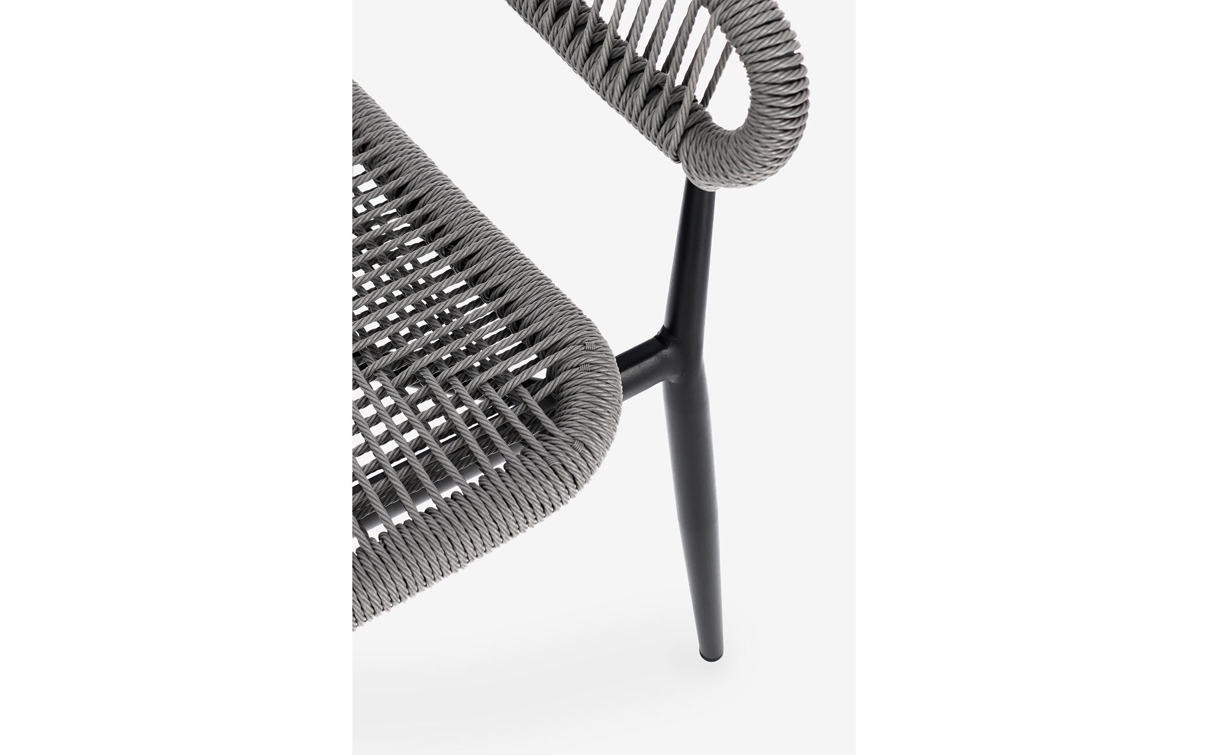 Lekka konstrukcja aluminiowa z oplotem ze skręcanych włókien technorattanowych zapewnia odpowiednią sprężystość i wygodę siedzenia.