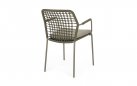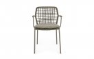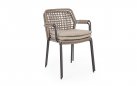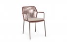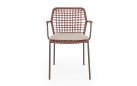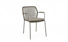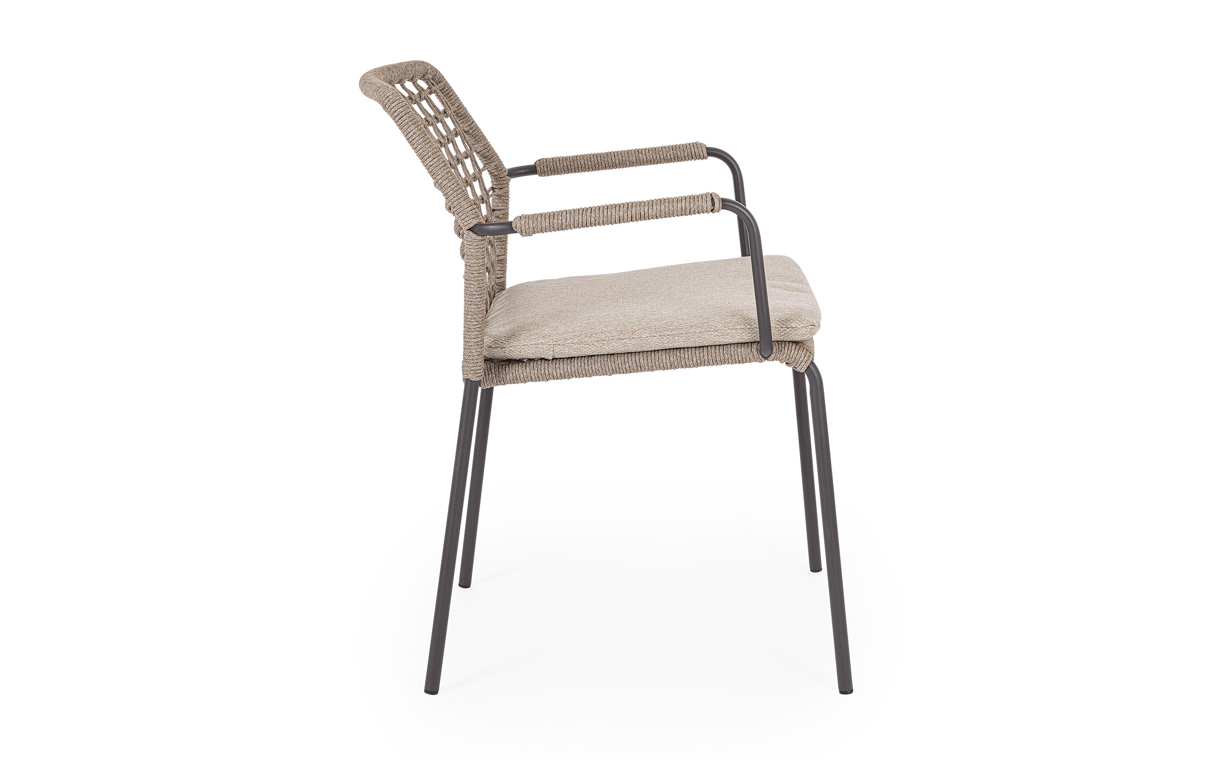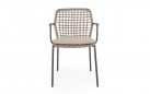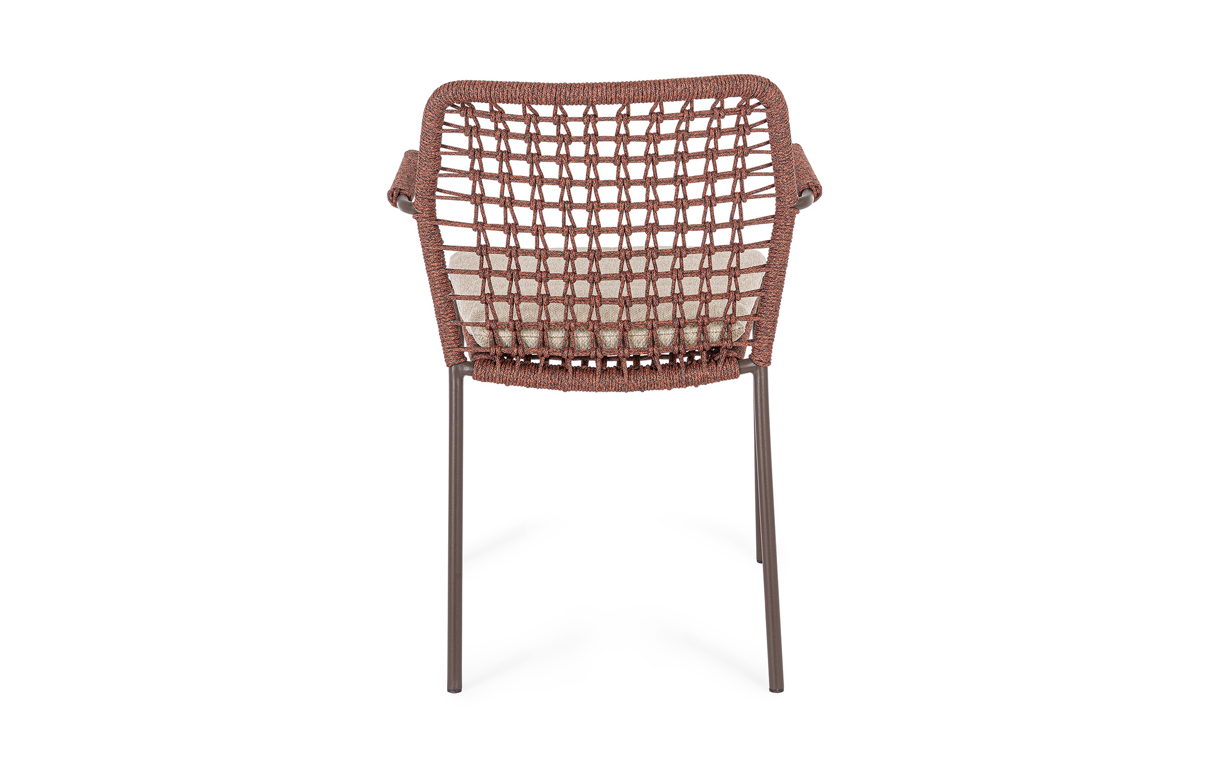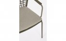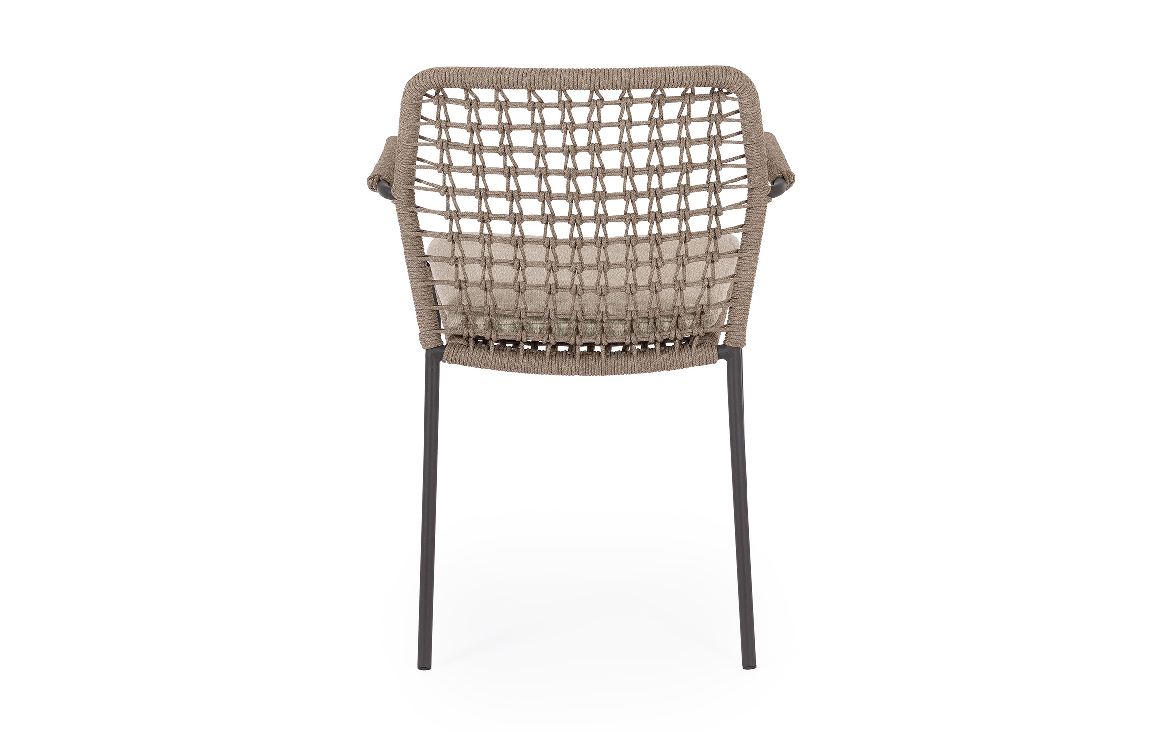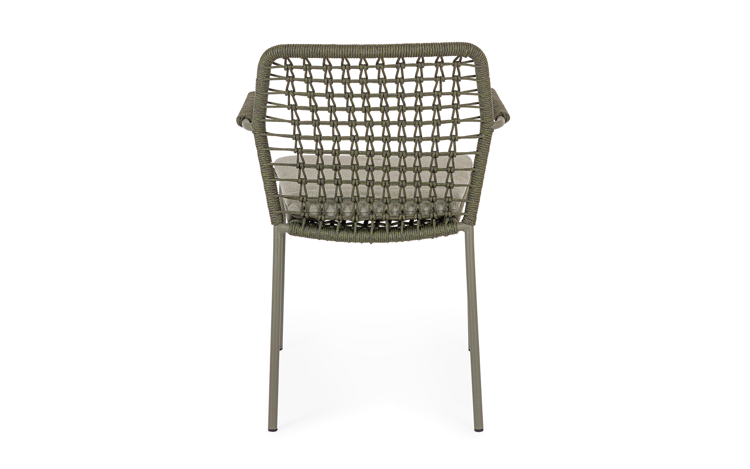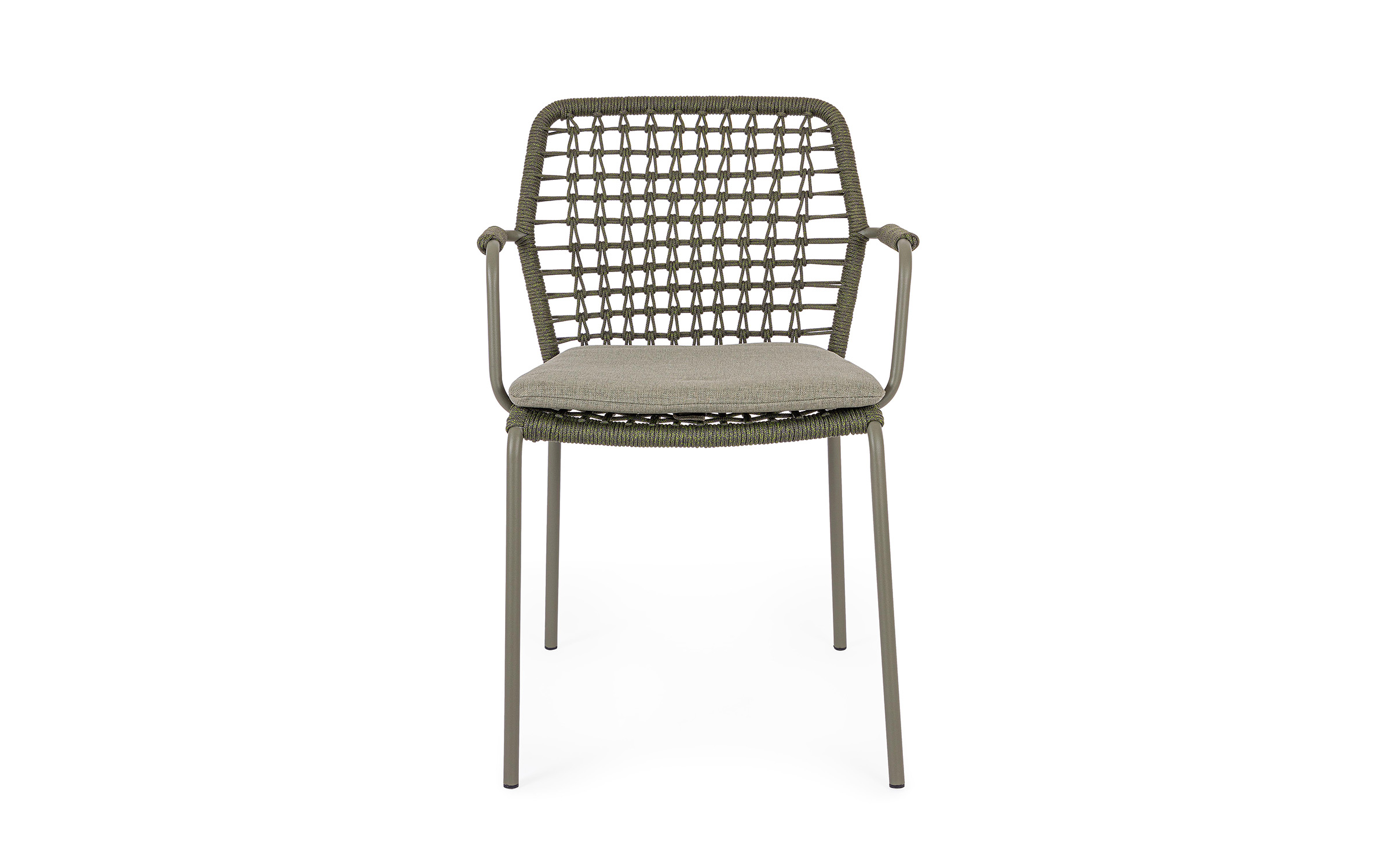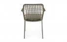 Krzesło ogrodowe o stabilnej konstrukcji ze stali nierdzewnej pokrytej farbą proszkową. Siedzisko i oparcie z plecionką ze sznurka poliporpylenowego.