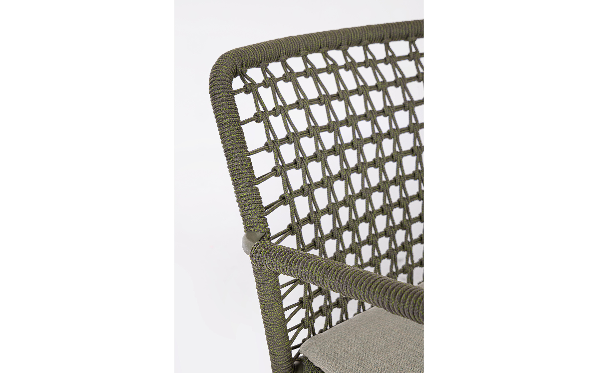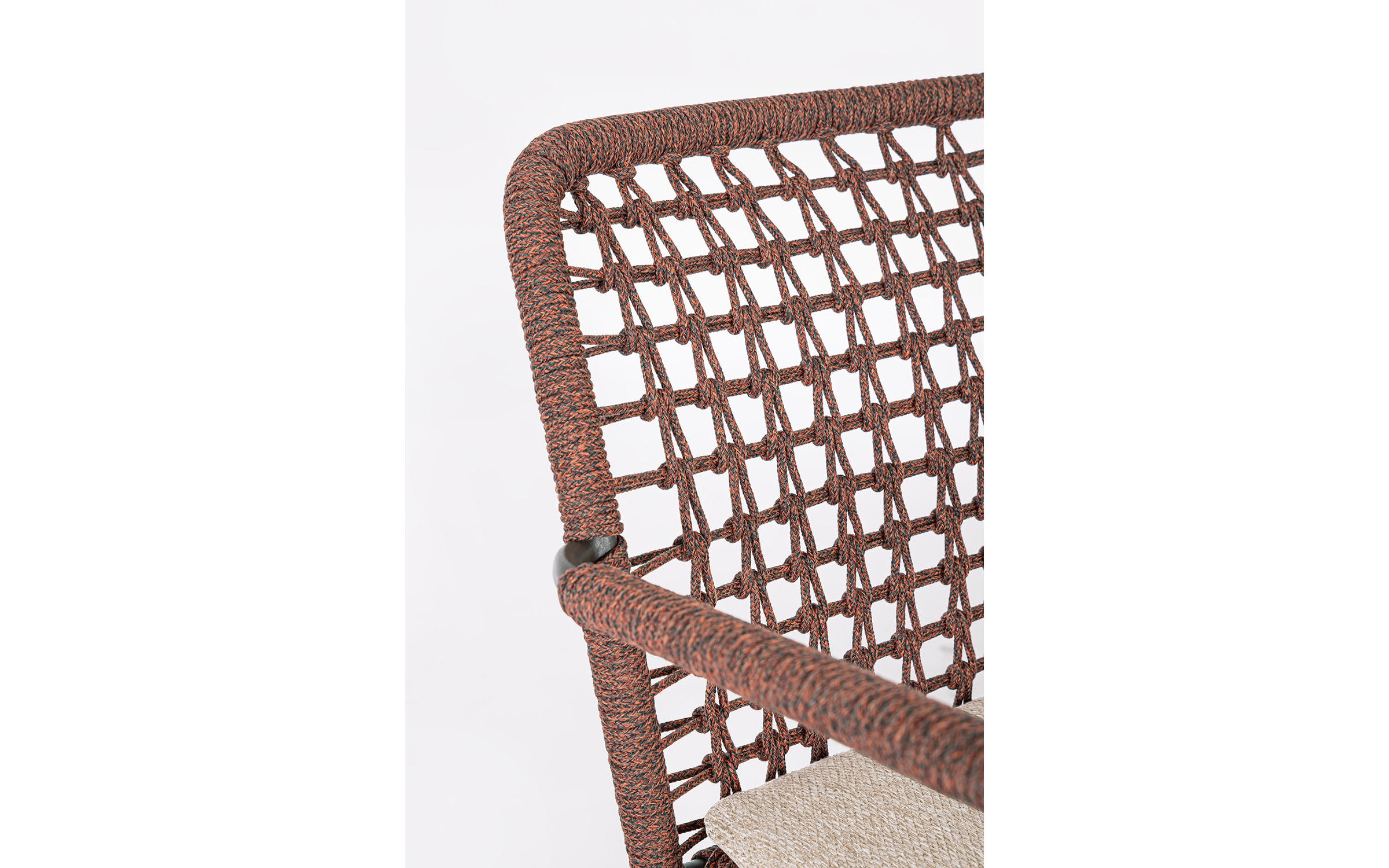 Siedzisko i oparcie oplecione liną polipropylenową, wodoodporną i odporną na uv.