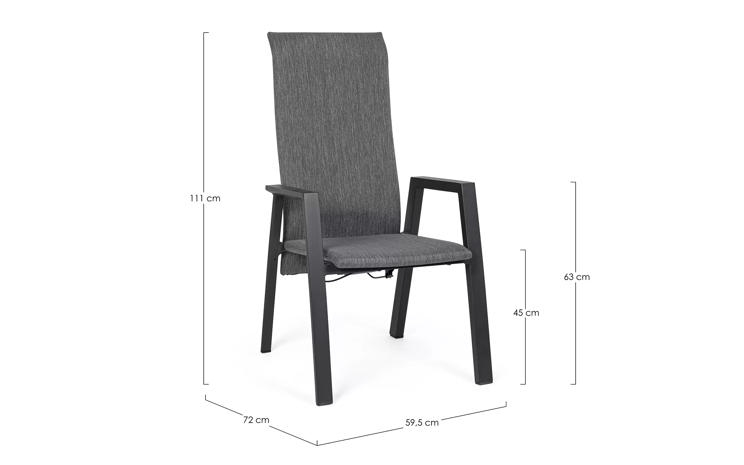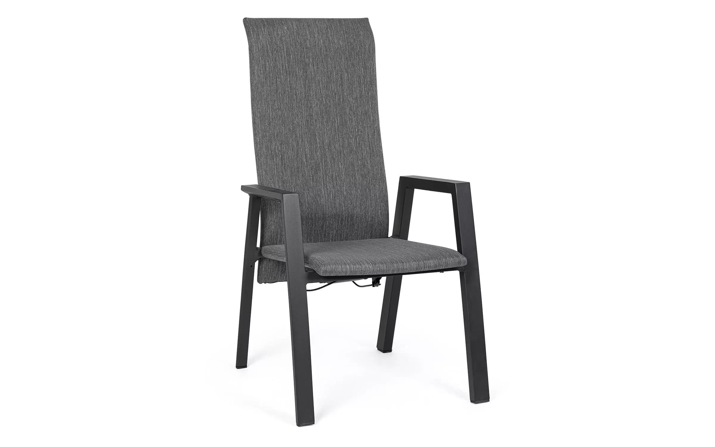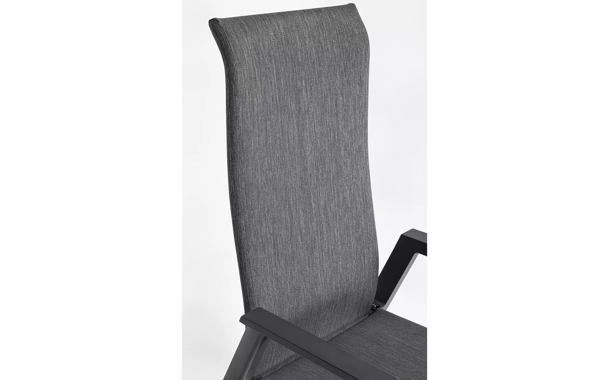 Siedzenie posiada wysokie oparcie i płynnie regulowane pochylenia oparcia za pomocą siłownika gazowego uruchamianego za pomocą przycisku w podłokietniku fotela.