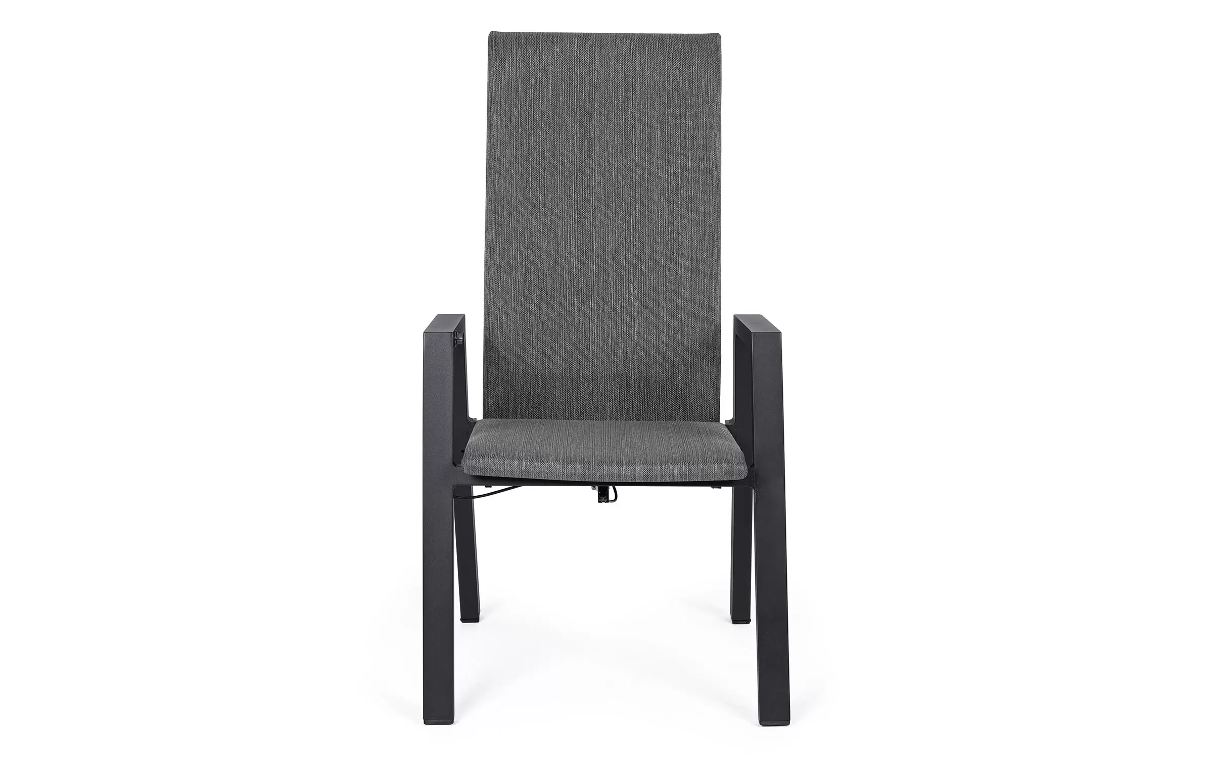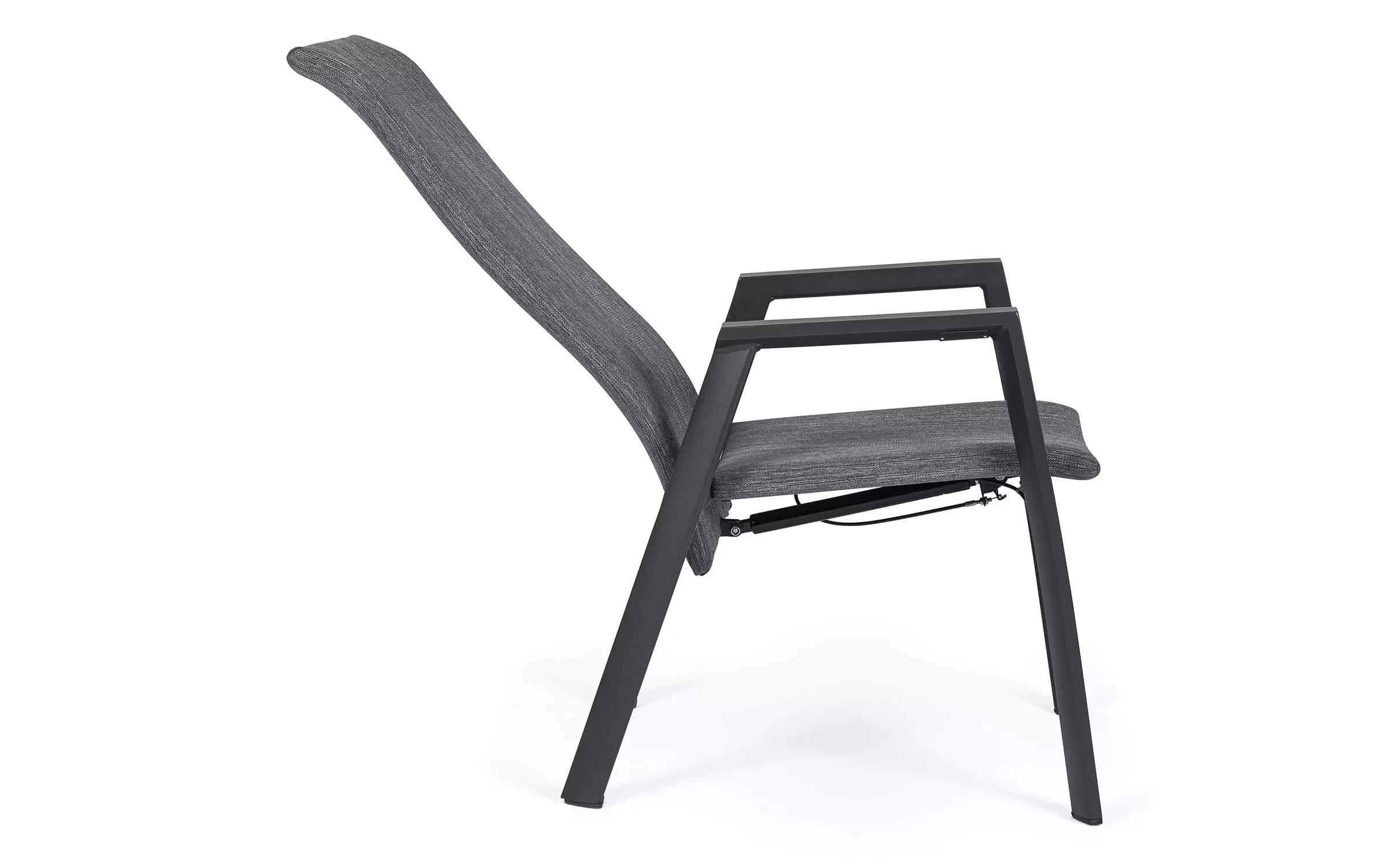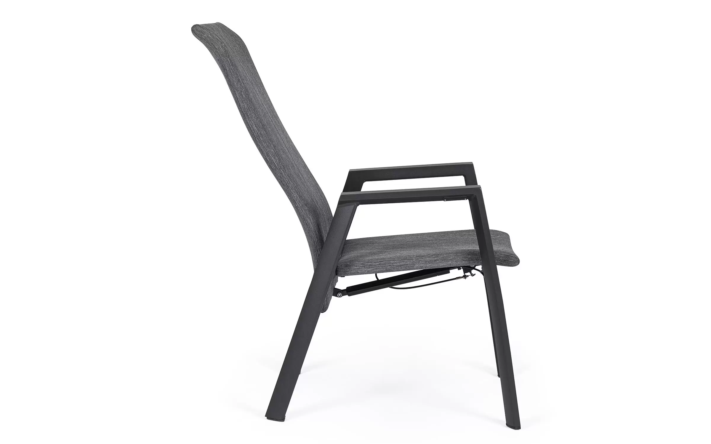 Siedzenie posiada wysokie oparcie i płynnie regulowane pochylenia oparcia za pomocą siłownika gazowego uruchamianego za pomocą przycisku w podłokietniku fotela.