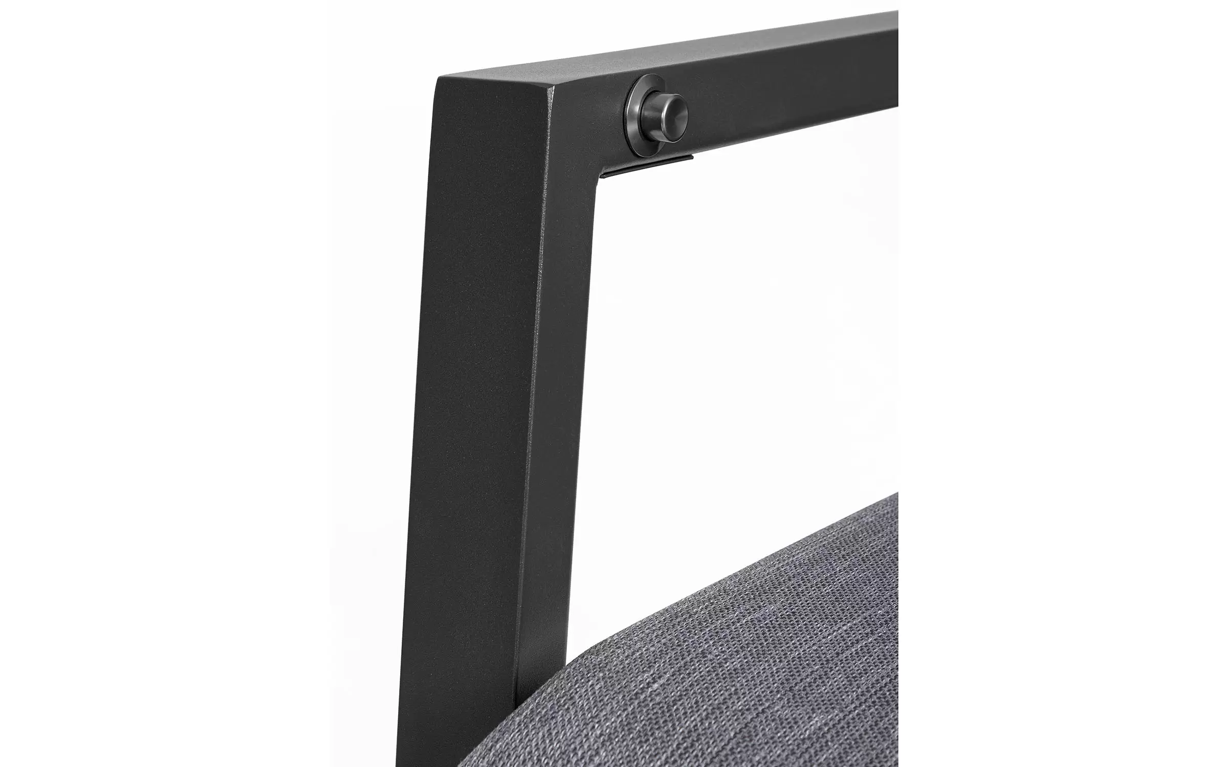Nowoczesne wysokie krzesło stołowe ogrodowe o aluminiowej konstrukcji z siedziskiem tapicerowanym z szybkoschnącą gąbką i obiciem z materiału tekstylinowego z włóknami Olefin nadającymi przyjemne wrażenie w dotyku.