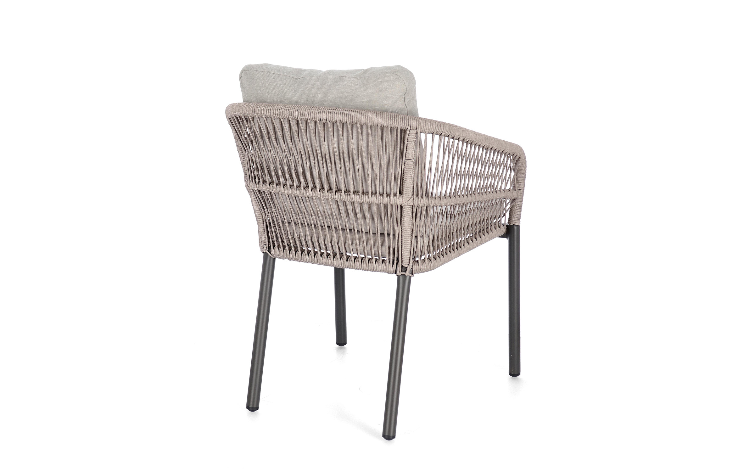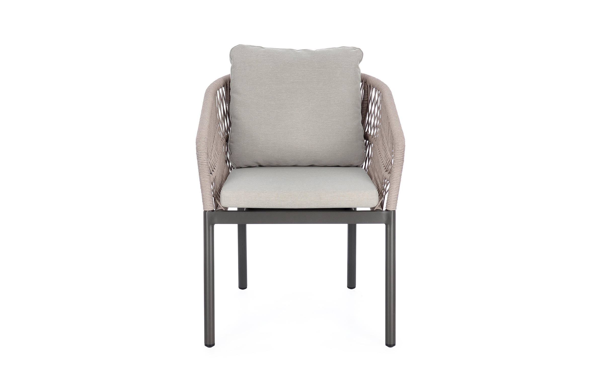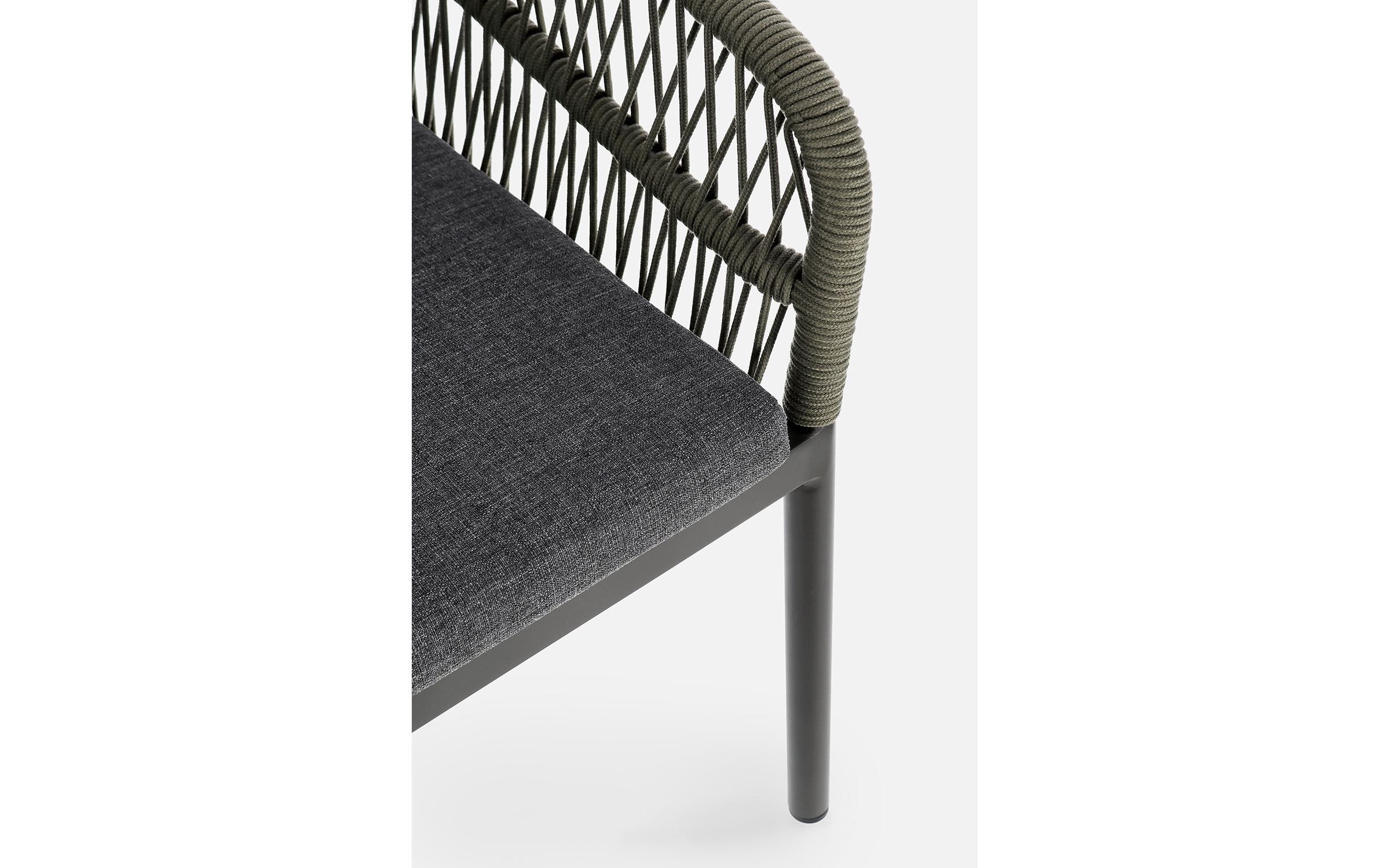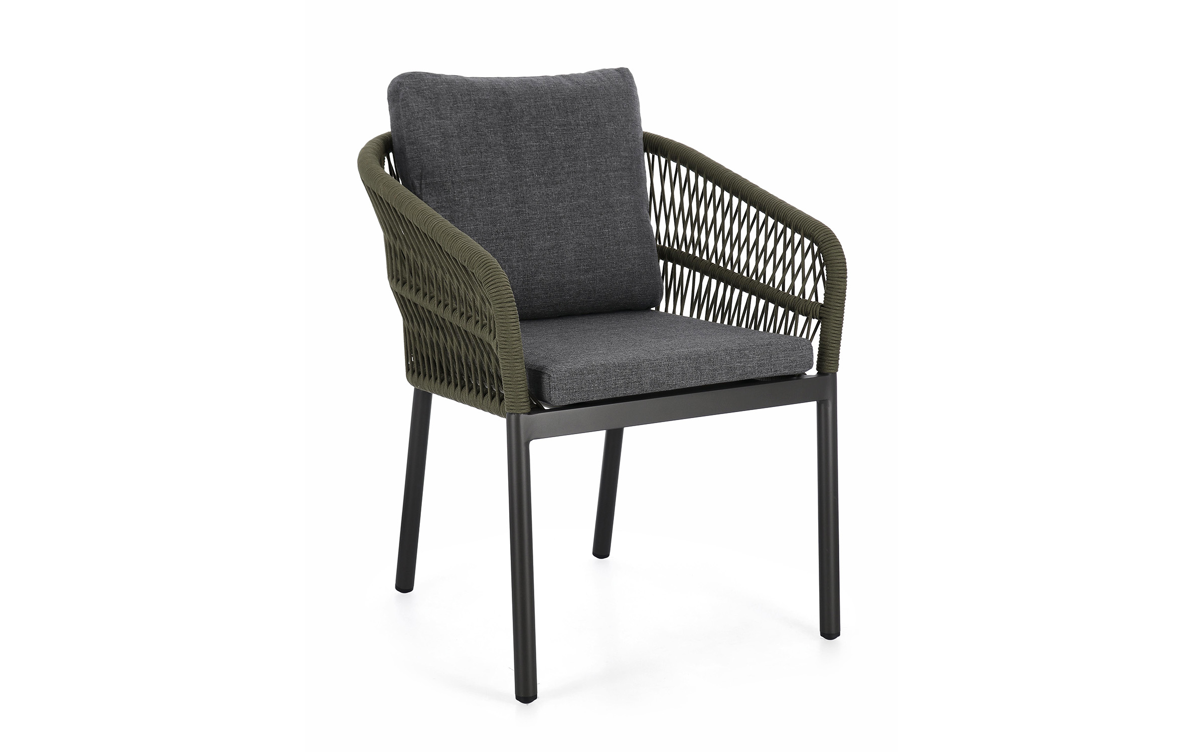 Aluminiowe krzesło ogrodowe o stabilnej konstrukcji z aluminium. Opływowe oparcie siedziska z wodoodpornej i odpornej na uv liny poliestrowej.
