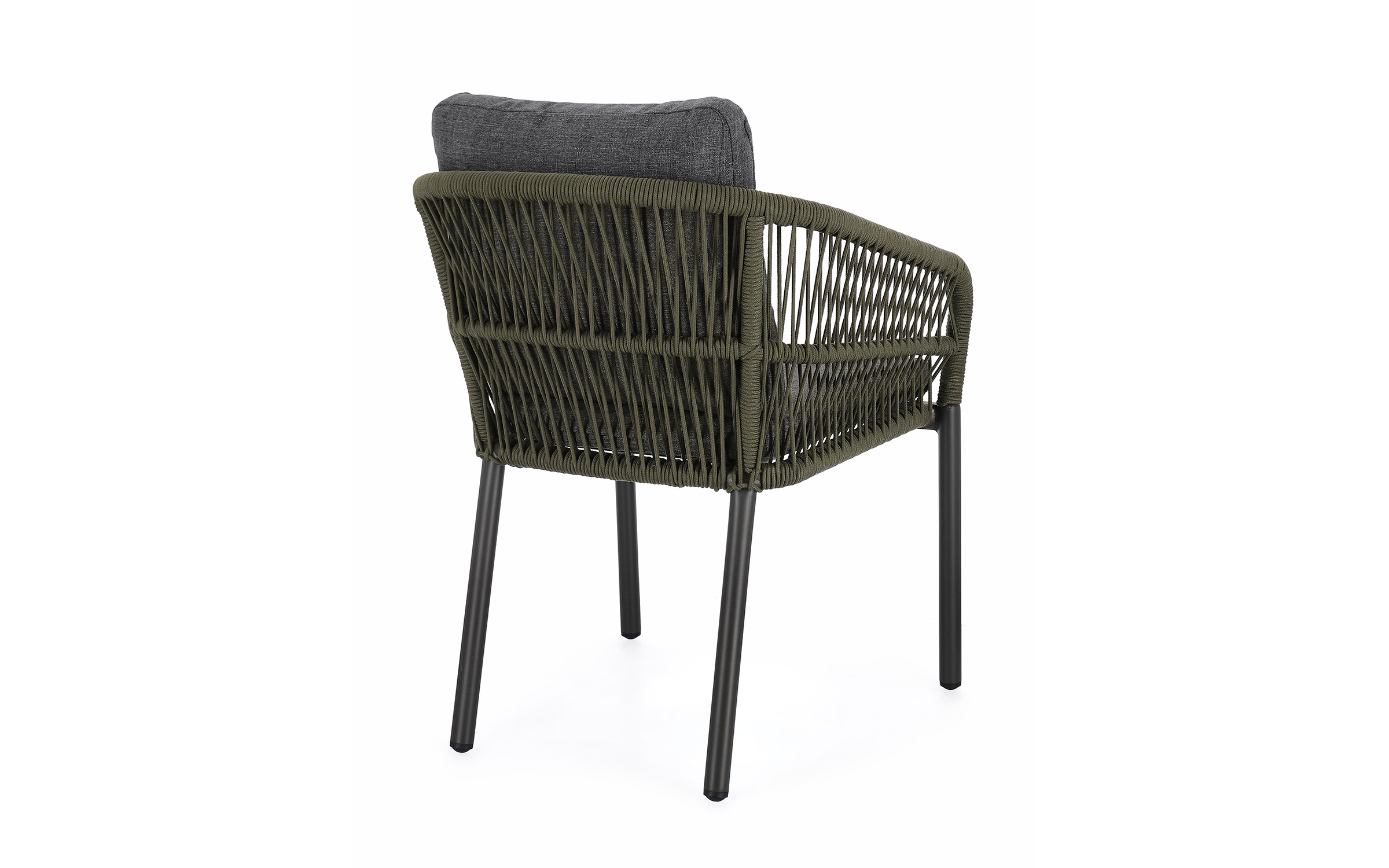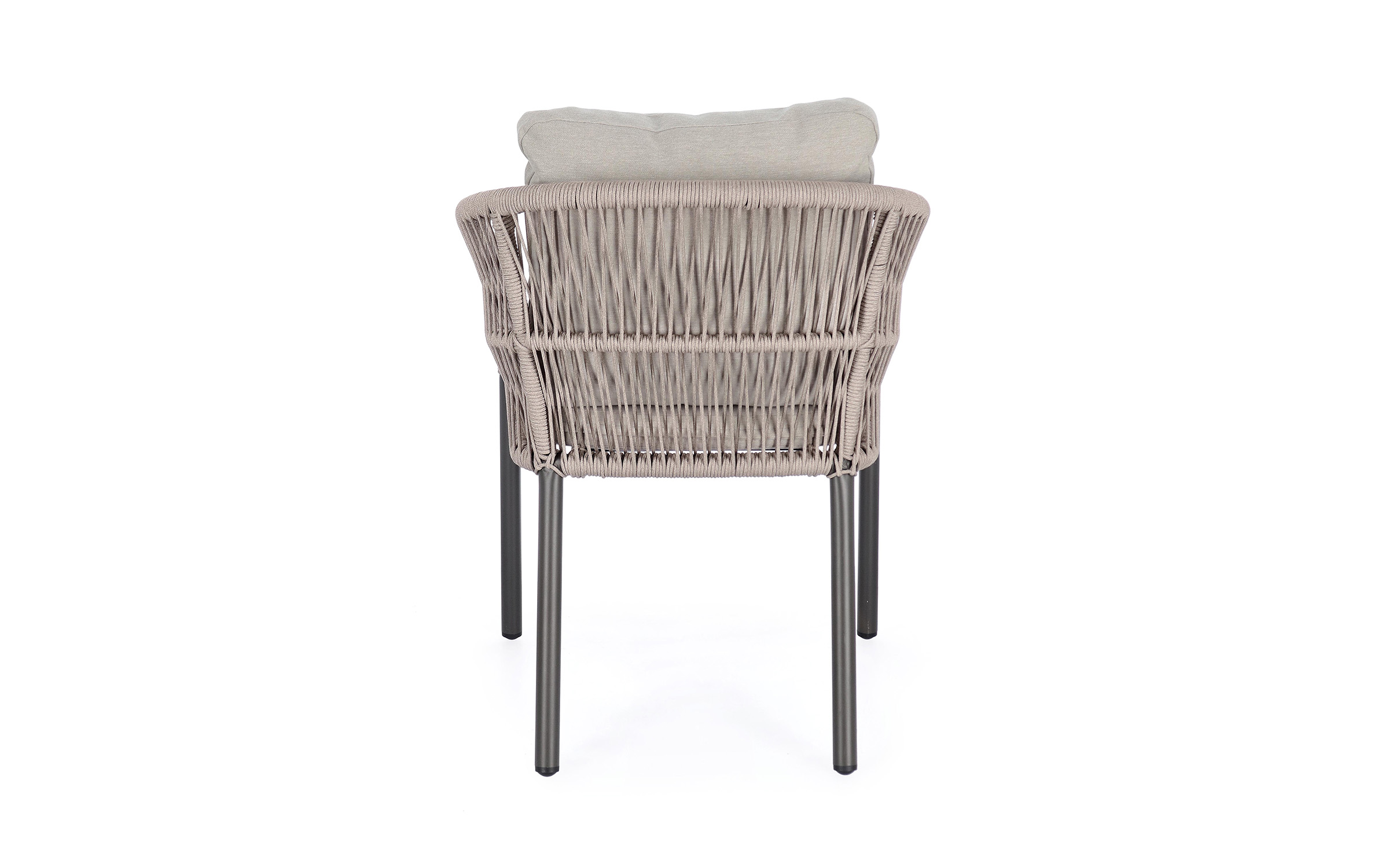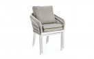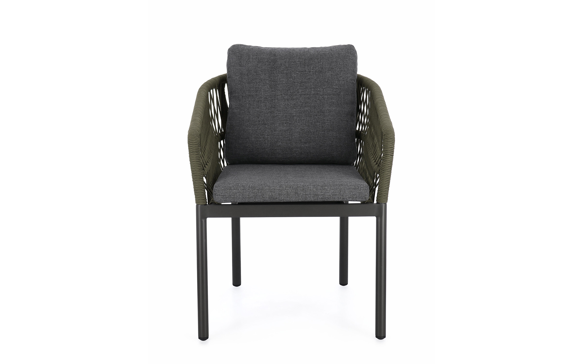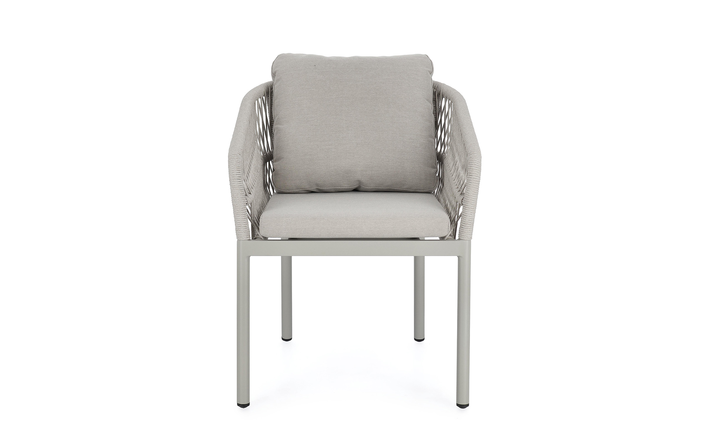 Aluminiowe krzesło ogrodowe o stabilnej konstrukcji z aluminium. Opływowe oparcie siedziska z wodoodpornej i odpornej na uv liny poliestrowej.