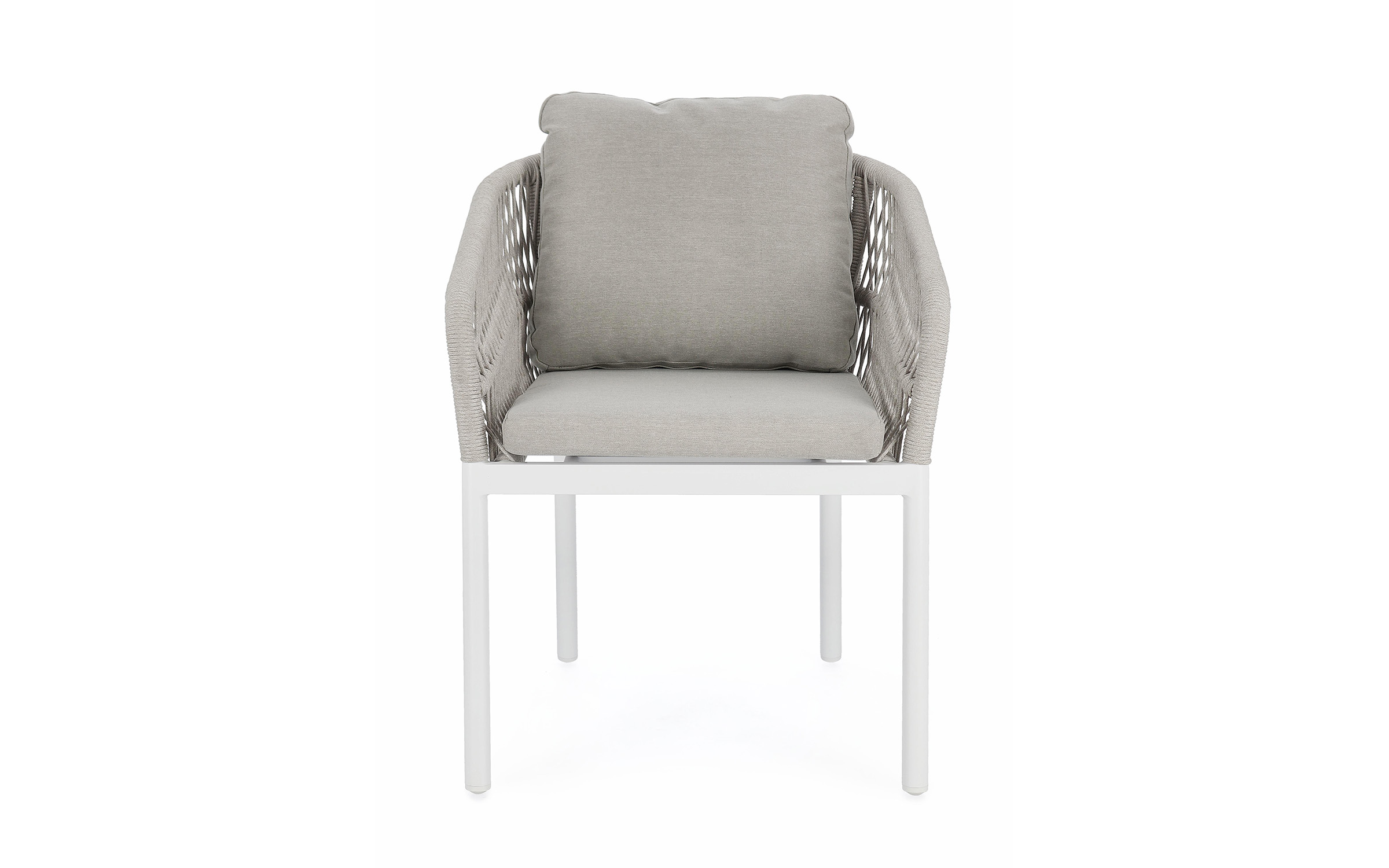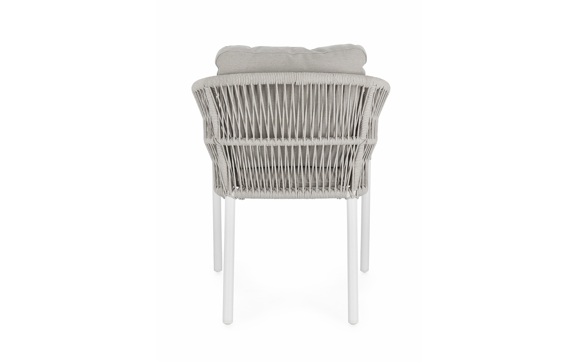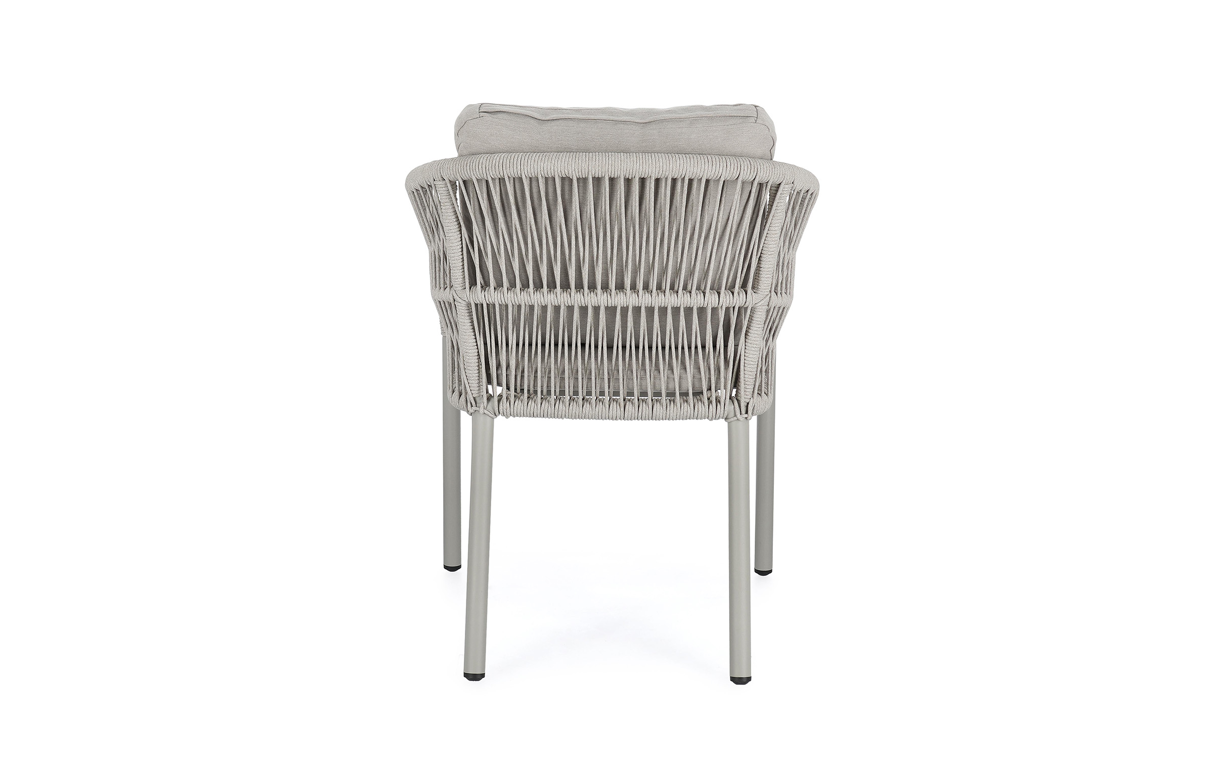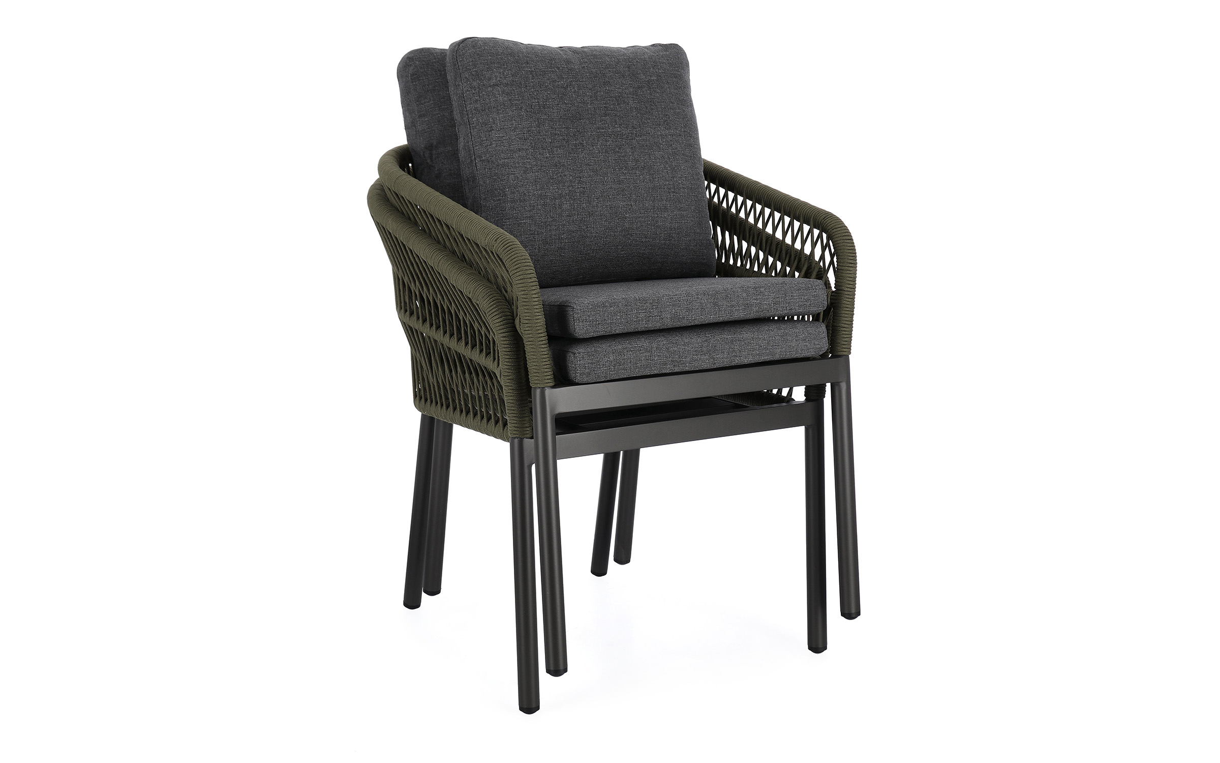Aluminiowe krzesło ogrodowe o stabilnej konstrukcji z aluminium. Opływowe oparcie siedziska z wodoodpornej i odpornej na uv liny poliestrowej.
