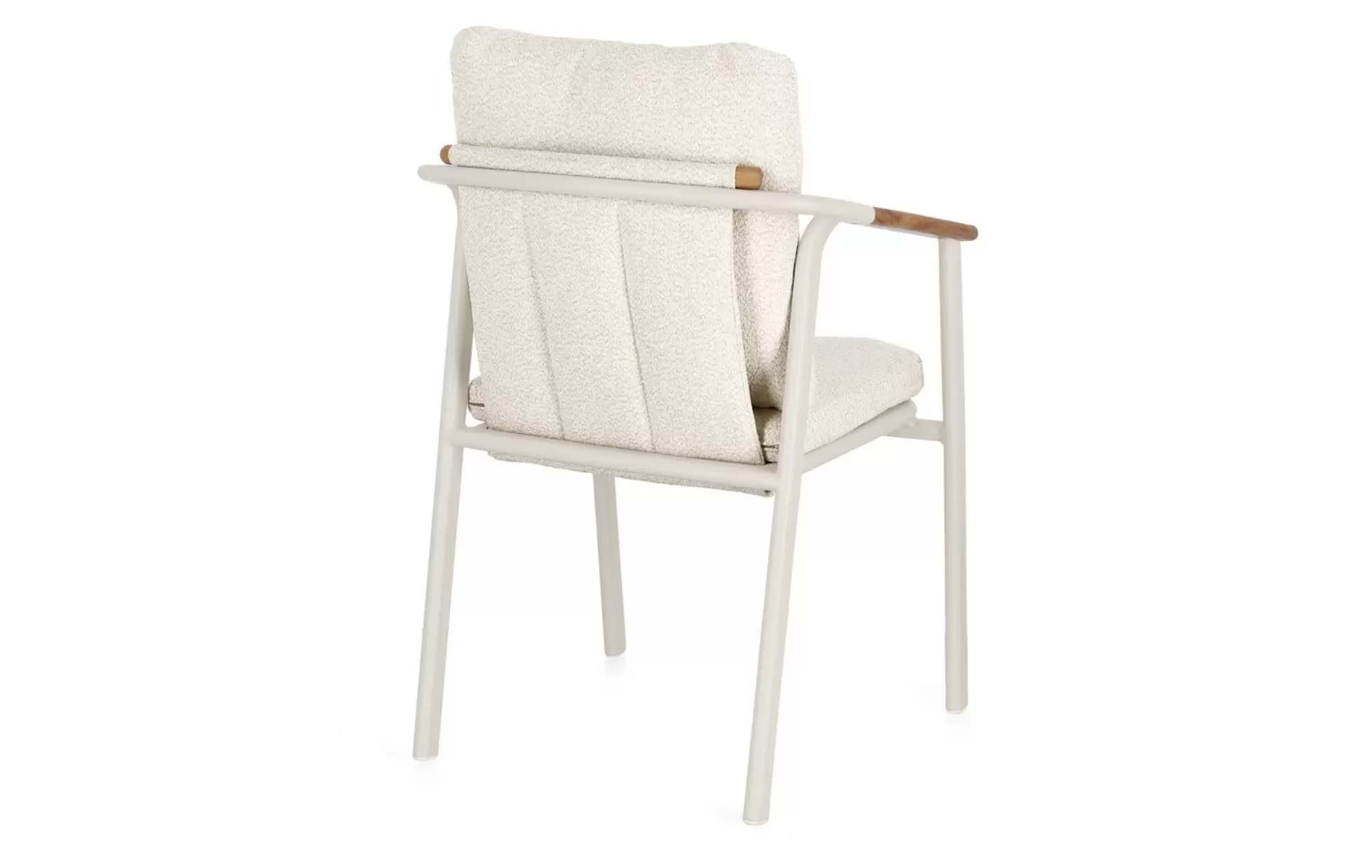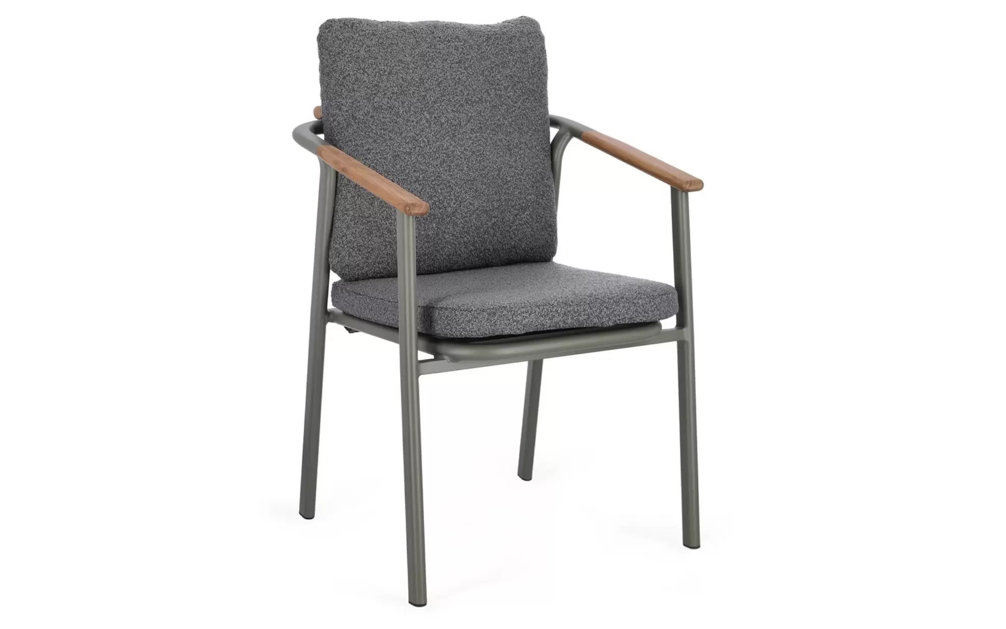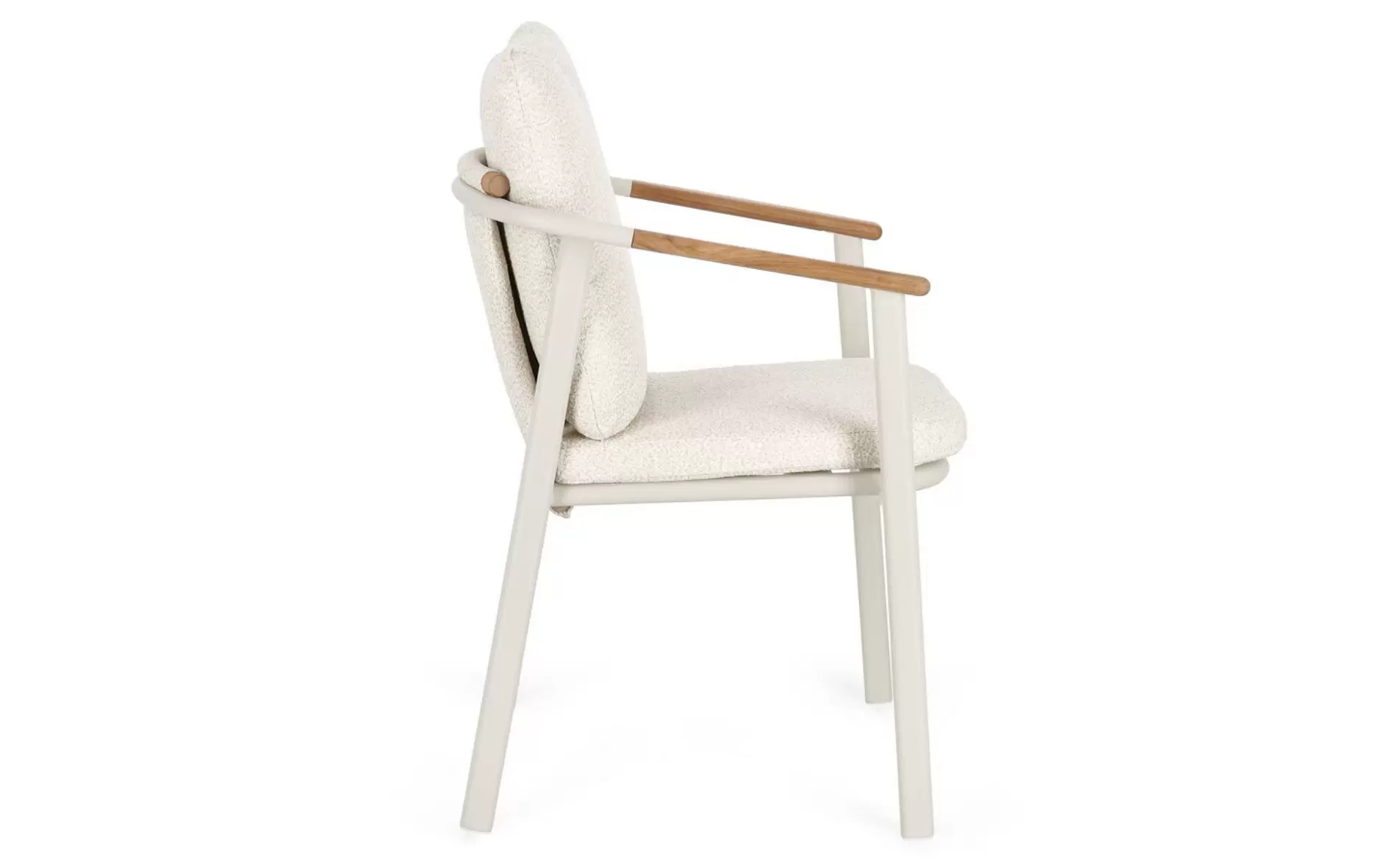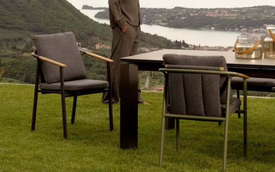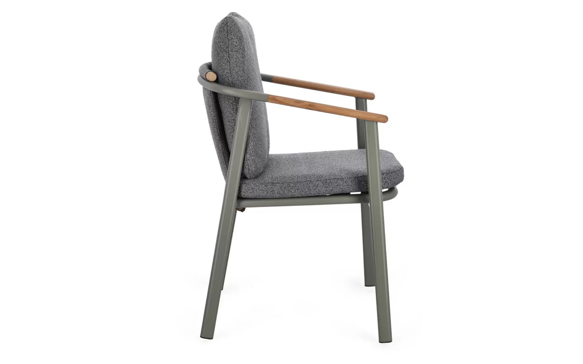 Drewno teakowe (wstawki) ???? – starannie wyprofilowane elementy z teaku na podłokietnikach i oparciu nie tylko cieszą oko, ale mają też wymiar praktyczny: drewno nie nagrzewa się na słońcu tak jak metal, zapewniając komfortowe podparcie dla rąk. Teak jest naturalnie nasycony olejami, co chroni go przed gniciem i wilgocią.