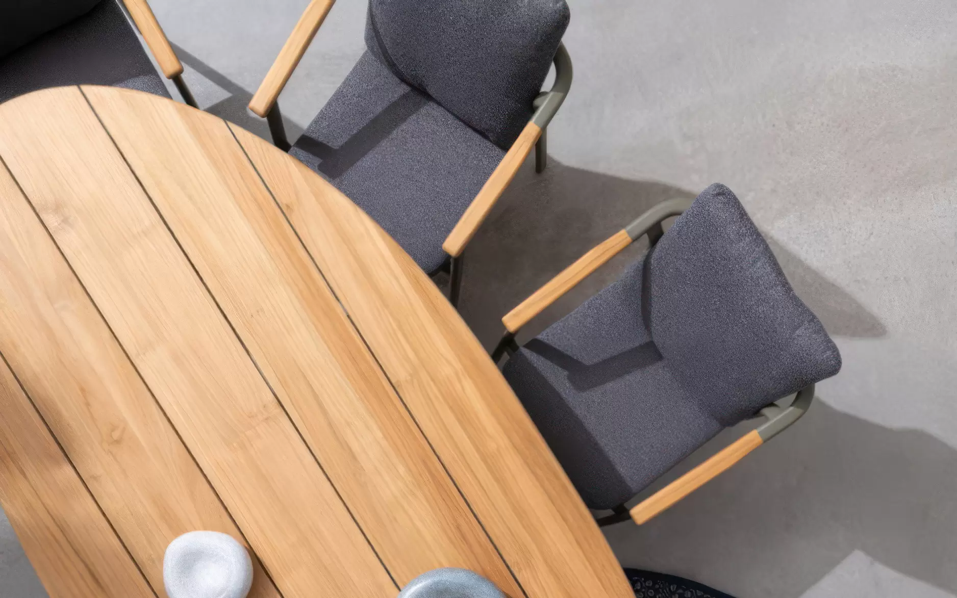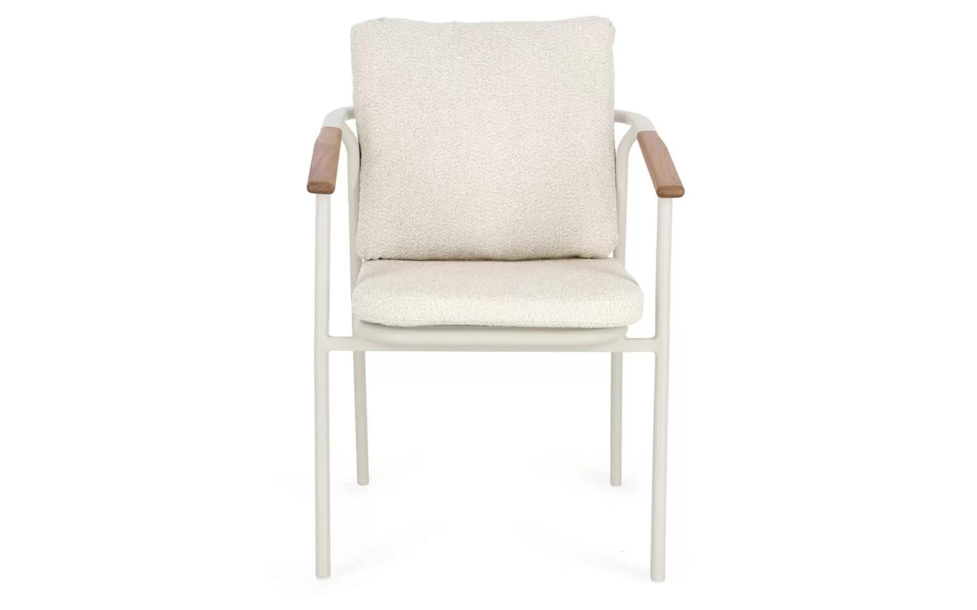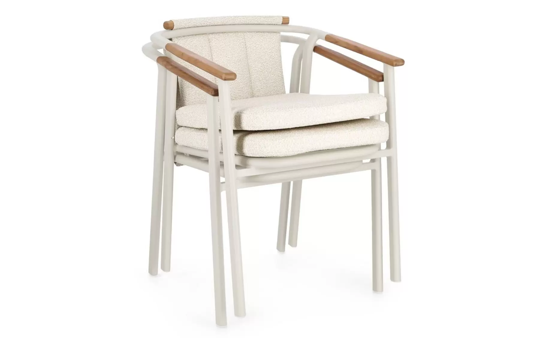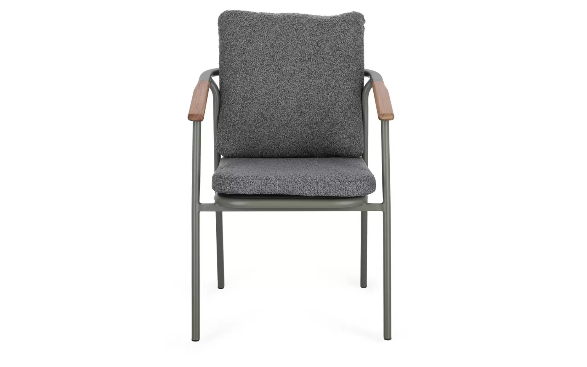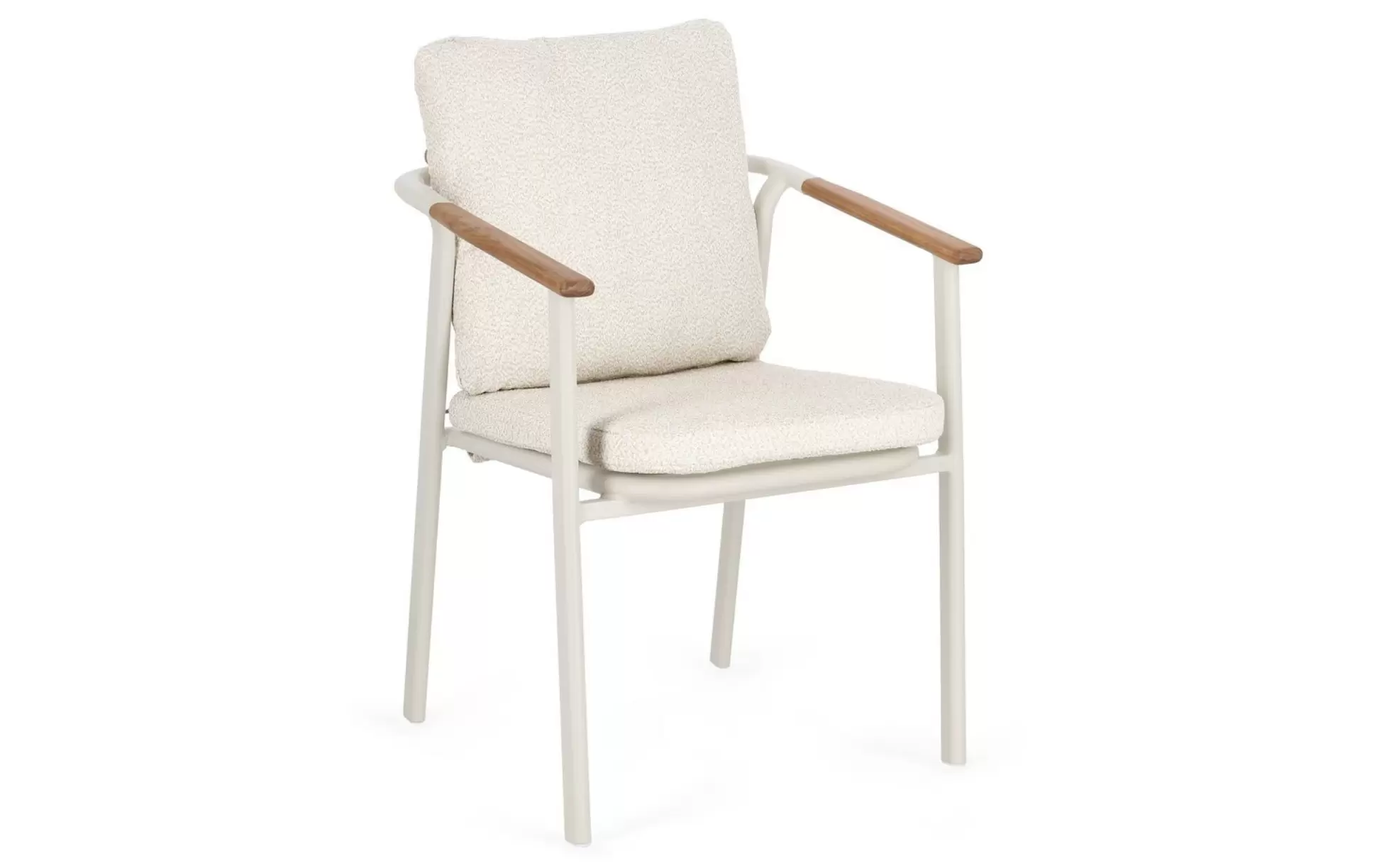 Drewno teakowe (wstawki) ???? – starannie wyprofilowane elementy z teaku na podłokietnikach i oparciu nie tylko cieszą oko, ale mają też wymiar praktyczny: drewno nie nagrzewa się na słońcu tak jak metal, zapewniając komfortowe podparcie dla rąk. Teak jest naturalnie nasycony olejami, co chroni go przed gniciem i wilgocią.