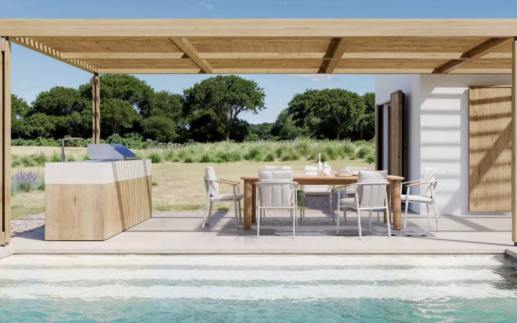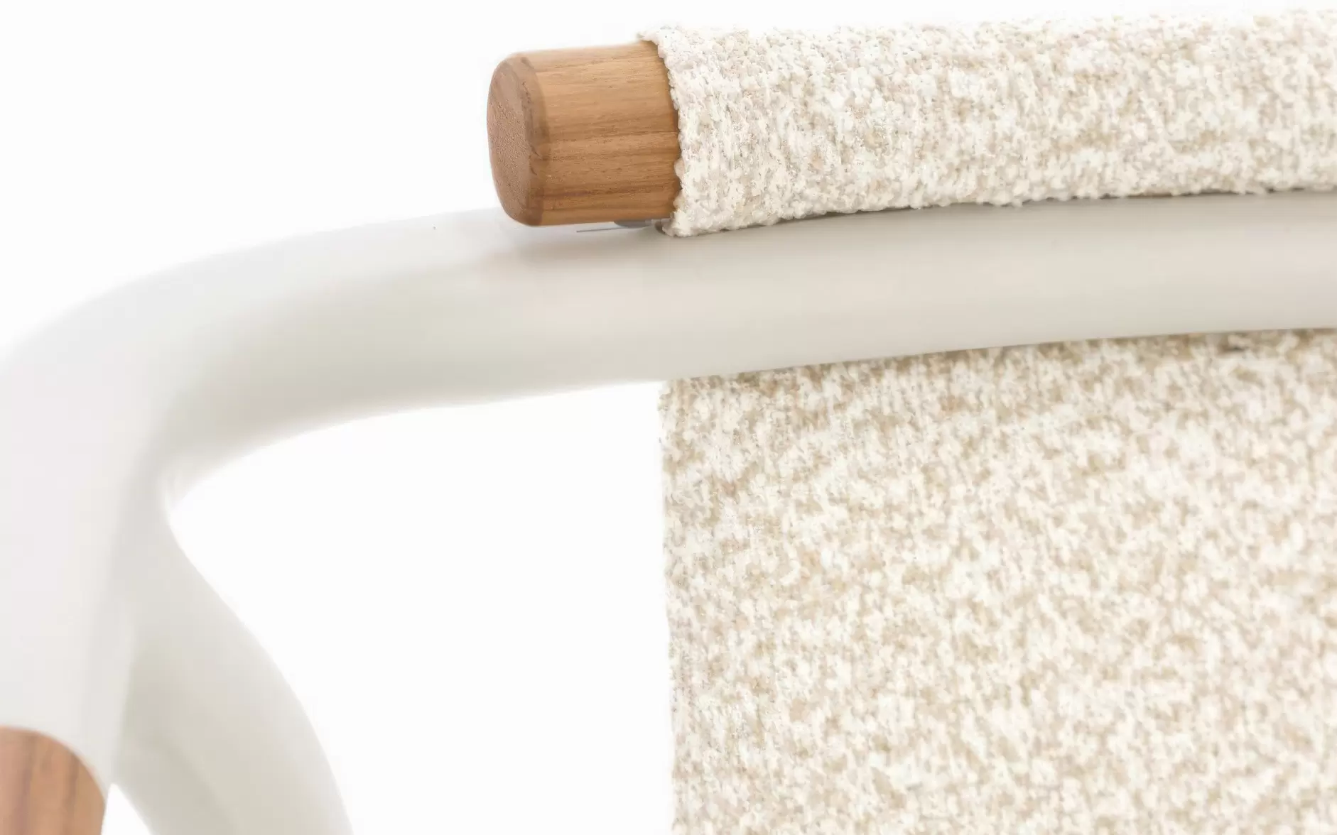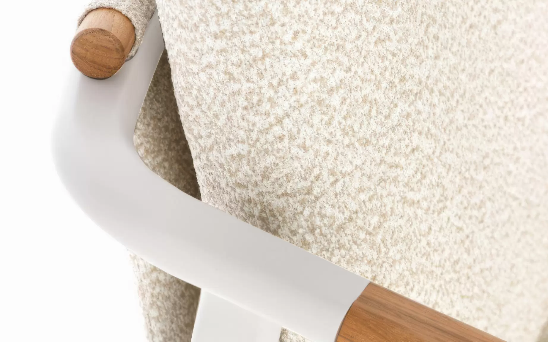 Tkanina Olefin Bouclé (100% PP) ☁️ – inżynieryjny majstersztyk w dziedzinie materiałów zewnętrznych. Polipropylenowa przędza o pętelkowej strukturze jest całkowicie hydrofobowa i odporna na niszczące działanie promieni UV. Pokrowiec poduszki posiada dyskretny zamek, co pozwala na jego bezproblemowe zdjęcie i wypranie, gwarantując sterylną czystość.