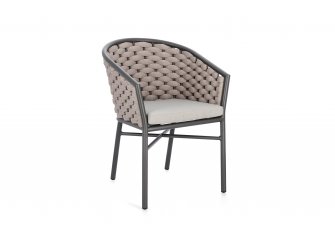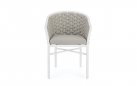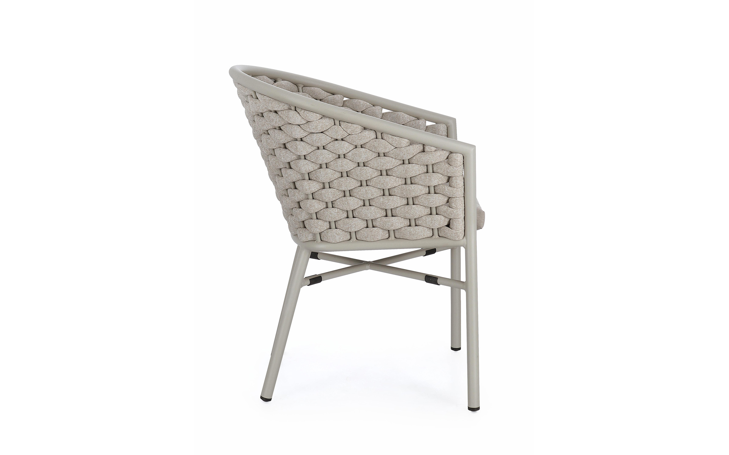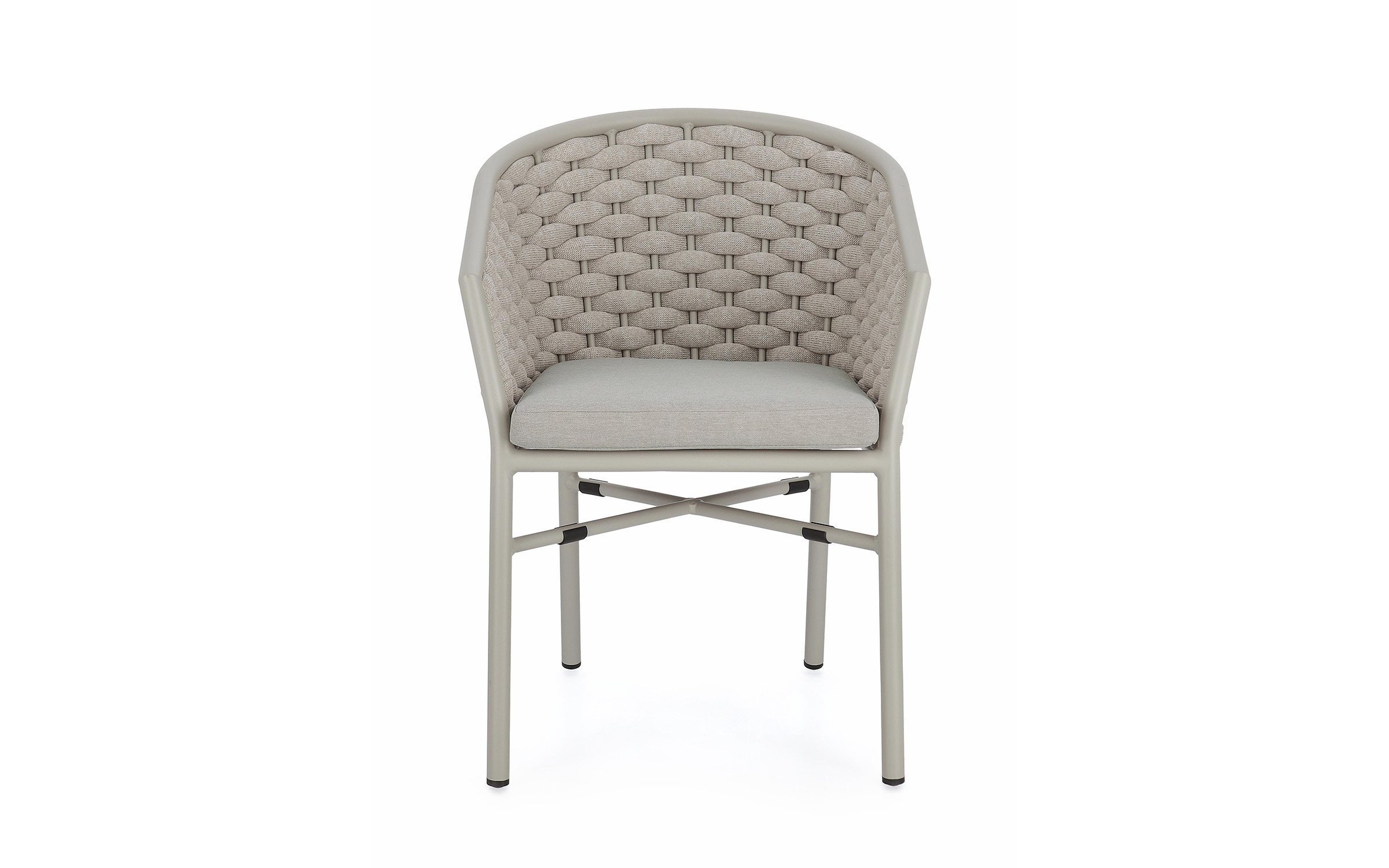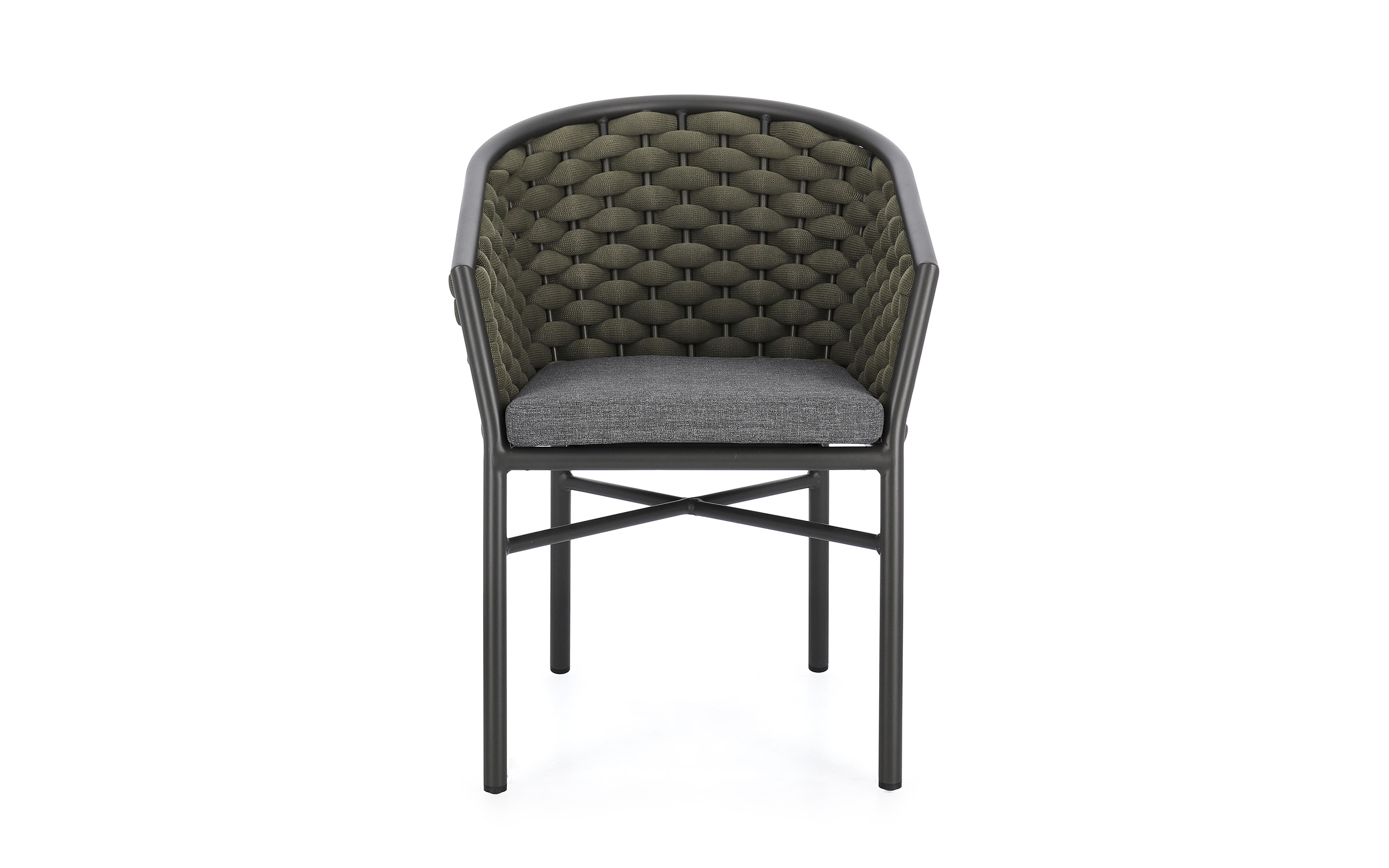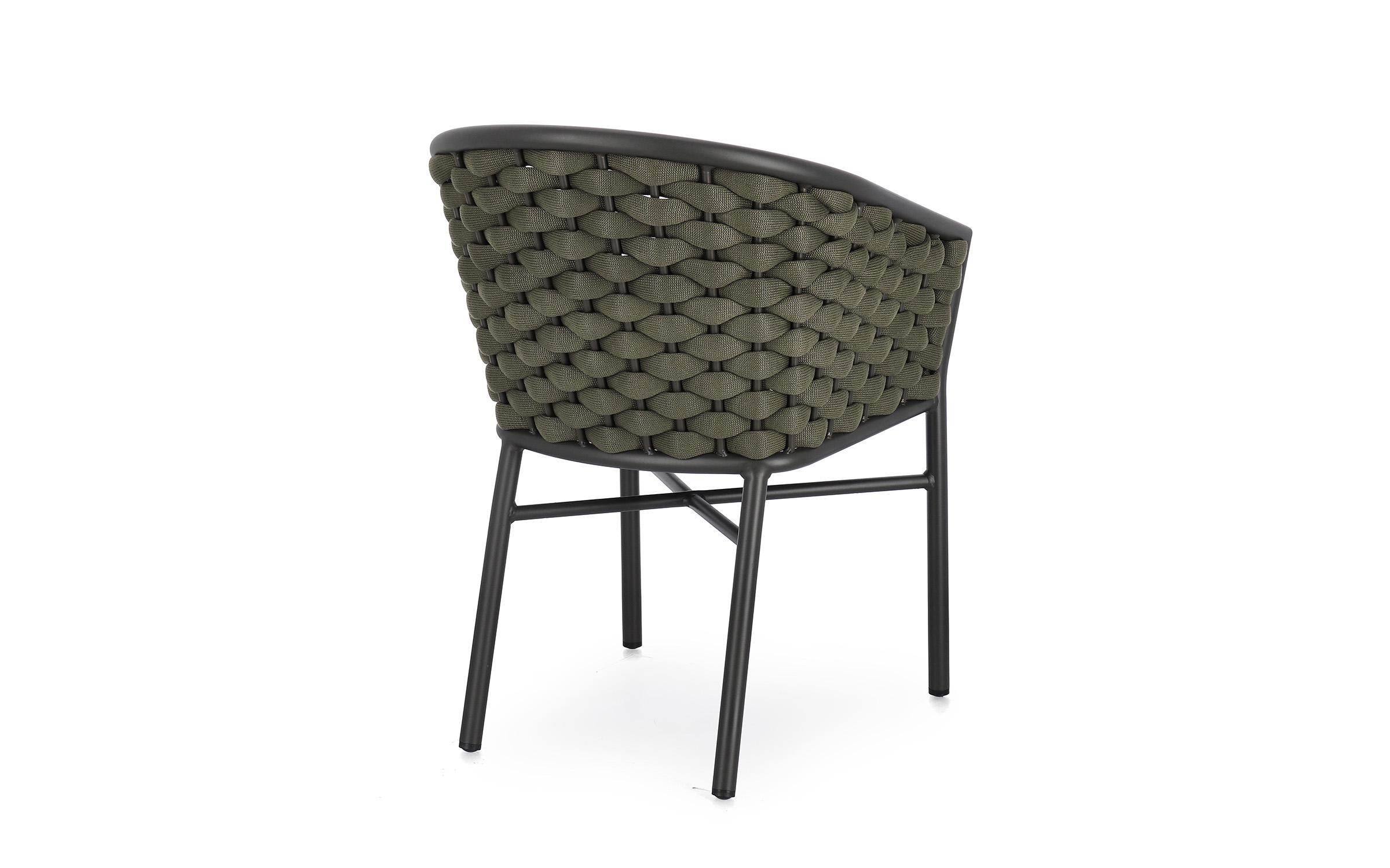 Aluminiowe krzesło ogrodowe o stabilnej konstrukcji z aluminium. Pełne opływowe oparcie z wplecionymi wypukłymi splotami materiału (rękaw z materiału Olefin z wkładem polietylenowym), które dodają mu nowoczesności.