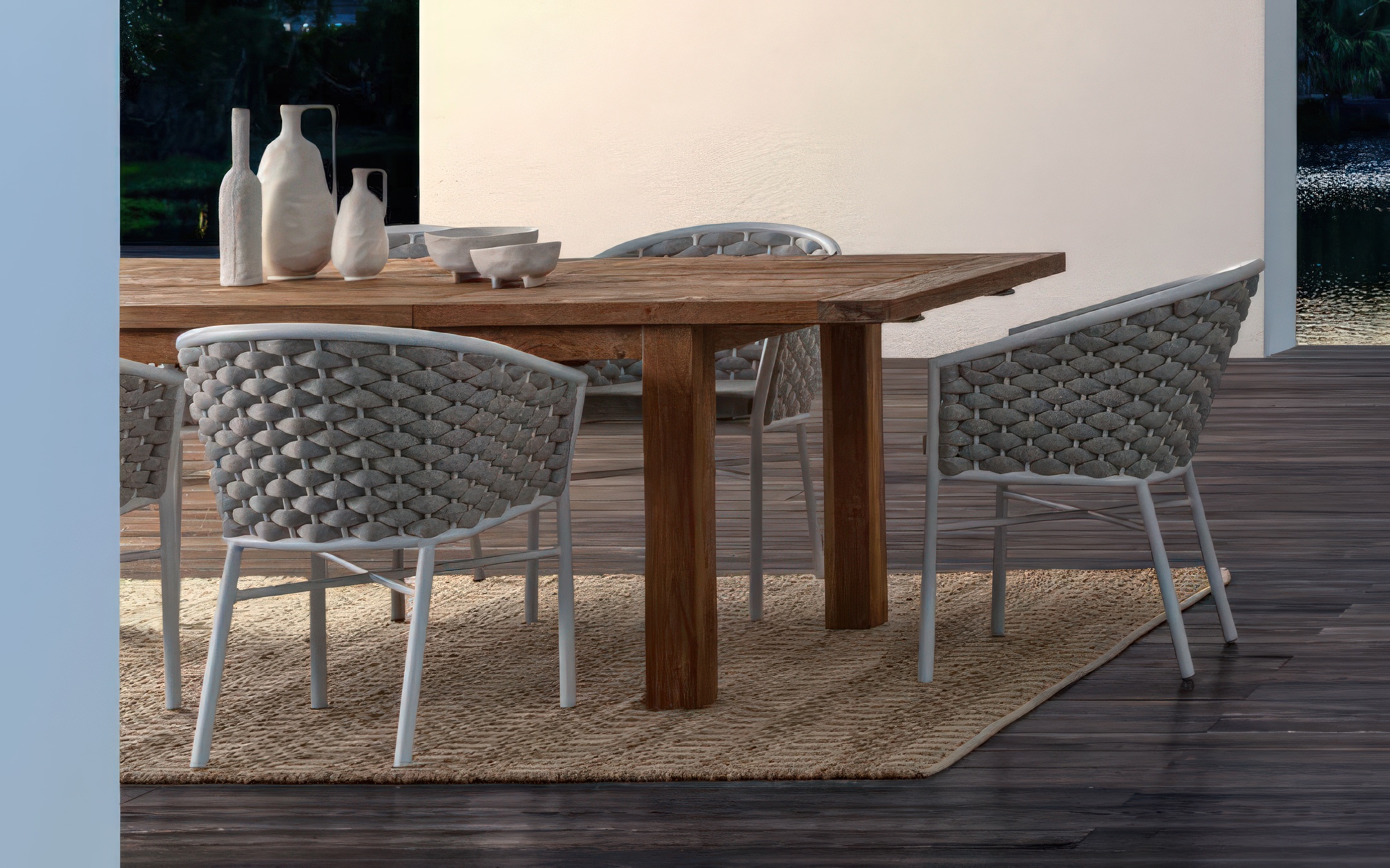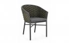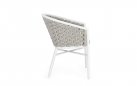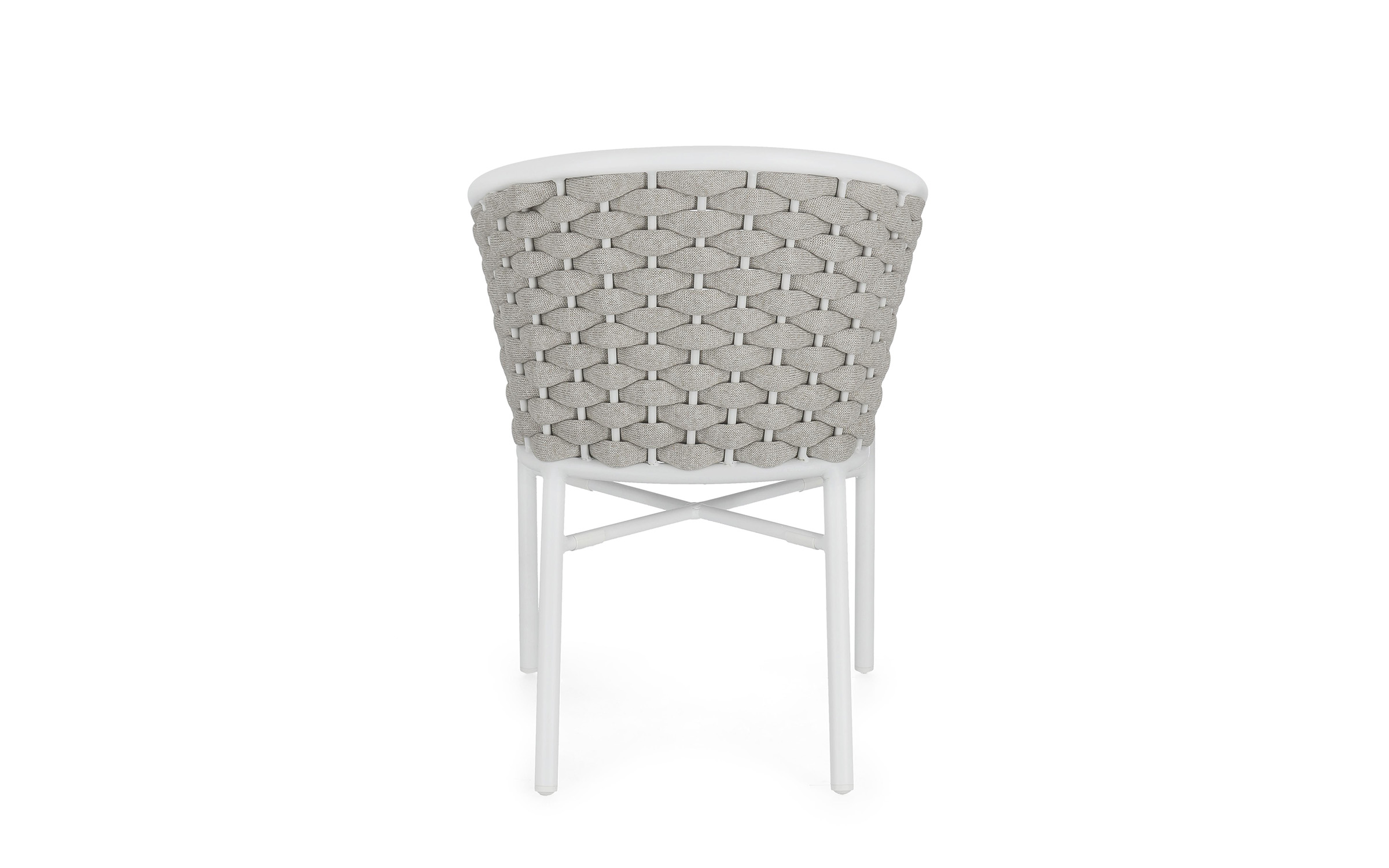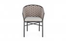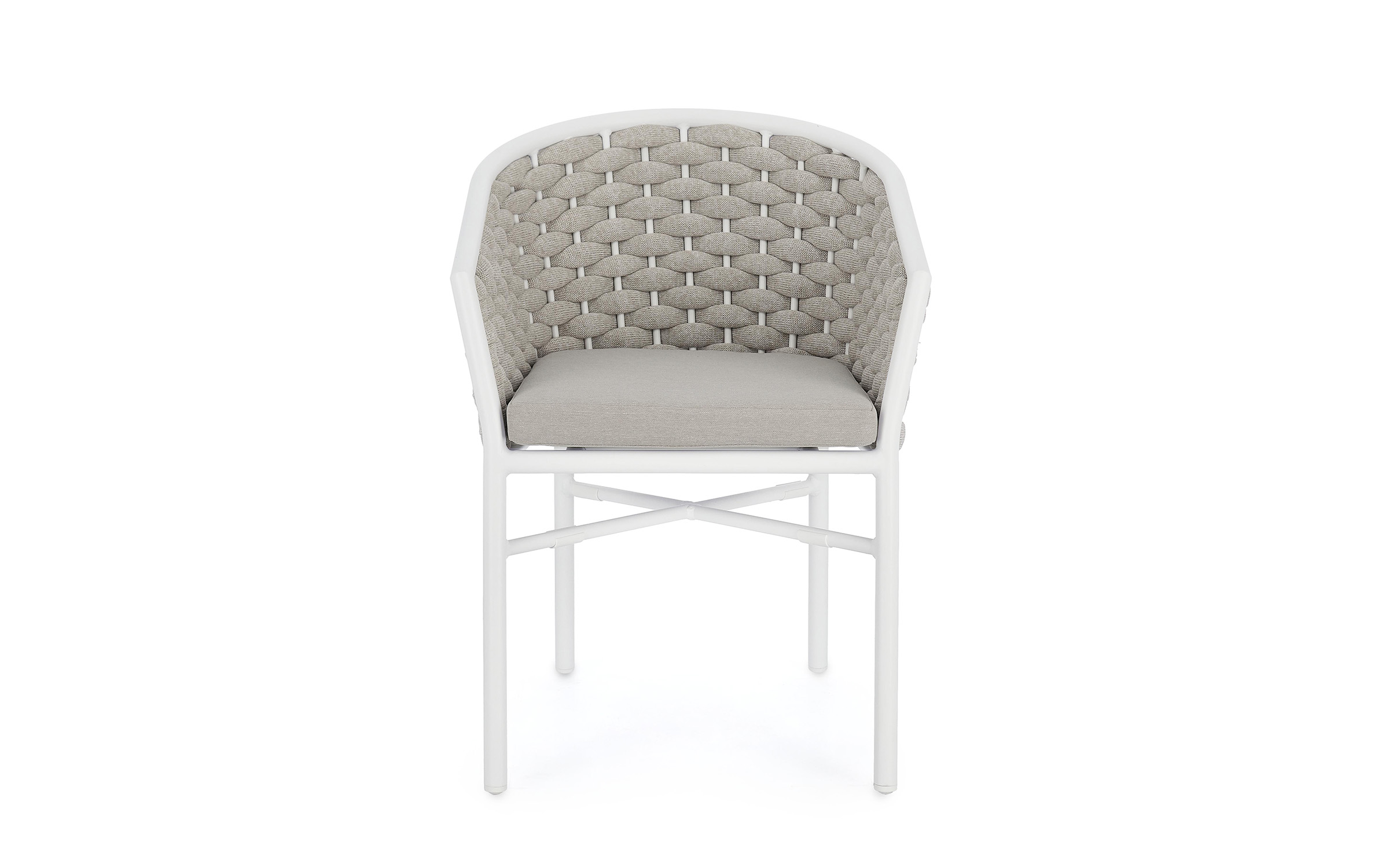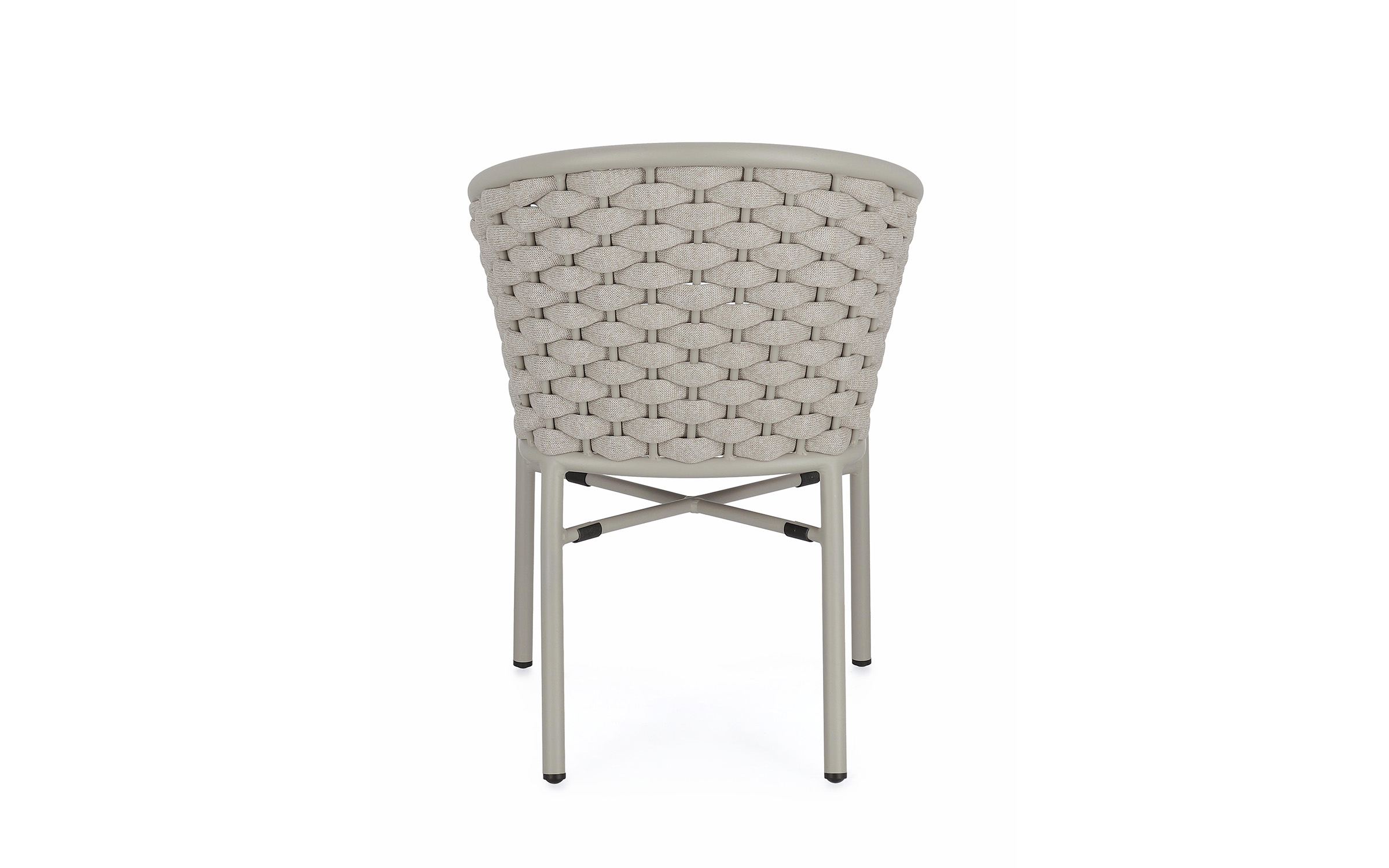 Aluminiowe krzesło ogrodowe o stabilnej konstrukcji z aluminium. Pełne opływowe oparcie z wplecionymi wypukłymi splotami materiału (rękaw z materiału Olefin z wkładem polietylenowym), które dodają mu nowoczesności.