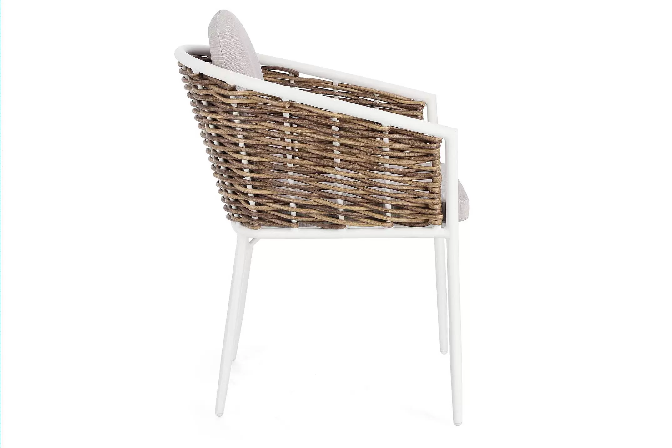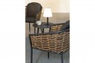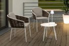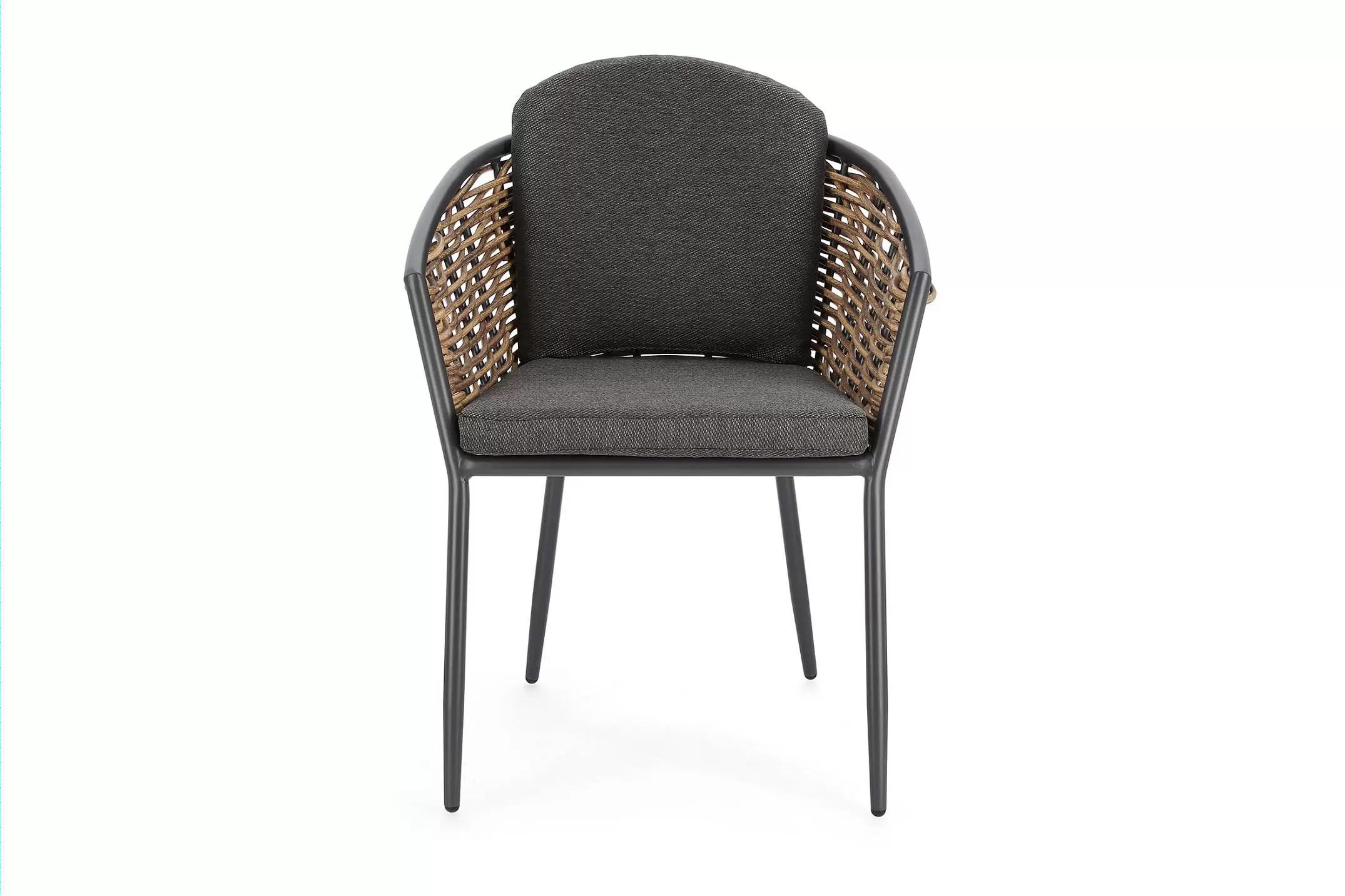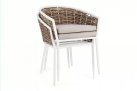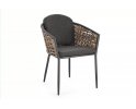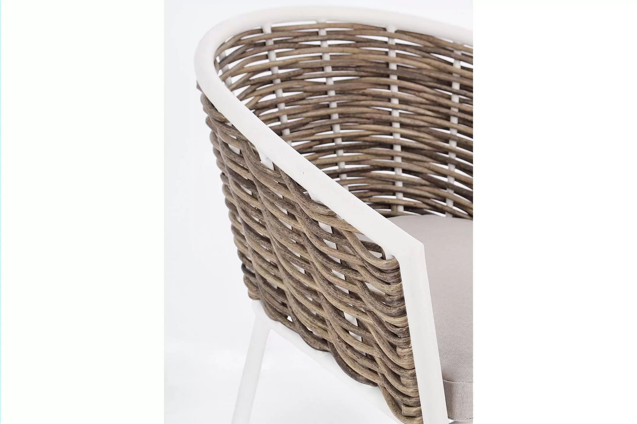 Aluminiowe krzesło pasujące do kolekcji mebli ogrodowych MARIBELA z wyplatanymi bokami technorattanem imitującym naturalne włókno.