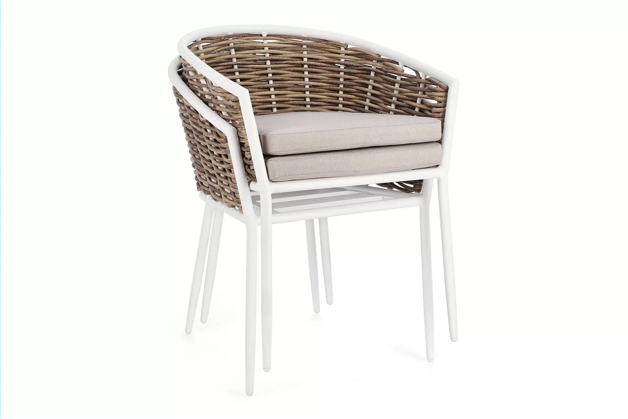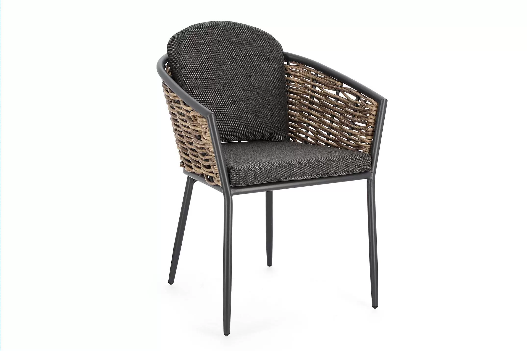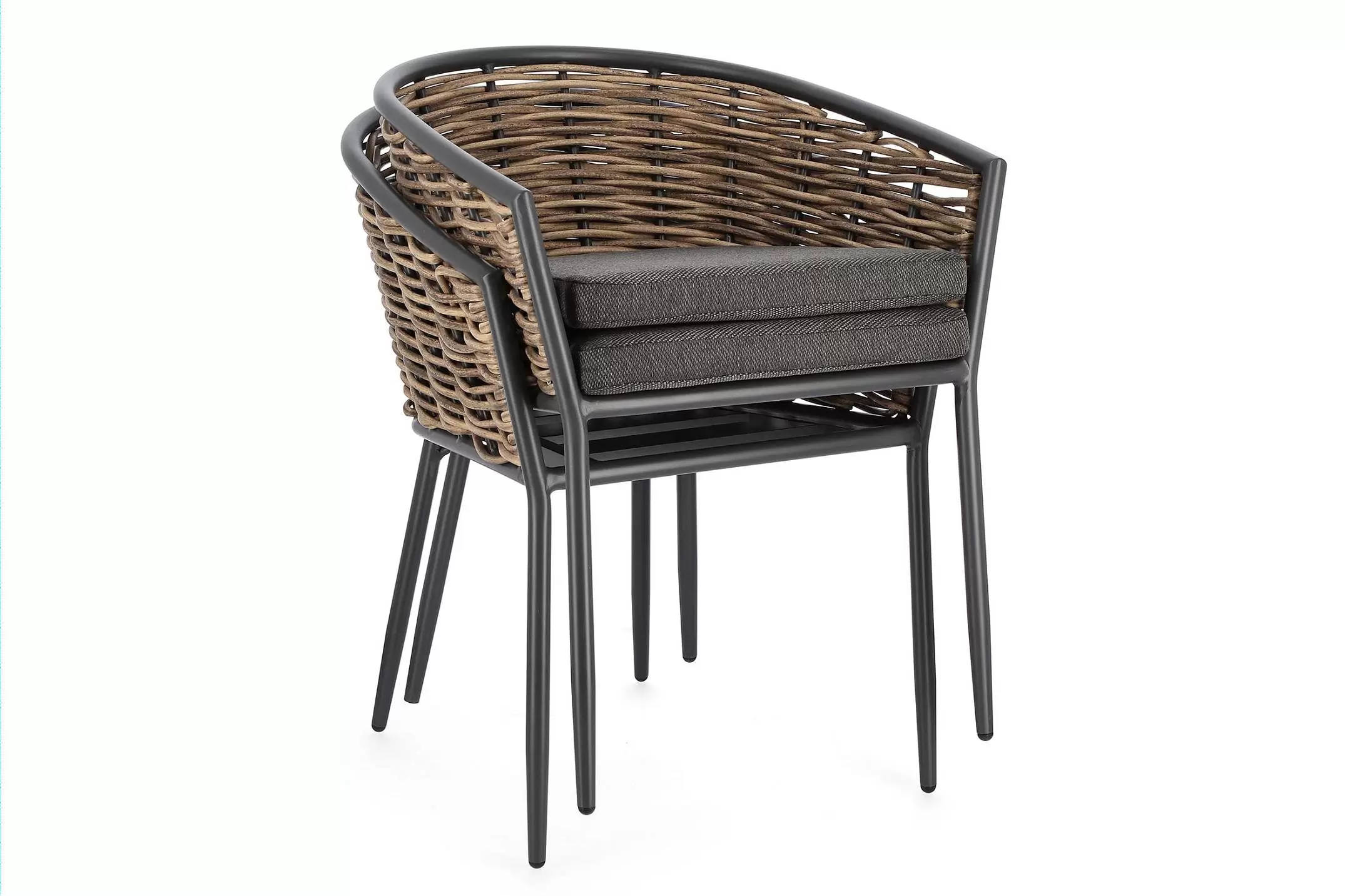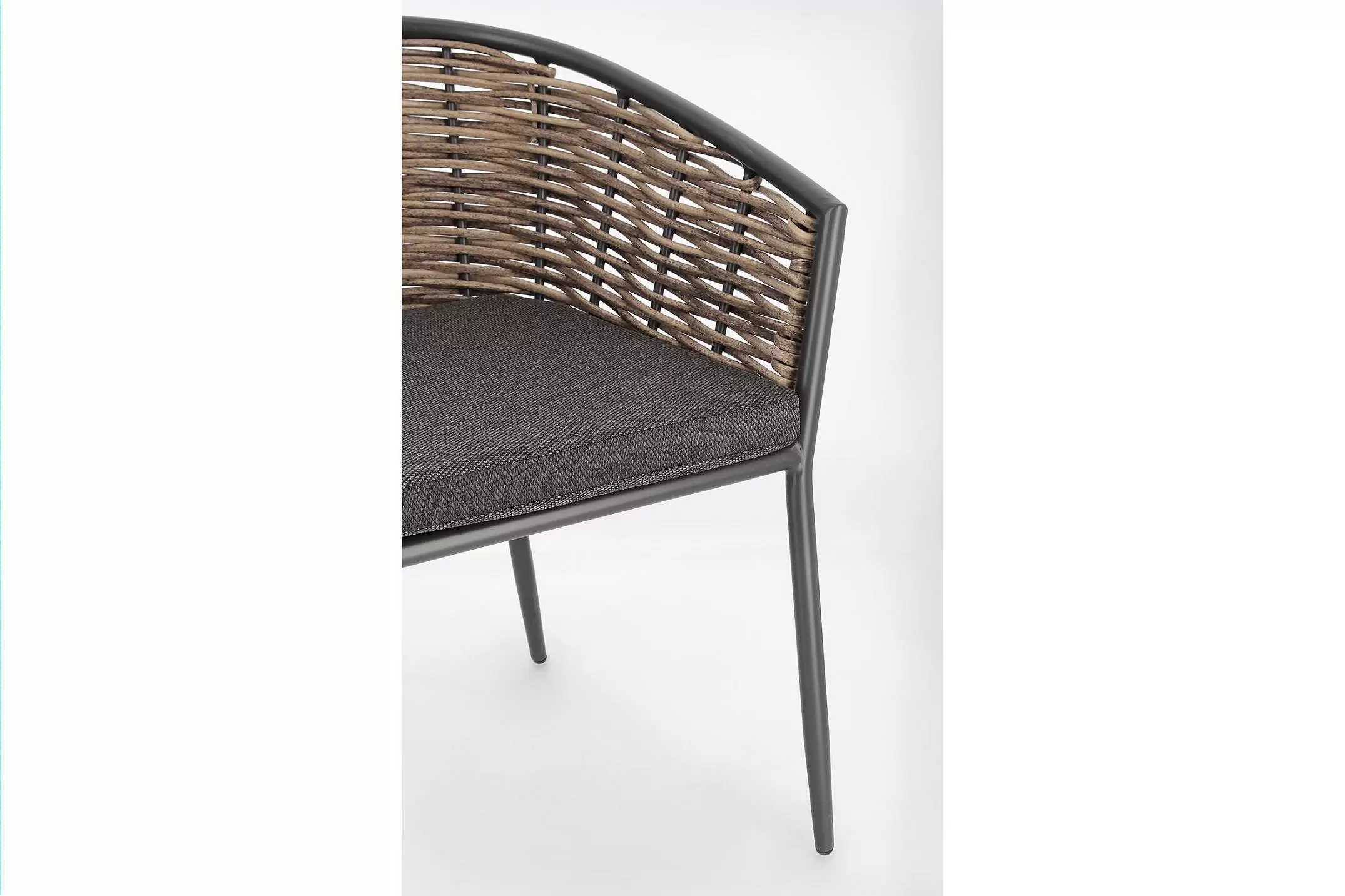 Meble wyposażone w poduszki wodoodporne ze zdejmowanymi poszewkami z materiału Olefin. Krzesło można sztaplować.
